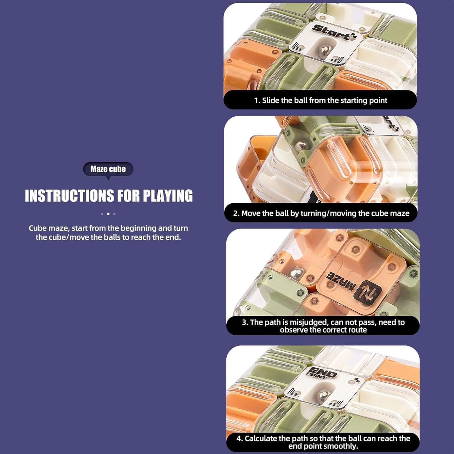 Dual-Puzzle Challenge: This innovative cube merges a twistable maze mechanism with a ball-guiding adventure, offering two exciting gameplay styles in one portable toy. Its ergonomic design ensures comfortable handling during extended play sessions. Cognitive Skill Development: Enhance logical reasoning, spatial awareness, and concentration by navigating beads through six complex sides. Perfect for stimulating quick problem-solving abilities and providing stress-relieving mental exercise. 360° Dynamic Play: Smooth rotation allows endless route possibilities with every twist. Ideal for competitive family races or collaborative challenges, turning gameplay into engaging social bonding experiences. Secure Ball System: Features a transparent locking lid that keeps the ball safely contained during intense manipulations. Never worry about lost pieces—focus purely on conquering the maze! Premium & Safe Construction: Made from high-strength ABS plastic with reinforced stress points. Withstands drops and impacts while ensuring safety for teens and adults during long-term use.