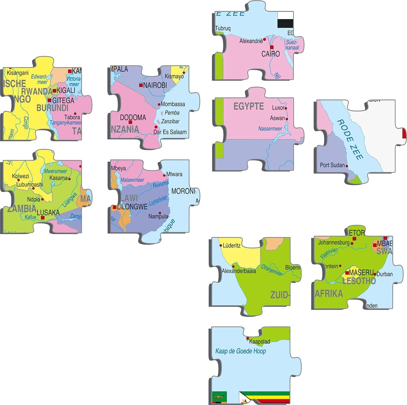 GEOGRAFIA - Impara la geografia con i nostri puzzle divertenti ed educativi PUNTI INTERBLOCCO - I tradizionali pezzi ad incastro aggiungono difficoltà a questo puzzle. SCATOLA NO - Il design del vassoio e del telaio, efficiente dal punto di vista dello spazio, non richiede una scatola per l'immagazzinamento, il che lo rende facile da riporre. IMPARA LA GEOGRAFIA - Studia la mappa e cerca di ricordarla come meglio puoi prima di rimuovere i pezzi dalla cornice VASSOIO E TELAIO - Tutti i nostri puzzle sono realizzati con vassoio e un bordo permanente che tiene i pezzi in posizione durante il puzzle.