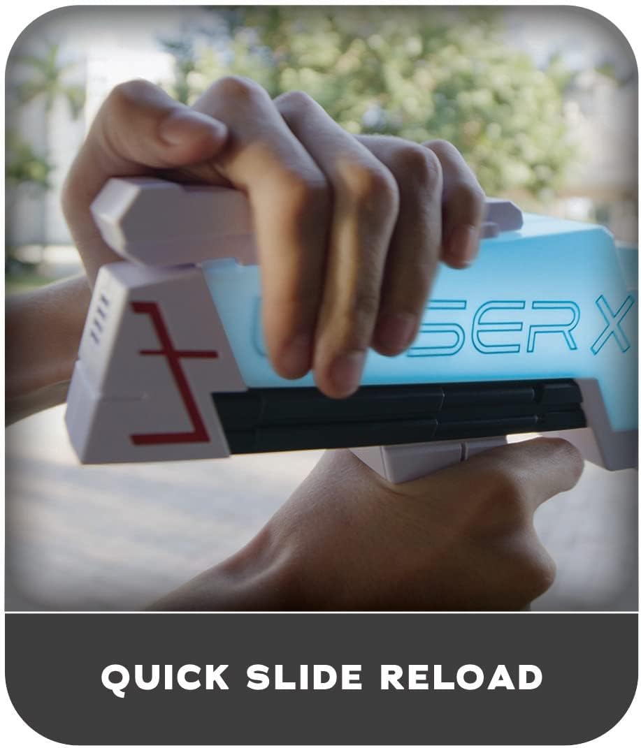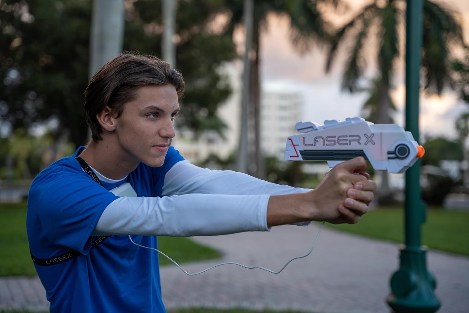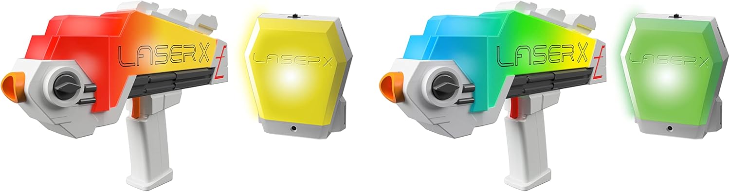 Laser X Ultra è l'ultima generazione di Laser X – il gioco di tag laser n. 1 per la casa sul pianeta! È come se avessi un'arena di tag laser nel tuo cortile! Con i blaster ultra doppi Laser X puoi far esplodere i nemici fino a 300 piedi di distanza, all'interno o all'aperto, al buio o alla luce del sole. Scegli tra più di 20 diverse combinazioni di colori del team o in modalità Ultra. I blaster Laser X Ultra dispongono di ricarica rapida e ricevitore toracico con indicatori che ti fanno sapere chi ti ha fatto saltare in aria I raggi blaster passano attraverso le finestre e possono essere rimbalzati su pareti e specchi per colpire gli avversari. Ogni serie di Laser X Gear lavora insieme. I giochi possono includere giocatori illimitati. Dai 6 anni in su Funziona con 6 batterie AAA (non incluse).