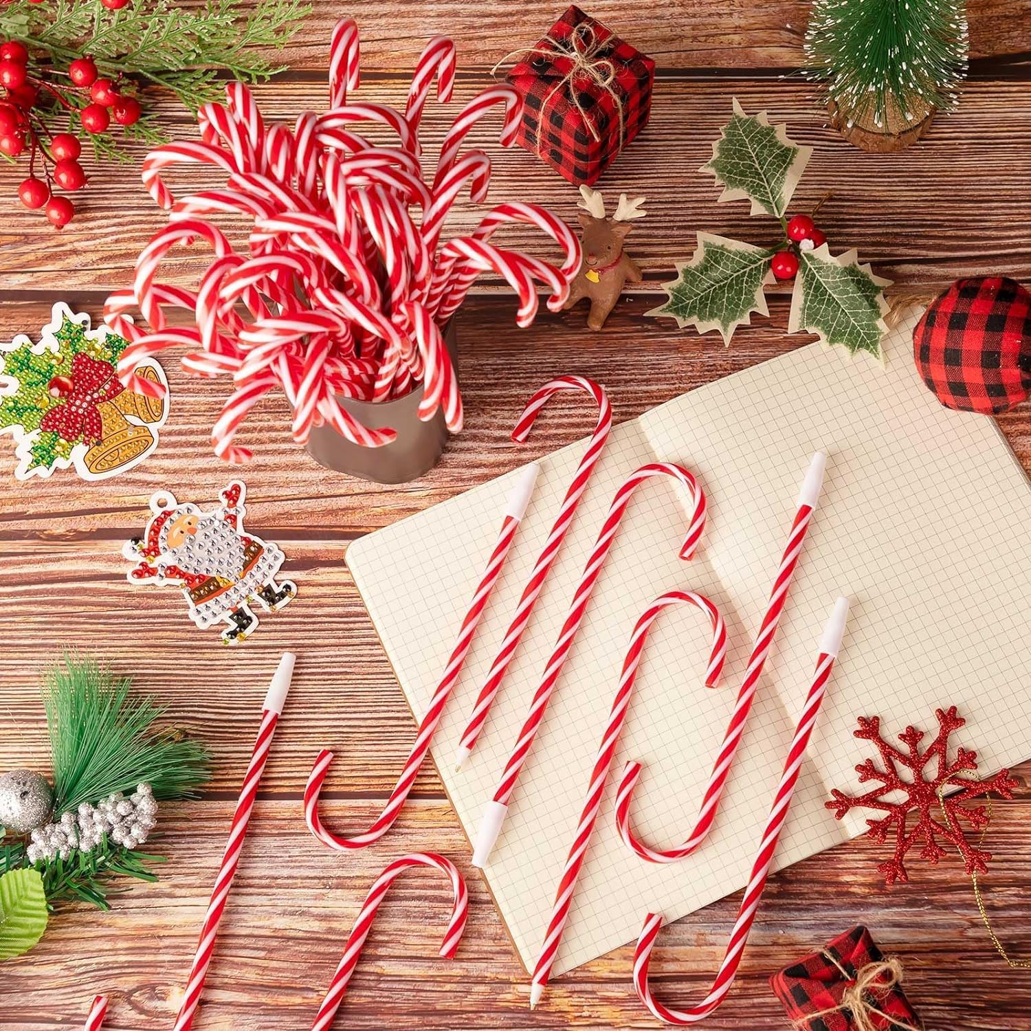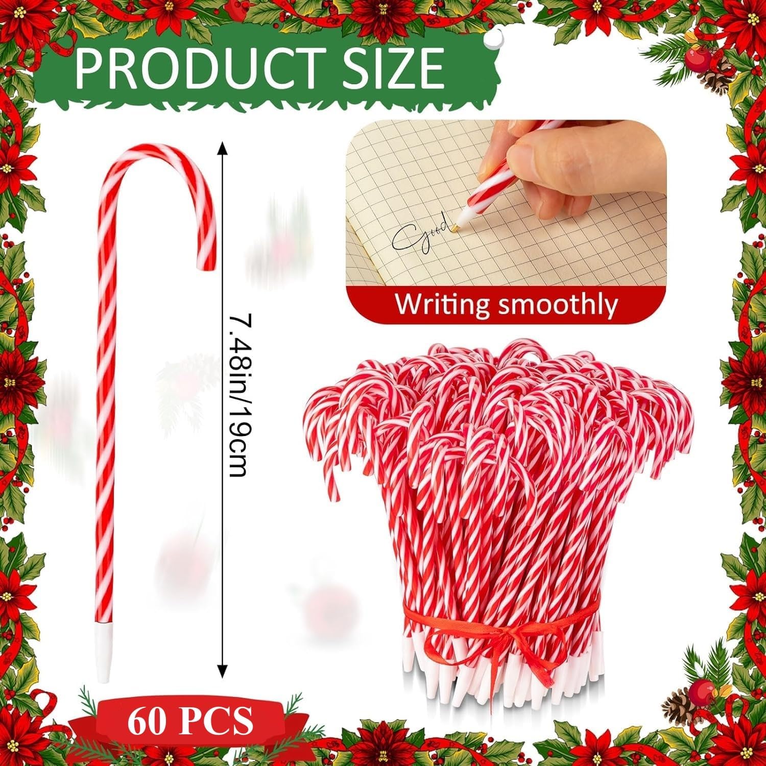 [Alta qualità] Il guscio esterno è realizzato in plastica di alta qualità, superficie liscia, non facile da rompere, la ricarica è realizzata con inchiostro di alta qualità, l'inchiostro viene scaricato uniformemente, liscio nella scrittura [Stile natalizio] Ricco di vivaci strisce rosse e bianche della classica forma di bastoncini di zucchero natalizi, non solo strumenti di scrittura ma un simbolo dell'atmosfera natalizia [Facile da usare] Basta aprire la copertura protettiva per scrivere, pennino da 0,7 mm, inchiostro a 2 colori, inchiostro nero con cappuccio bianco e inchiostro blu con cappuccio rosso, l'inchiostro è liscio e stabile, non facile da volatilizzare o perdere [Dimensioni] 19 cm x 4 cm, piccolo e portatile, facile da trasportare, può essere riposto in astucci, portafogli, tasche ecc., Incluse 60 penne natalizie per bastoncini di zucchero in totale, quantità sufficiente per l'uso [Applicabile] Un regalo di Natale perfetto per famiglia, bambini e amici, ideale per la scrittura quotidiana, il disegno, i graffiti, le firme, la realizzazione di biglietti di auguri, ecc., ottimo anche come decorazione sospesa per alberi di Natale, ecc.
