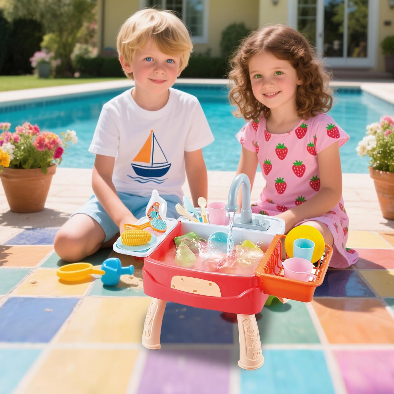 Funzione pulsante: gioco d'acqua interattivo con rubinetto da cucina realistico. Supporta giocosamente la coordinazione occhio-mano in attività educative di ruolo. Uso stabile: la struttura antiurto con struttura interna rinforzata garantisce una stabilità affidabile durante un intenso gioco da ragazzi per lungo tempo Tempo di gioco comune: rafforza il legame familiare attraverso giochi di cooperazione appositamente progettati con elementi di gioco di ruolo per promuovere la comunicazione e l'interazione genitore-figlio Gioco vicino a tutti i giorni: simulazione orientata allo sviluppo di routine da cucina con elementi educativi. Rafforza il pensiero logico e le capacità motorie grazie alle funzioni interattive a batteria. Esperienza di gioco appositamente progettata per giovani studenti. Set da gioco fantasioso: con scolapiatti e spazzola per l'imitazione creativa della casa. Gli elementi separabili facilitano la pulizia durante i giochi di ruolo varianti