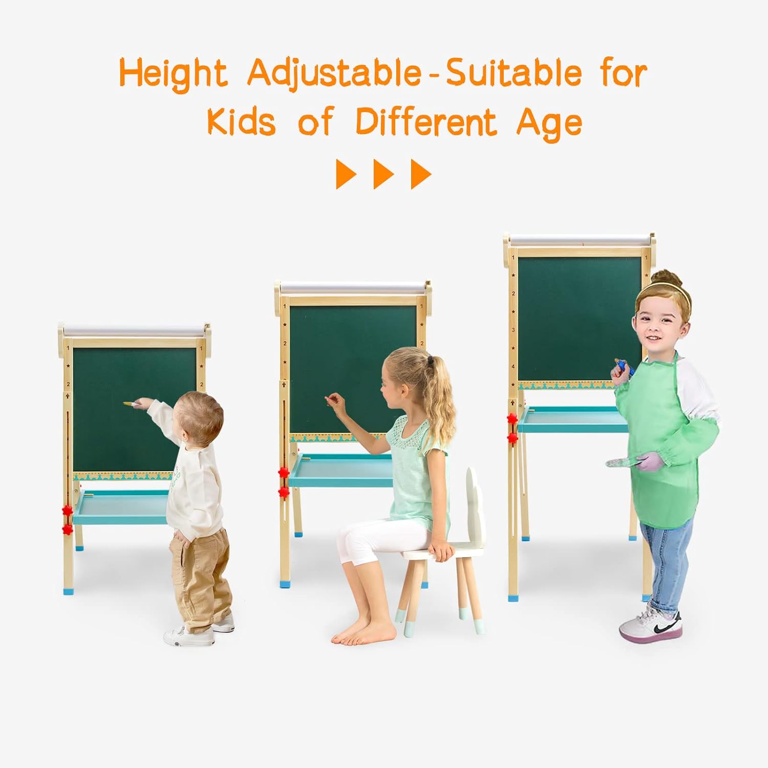 Divertimento assicurato: la nostra lavagna da disegno può essere utilizzata non solo per disegnare sulla lavagna bianca o sulla carta, ma anche per giocare con gli adesivi magnetici, con le lettere dell'alfabeto e i numeri per stimolare la fantasia e la creatività dei bambini. Lavagna a 2 lati. La lavagna nera è adatta per gessetti e la lavagna bianca permette al bambino di essere creativo con i pennarelli, entrambi i lati del cavalletto sono magnetici. Questa lavagna a cavalletto può essere utilizzata da più bambini insieme. Design originale. la lavagna per i gessetti richiama la forma di un simpatico cervo e l’altra ha la forma di un dinosauro. I colori sono graziosi e vivaci e assicurano ai vostri bambini un grande divertimento artistico. Altezza regolabile. Questa lavagna con cavalletto per bambini può essere regolata da 68 a 114 cm, è adatta per i bambini tra i 3 e gli 8 anni. Come speciale idea regalo, questa tavola da disegno può accompagnare il percorso artistico dei bambini. Alta qualità. questo cavalletto per bambini è realizzato in legno di alta qualità, senza vernici, naturale ed ecologico. Viene fornito con un sottopiedi antiscivolo e gessetti senza polvere, è bello stabile e sicuro per i vostri bambini. Sarà un grande regalo per il Natale, per il compleanno, per la festa dei bambini sia per i ragazzi che per le ragazze.