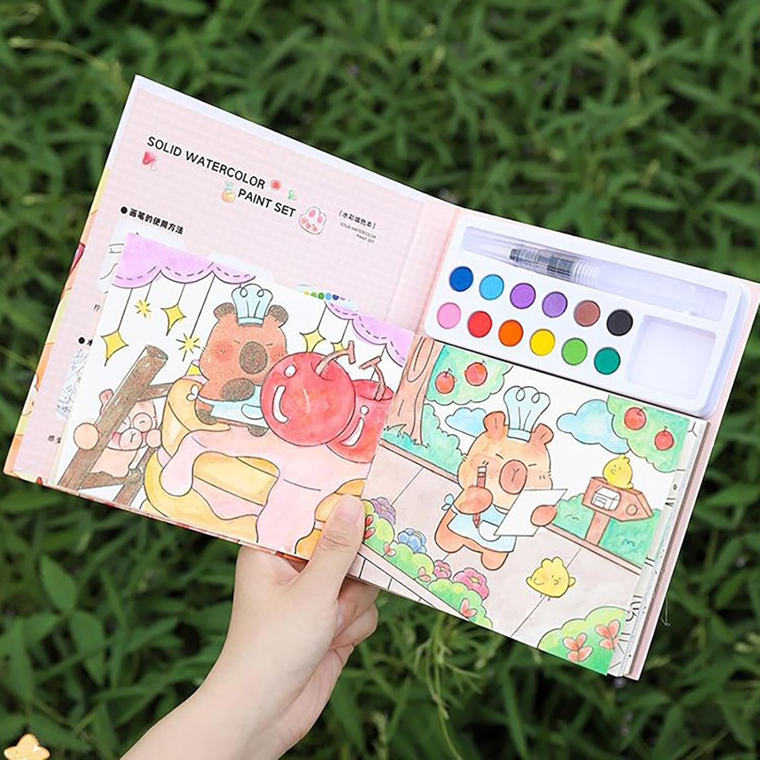 Design multifunzionale: rafforza le abilità creative e le competenze pratiche attraverso progetti artistici stimolanti, particolarmente adatto per creare segnalibri e decorazioni adatte ai bambini. Divertimento creativo della pittura: penna acquerello resistente allo sporco con meccanismo a pressione e punta fine per una pittura senza sforzo, semplifica la pulizia e promuove esperienze positive nei bambini Sviluppo: design accattivanti con diversi personaggi e scene dei cartoni animati stimolano molteplici attività di pittura che aumentano l'interesse e sviluppano efficacemente il potenziale estetico dei bambini Stimola la creatività: con 12 colori, questo libro di acquerelli portatile supporta l'esplorazione creativa ed è perfetto per i viaggi per offrire divertimento pratico per i giovani Durevole e stabile: utilizza carta spessa di alta qualità per evitare la perdita di colore, offre un assorbimento equilibrato dell'acquerello e caratteristiche di sfumatura di alta qualità.
