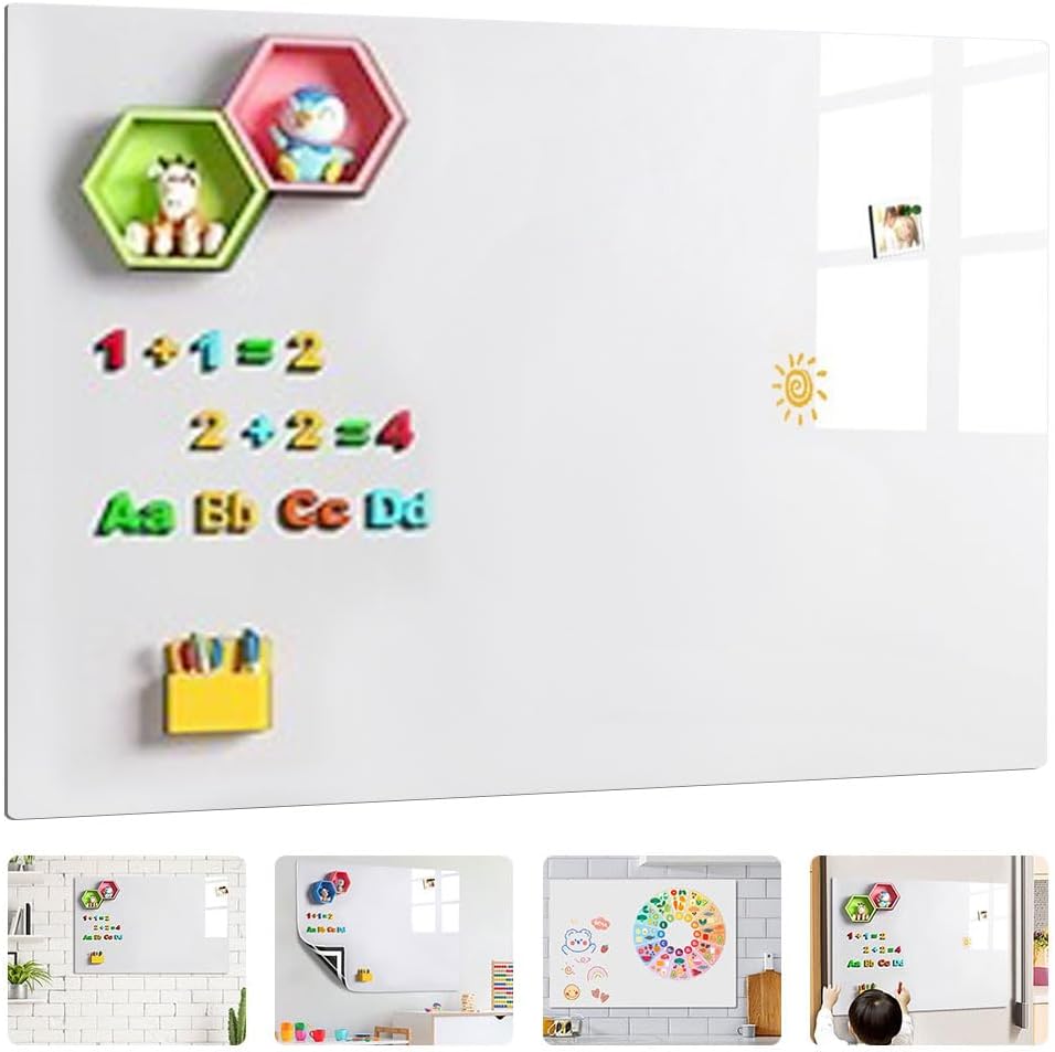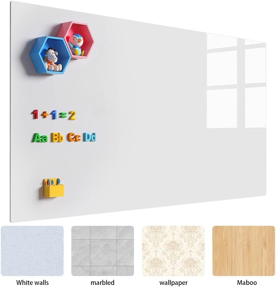 Chiarezza: la nostra lavagna magnetica bianca adesiva presenta una superficie in PET che resiste alle macchie, garantendo che l'area di scrittura rimanga incontaminata. Cancella i pennarelli per lavagna in modo pulito anche dopo un mese, mantenendo la tua grande lavagna pronta per nuove idee. Affidabile attacco per frigorifero: questa lavagna bianca completamente magnetica cancellabile a secco offre una presa forte e rimane saldamente in posizione, anche con l'uso quotidiano. Perfetta come lavagna magnetica per organizzare il frigorifero in case affollate. Rimani organizzato senza sforzo: con questa carta magnetica per lavagna, rimani aggiornato sui piani familiari, sulle liste della spesa e sulla preparazione dei pasti senza cercare carta. La superficie della lavagna bianca si pulisce facilmente per un riutilizzo senza fine. Kit completo per lavagna magnetica: include 8 penne per lavagna bianca, una grande gomma magnetica, 6 magneti, un portapenne magnetico e adesivo. Tutti gli accessori per lavagna magnetica si attaccano saldamente alla perdita. Versatile e spaziosa: questa grande lavagna bianca offre ampio spazio per appunti e creatività. Ridimensiona facilmente la lavagna magnetica cancellabile a secco per adattarsi a qualsiasi spazio, ideale per casa, ufficio o uso in classe.