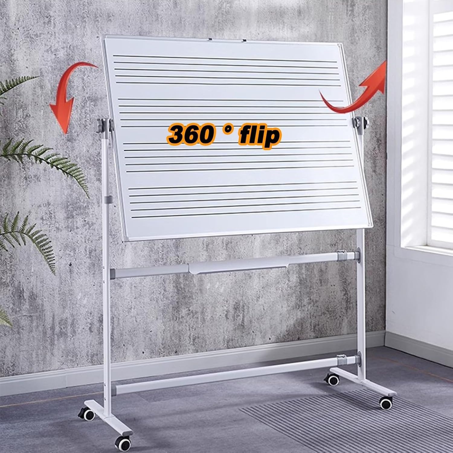 DOPPIO LATO: Un lato è comodo per la creazione e l'insegnamento musicale, e l'altro lato è una lavagna bianca vuota per organizzare le tue idee. La superficie della lavagna è facile da pulire e può essere riutilizzata STABILE E REGOLABILE: Regolando la manopola, la lavagna può essere regolata a qualsiasi angolazione e altezza comode. Il supporto stabile in acciaio rivestito offre un buon equilibrio mentre scrivi sulla lavagna, senza oscillazioni o vibrazioni MOBILE E BLOCCABILE: La lavagna bianca con supporto ha 4 ruote per un facile spostamento, 2 delle ruote possono essere bloccate per mantenere il supporto mobile fissato in posizione quando necessario MULTIFUNZIONALE: Le lavagne bianche musicali cancellabili a secco sono ideali per musicisti, band, insegnanti di musica e studenti e sono un eccellente strumento didattico. Un grande aiuto per rendere la tua presentazione, l'insegnamento o la formazione più efficienti e ordinati FACILE DA ASSEMBLARE: La nostra lavagna mobile cancellabile a secco viene fornita con tutti gli strumenti e gli accessori necessari, richiede solo pochi semplici passaggi secondo le istruzioni per essere installata. L'installazione richiede circa 10-15 minuti