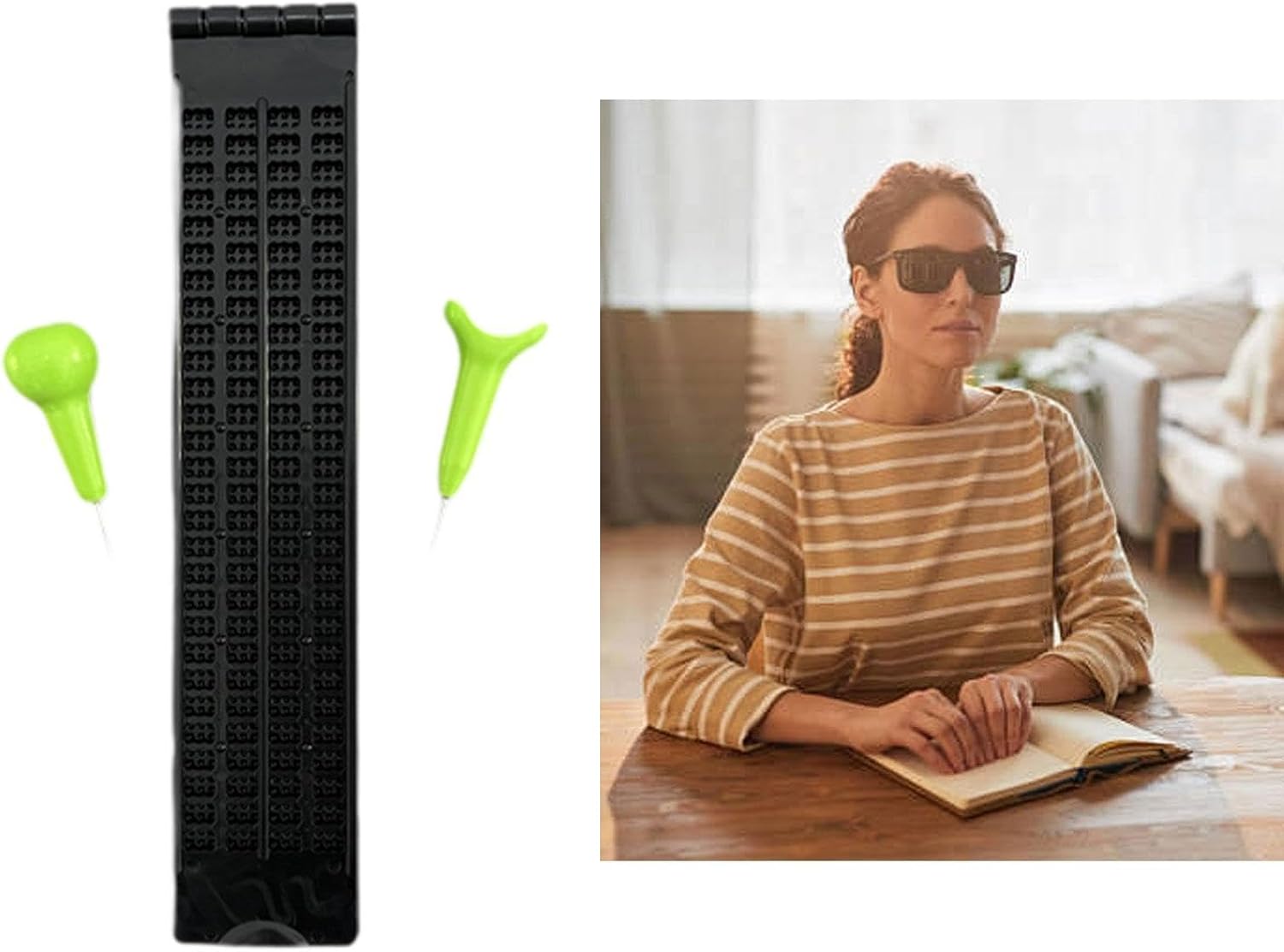 【La confezione include】: la confezione include una lavagna per scrivere in Braille, 2 penne per scrivere facilmente e iniziare a utilizzare immediatamente 【Design intuitivo】: il design della lavagna e dello strumento di scrittura è intuitivo, rendendo facile l'apprendimento e l'utilizzo efficace per i principianti 【Strumento di apprendimento per la scelta ottimale】: questa lavagna per scrittura in Braille funge da risorsa educativa per la scelta ottimale per le persone ipovedenti o non vedenti, aiutandole a imparare il Braille in modo più efficace a casa o a scuola 【Prodotto】: Questa è una lavagna per la scrittura Braille con strumento di scrittura, strumento di apprendimento essenziale per le persone ipovedenti. È progettata per facilitare il loro processo di apprendimento e migliorare le loro capacità di scrittura. 【Materiale】: Realizzata in resistente materiale PP, questa lavagna per scrittura Braille è costruita per durare, garantendo affidabilità e utilizzo a lungo termine.