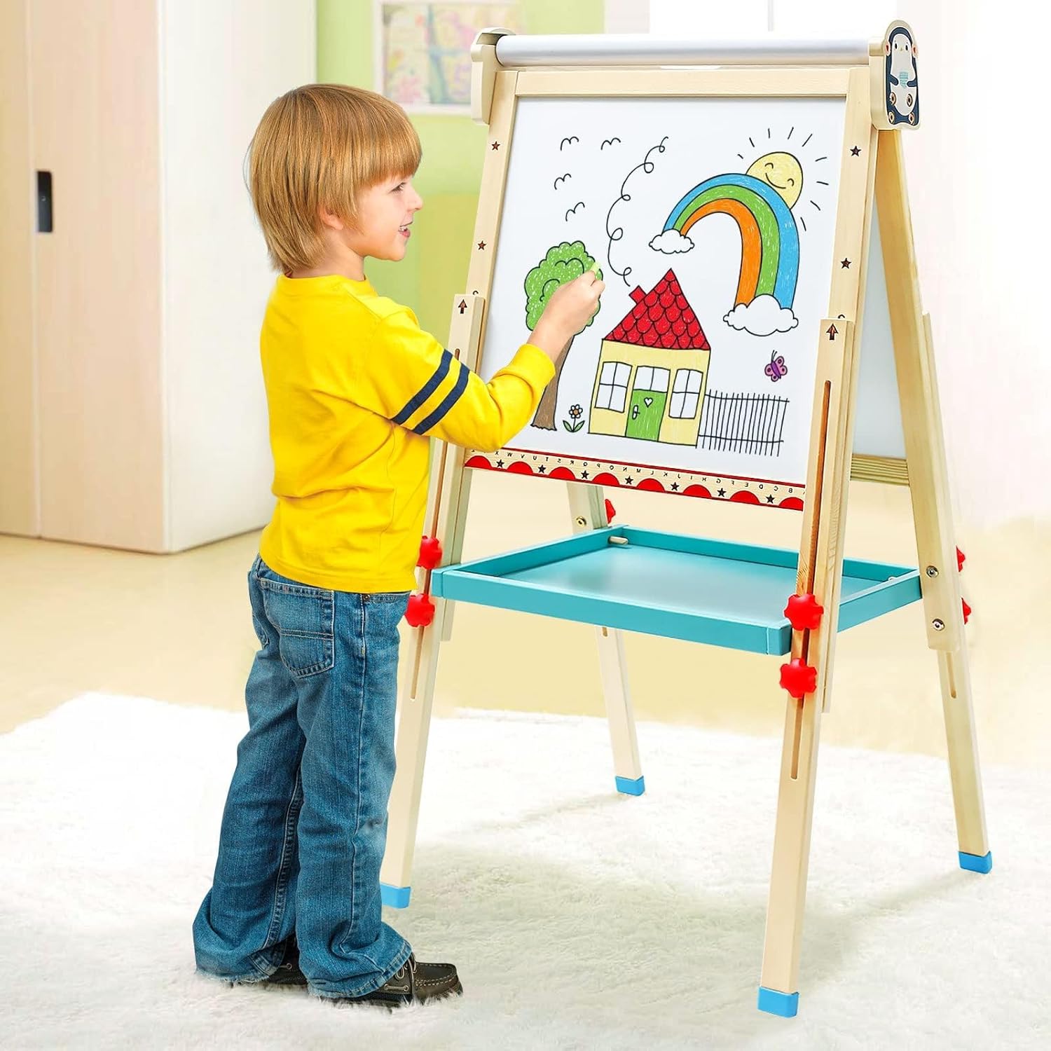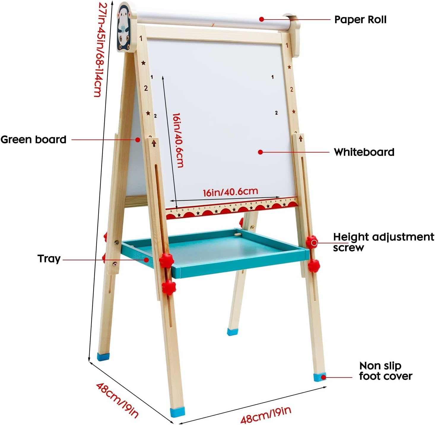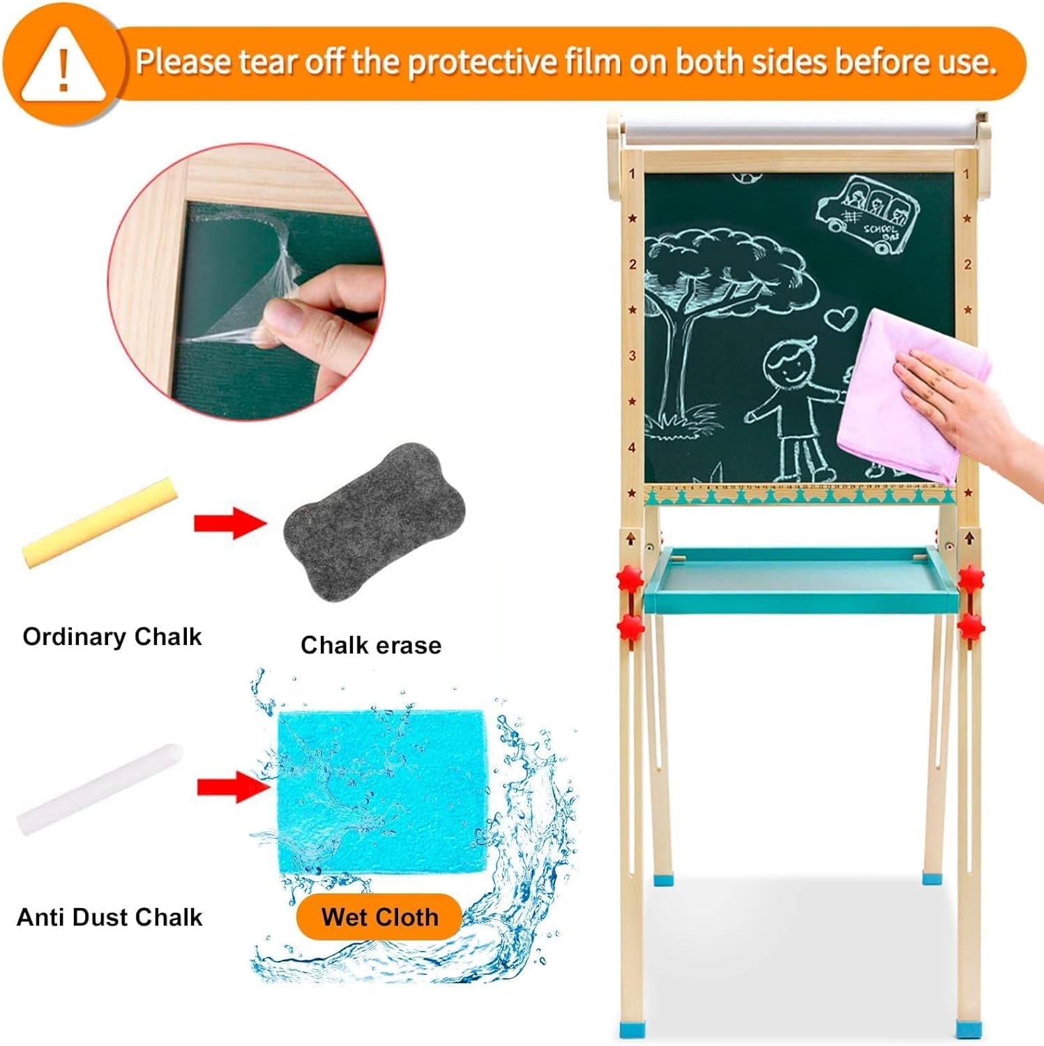 🎨 【Un tavolo da disegno, molti tipi di divertimento】 Il nostro tavolo da disegno non può essere utilizzato solo per disegnare su lavagne, lavagne bianche e fogli, ma può anche essere utilizzato per giocare a giochi di alfabeto e numeri per coltivare l'immaginazione, la creatività, ecc. dei bambini. 🎨【Tavolo da disegno fronte-retro, più pratico】Tavolo diverso richiede l'uso di penne diverse, così i bambini possono provare il divertimento di più tavoli da disegno. Questo cavalletto può essere utilizzato da bambini di diverse fasi. 🎨 【Accessori ricchi】 Questo tavolo da disegno contiene accessori di lusso tra cui carta da 195 pollici, 6 pulsanti, 6 adesivi per cartoni animati, gomma, righello e penne multiple, nonché altri ricchi accessori. 🎨【Altezza regolabile】Il cavalletto per bambini è regolabile da 68 cm a 114 cm, è adatto a bambini dai 3 agli 8 anni e accompagna ogni fase della crescita dei bambini. 🎨 【Alta qualità】 Questo cavalletto da disegno per bambini è realizzato con tronchi d'albero di alta qualità, non contiene vernice ed è naturale ed ecologico. È dotato di piedini antiscivolo, che lo rendono stabile e sicuro per il tuo bambino.