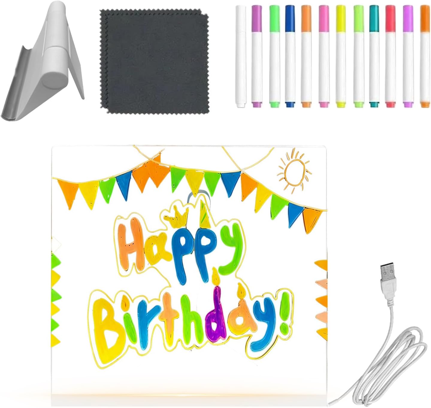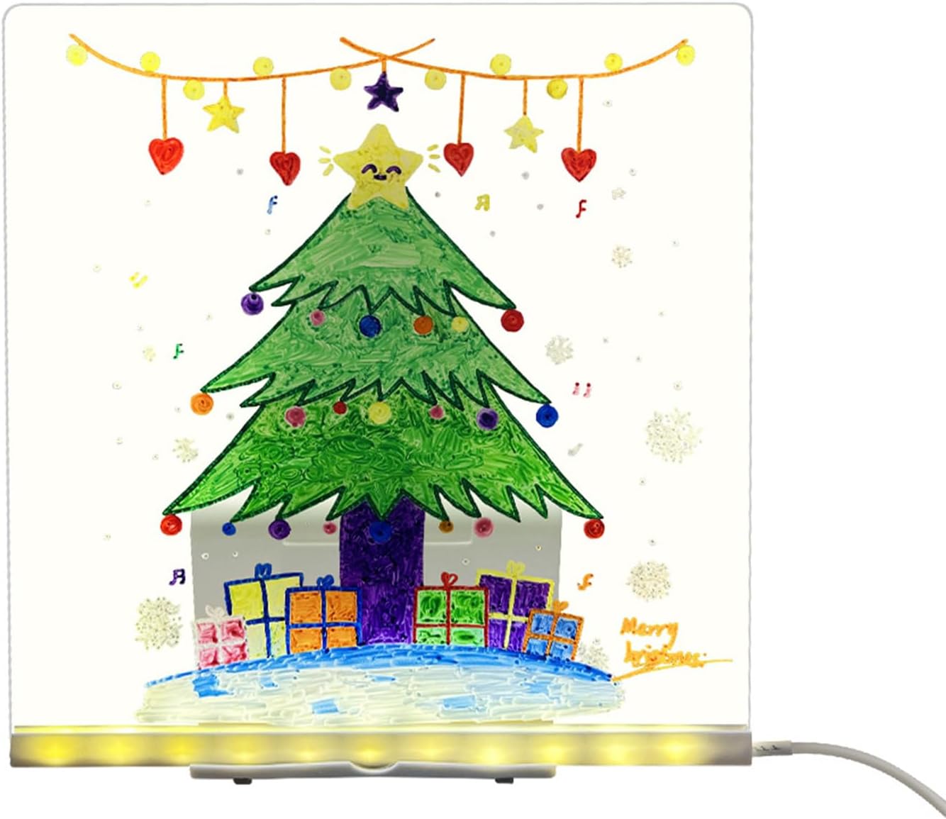 Finitura illuminata: questo tavolo da disegno a LED illumina tratti colorati in condizioni di scarsa illuminazione, fornendo una serie di 7 colori vivaci che ispirano il gioco fantasioso e l'espressione artistica durante le attività serali o i pigiama party. Aiuta lo sviluppo artistico: questo tavolo da disegno a LED supporta lo sviluppo artistico iniziale fornendo un'area divertente per scarabocchi e appunti, fungendo da strumento artistico ideale per i bambini per migliorare la creatività mentre sono impegnati nelle attività quotidiane Nessuno spreco di carta: il tavolo da disegno luminoso presenta una superficie acrilica riutilizzabile e facile da pulire, garantendo l'assenza di sprechi di carta e fornendo allo stesso tempo disegni infiniti divertente, aiutando a mantenere un ambiente pulito e organizzato per le attività dei bambini Installazione semplice: con il supporto per alimentazione USB o power bank, la lavagna a LED offre un'esperienza ordinata, non richiede cablaggio e fornisce al tempo stesso una doppia utilità come strumento di scrittura funzionale e decorazione artistica. Ciò lo rende adatto per aggiungere stile a cucine, sale conferenze o stand promozionali in modo efficace Bordi morbidi per una maggiore sicurezza: questo tabellone LED è realizzato con angoli arrotondati e lisci e un esterno in polipropilene morbido al tatto, offrendo un'esperienza senza preoccupazioni per bambini e genitori in ambienti creativi o educativi