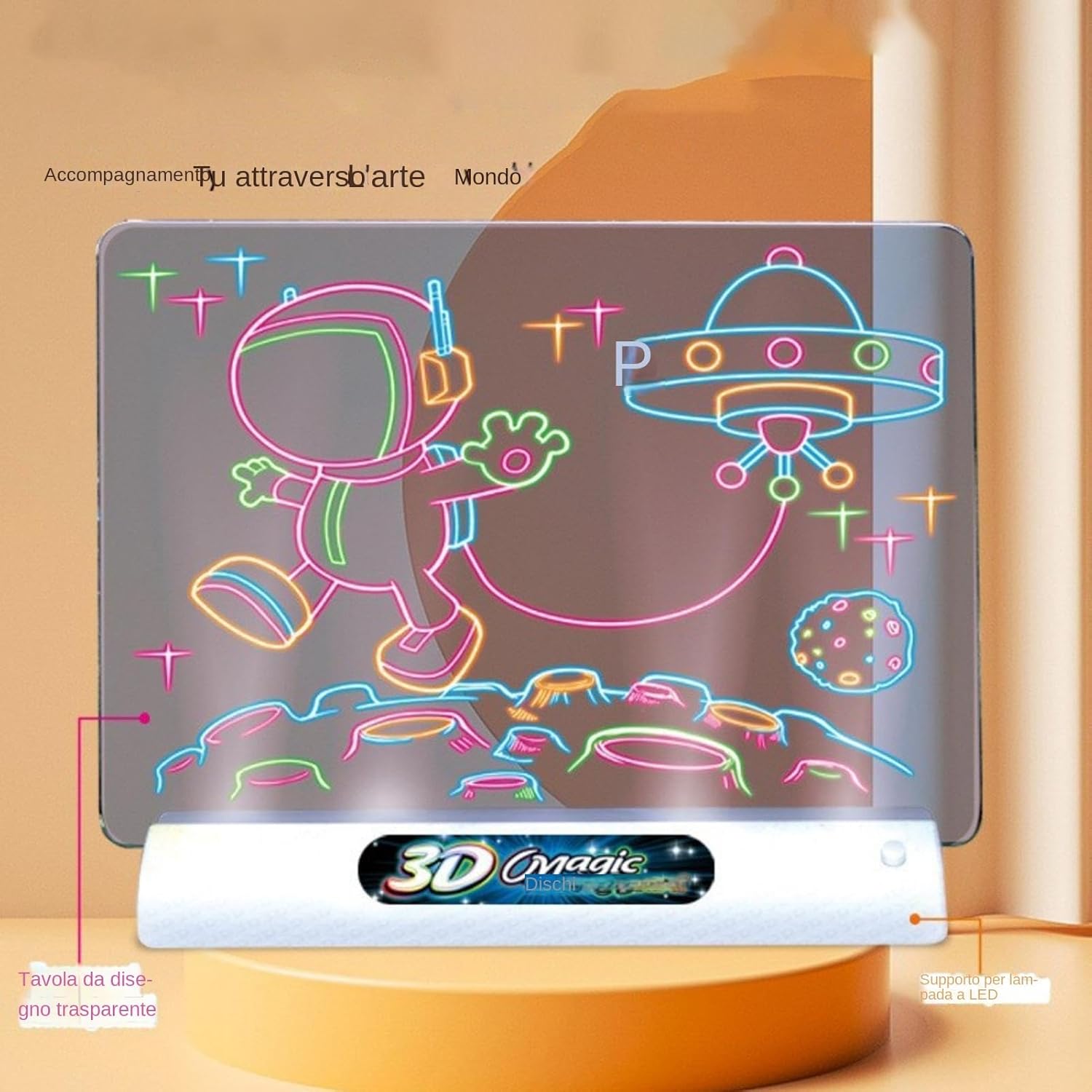 Esperienza fluorescente: utilizzare un effetto di fluorescenza leggera che si illumina al buio con l' della tecnologia avanzata. per progetti creativi e attività divertenti Migliorare le capacità artistiche: il carrello a LED promuove lo sviluppo del coordinamento occhio-mano, della creatività, delle capacità della mano e dello sviluppo delle competenze generali. La promozione 'espressione artistica in bambini e adulti non è mai così facile Design portatile: con il suo design di viaggio, questo blocco di segno a LED è , leggero e si adatta facilmente a una tasca. Non permettere alla mancanza di spazio per ostacolare la tua immaginazione, prendi la tua arte nel viaggio e fai ispirazione vai Proprietà semplice: grazie al suo design rivestito unico, il nostro carrello a LED è super luce. Risparmia e fatica semplicemente cancellandolo e garantendo una semplice manutenzione Widddled: promuovi la tua creatività con il nostro carrello a LED, che è per varie attività artistiche come disegno, tracciamento, disegno, scrittura e conteggio. Mostra le tue idee e migliora efficacemente le tue abilità
