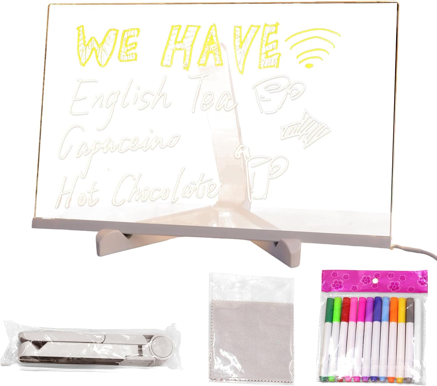 Lavagna promemoria a LED: il blocco note luminoso è uno strumento di scrittura versatile che consente ai bambini di esprimersi attraverso la scrittura e il disegno, mentre delizierà la divertente opzione di messaggio Design che migliora la messa a fuoco: la creazione artistica utilizzando evidenziatori migliora la concentrazione e stimola l'immaginazione, offrendo uno strumento divertente ma funzionale che affascina ogni fascia di età con la sua struttura adorabile e facile da trasportare Ampia gamma di applicazioni: un'aggiunta versatile agli spazi commerciali, fornisce utilità di calendario, funge da strumento per promemoria e completa l'arredamento della stanza, garantendo funzionalità e fascino estetico in un prodotto Comoda e di lunga durata: progettata per la praticità, questa bacheca a LED presenta una struttura a bassa manutenzione che è facile da pulire con un panno, offrendo una soluzione riutilizzabile costruita per resistere a un uso ripetuto senza problemi Idea regalo: un regalo divertente e pratico, perfetto per le occasioni festive, adatto per vacanze e compleanni, e ottimo per Natale, migliora le celebrazioni con opzioni regalo premurose