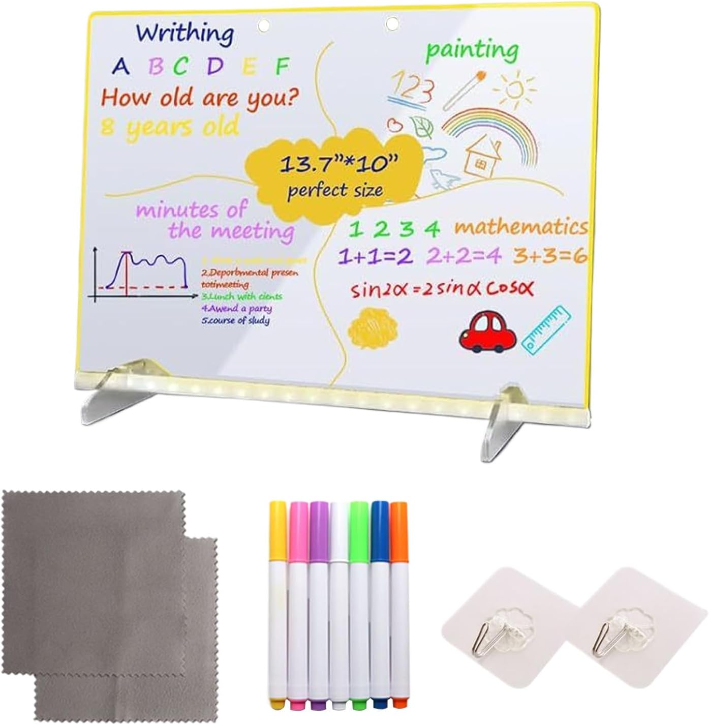 Superfici Scrittura Facile: Pannello acrilico resistente offre finitura di scrittura liscia che elimina i senza sforzo, semplifica le attività domestiche e le routine di appunti per tutta la famiglia Gioco Imaginativo: Strumento con 7 colori ideali per combinazioni, la creatività e ispira esperienze di gioco fantasiose per menti giovani Visibilità Notturna Migliorata: Caratterizzata da un effetto luminoso delicato e una sorgente LED a colori avanzata, questa bacheca luminosa assicura una retroilluminazione brillante e colorata mantenendo un ambiente senza abbagliamenti per l'utilizzo notturno con eccellente leggibilità in totale oscurità Applicazioni Ampie: Ideale per prendere appunti professionali e didivertenti per bambini, questa lavagna a LED trova impiego in aule, spazi creativi e abitazioni come pratico pannello per messaggi familiari e organizzazione visiva con tecnologia a risparmio energetico Design Robusto: Caratterizzato da un supporto resistente che permette posizionamento regolabile con stabilità affidabile, mantenendo la lavagna LED sicuramente in posizione durante varie applicazioni quotidiane d'ufficio