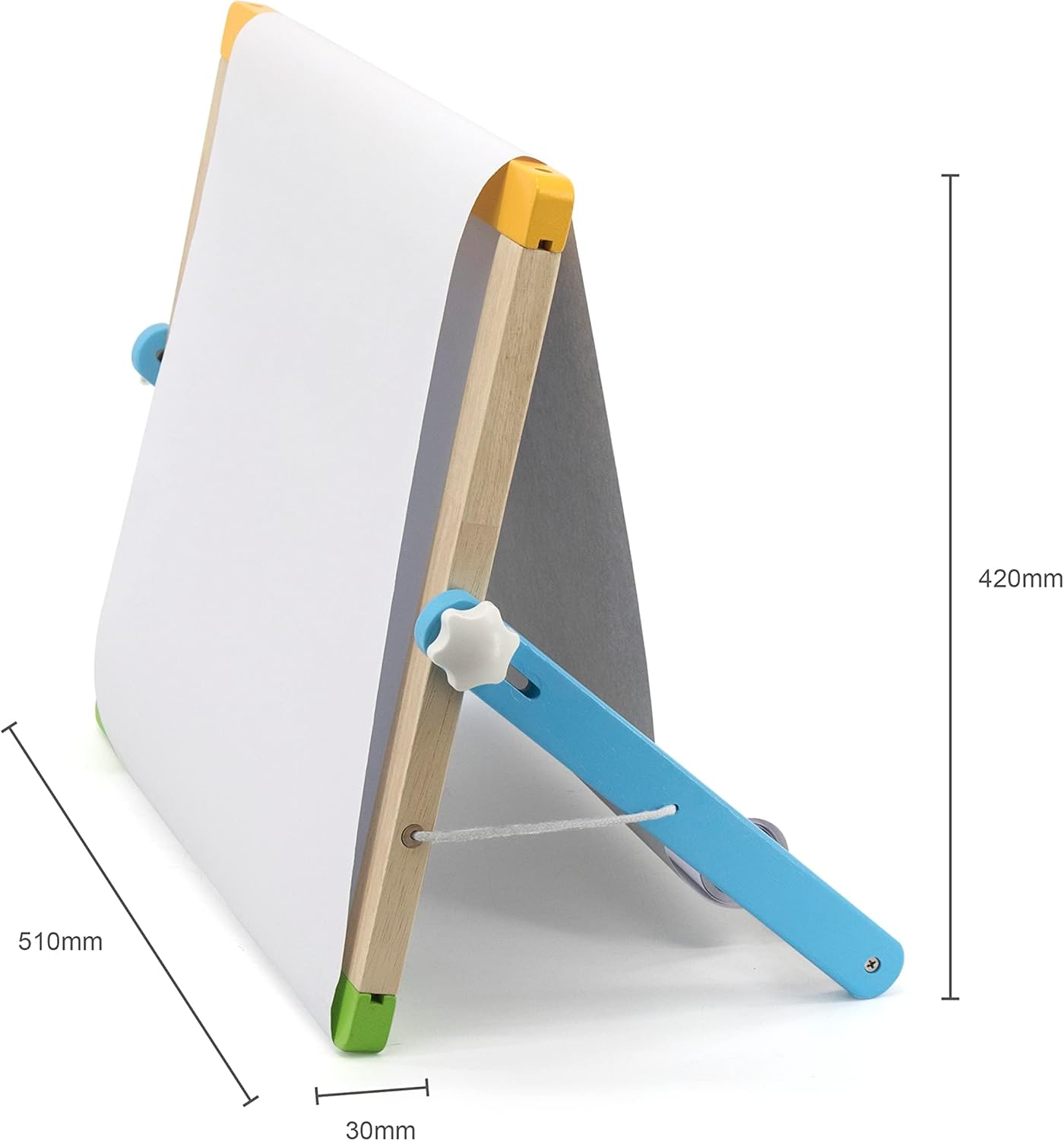 Un rotolo di carta extra ti consente di creare disegni più durevoli Realizzato in legno di alta qualità Verniciato con vernici atossiche Nessun bordo tagliente, quindi sicuro per i bambini Facile da montare e spostare