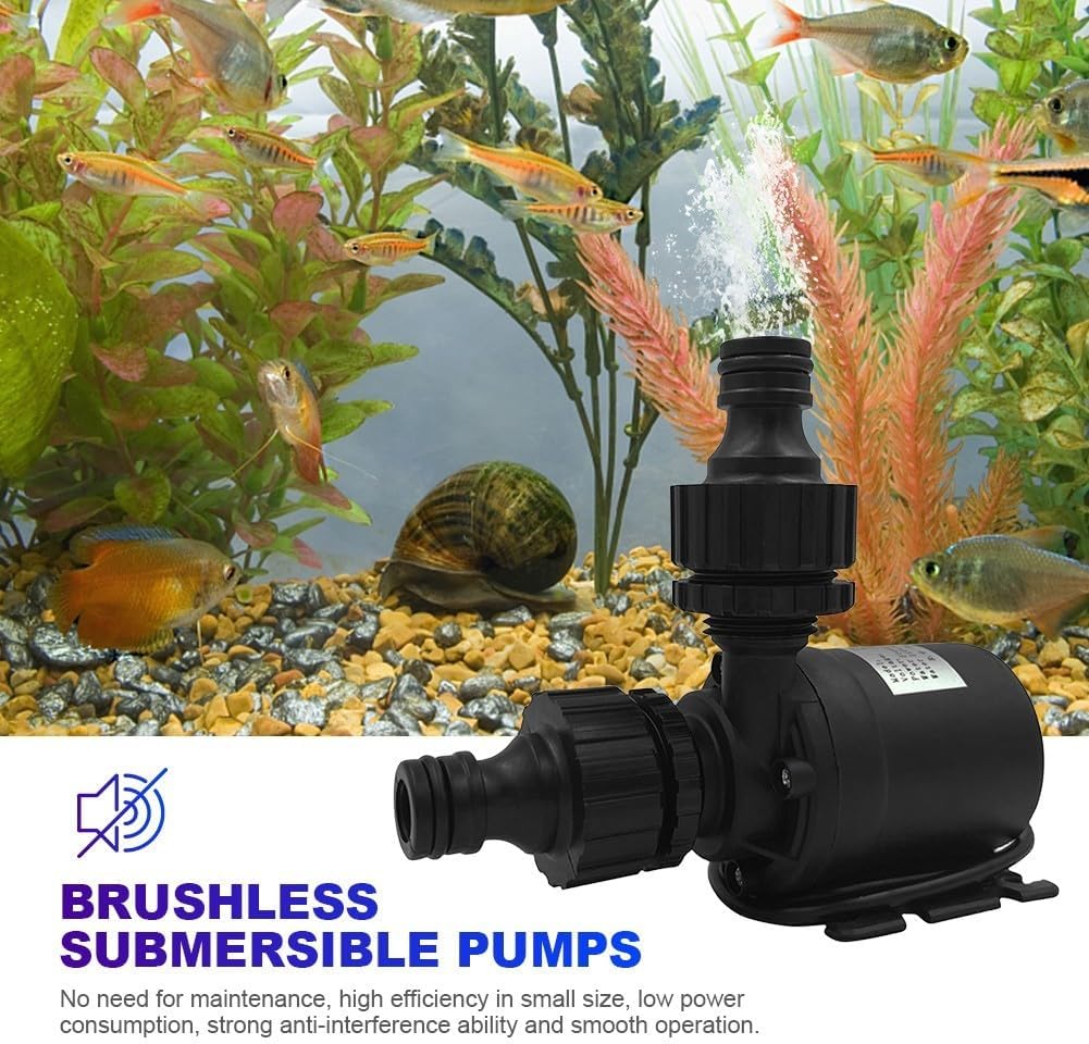 Potente circolazione dell'acqua: con una portata di 800 l/h e un'altezza di sollevamento di 5 m, questa pompa ad acqua sommergibile senza spazzole offre un movimento dell'acqua forte e continuo per acquari e stagni più grandi, garantendo una qualità dell'acqua ottimale e un habitat fiorente per la vita acquatica Funzionamento ad alta efficienza energetica: il design del motore brushless da 12/24 V riduce significativamente il consumo energetico e l'attrito mantenendo prestazioni stabili, rendendolo perfetto per fontane solari e sistemi idrici dove il funzionamento silenzioso è essenziale Funzionalità anfibia versatile: progettata per funzionare efficacemente sia sott'acqua che a terra, questa mini pompa dell'acqua è adatta per varie applicazioni, tra cui circolazione dello stagno, display per fontane e gestione dei giochi d'acqua con gli adattatori G1/2 a G3/4 inclusi Nucleo della pompa di lunga durata: dotato di un nucleo ad alte prestazioni con resistenza all'erosione, questa pompa subacquea offre un funzionamento regolare con il minimo rumore, offrendo una durata prolungata per un uso continuo in acquari e fontane Facile installazione: il design compatto viene fornito completo di 2 adattatori per tubi dell'acqua, 2 morsetti in acciaio inossidabile (diametro 14-27 mm) e terminali termoretraibili impermeabili, rendendo l'installazione e la manutenzione semplici per tutti i requisiti di gestione dell'acqua