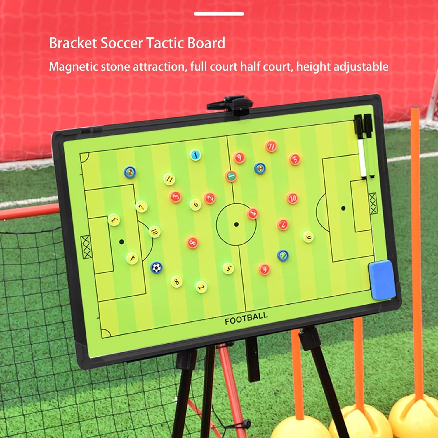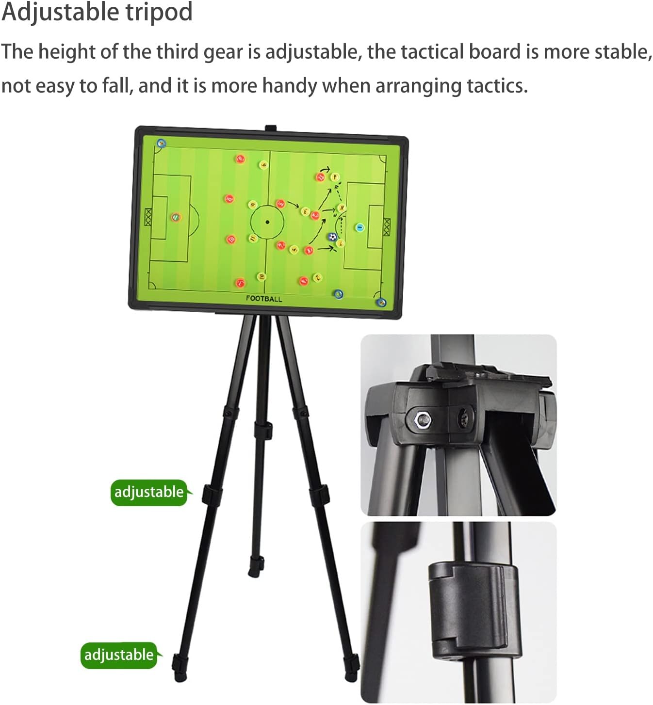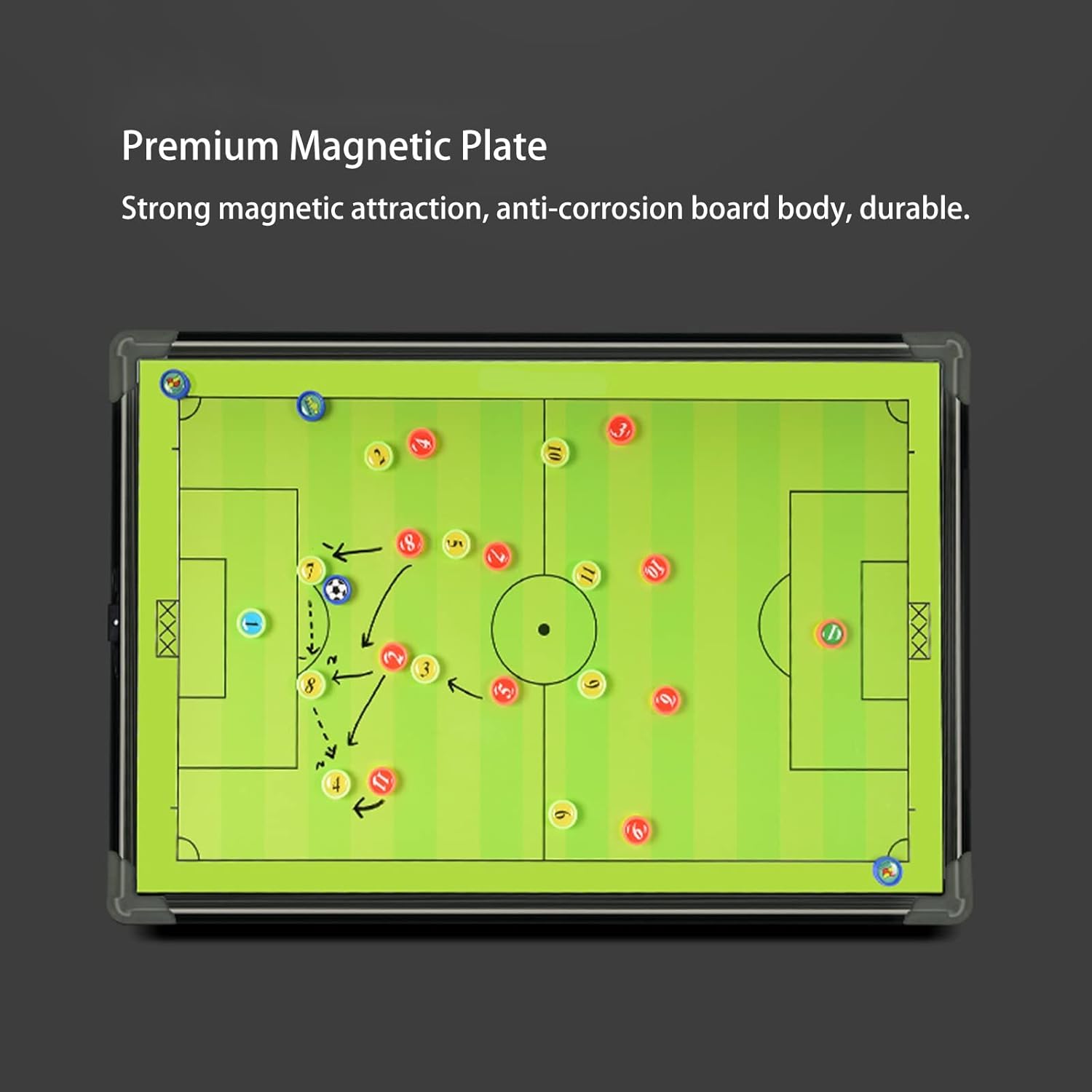 Esperienza perfetta: con treppiede pieghevole e facile da montare, in modo da poterlo posizionare sul campo. Texture chiara e vivida per coaching appunti magnetici, simulazione al 100% del campo da calcio, colorato e intuitivo, ti consente di essere molto liscio e confortevole nel discutere tattiche. Accessori eccellenti: 26 magneti che rappresentano giocatori, arbitri e palla. E dietro i pezzi degli scacchi ci sono magneti di alta qualità, forte adesione. Realizzato in PVC di alta qualità, sembra molto elegante. Viene fornito con una borsa per il trasporto, dopo il lavoro basta smontarlo e metterlo nella borsa, evitare di perderlo, portatile per l'allenamento al chiuso e all'aperto. Superficie facile da pulire: la tavola da allenatore di calcio e basket funziona con la maggior parte dei pennarelli cancellabili a secco e ha una superficie facile da pulire. Durevole: realizzato con materiali durevoli di alta qualità con linee nitide e resistenti allo sbiadimento. Facile da vedere da lontano e un campo da basket a colori / campo da calcio. Kit di strategia: per ideare strategie di gioco e sostituzioni, ideale anche per pianificare sessioni di pratica. Aiuta il tuo team a trovare innovativi.