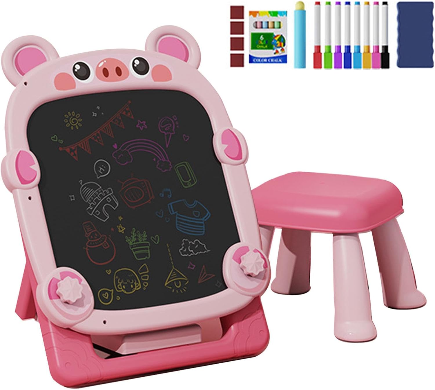 Ispira l'espressione creativa: il nostro tavolo da disegno a doppia faccia fornisce una lavagna nera su un lato e una lavagna sull'altro, fornendo una tela per graffiti, scrittura o pittura facili Design pieghevole, risparmia spazio: appositamente progettato con una funzione pieghevole, questo tavolo da disegno consente di risparmiare spazio piegandosi facilmente dopo l'uso per riporlo in modo compatto Design ergonomico per la crescita: man mano che il bambino cresce, l'altezza del tavolo da disegno può essere regolata liberamente per garantire una postura comoda durante il disegno, prevenendo efficacemente la gobba e accompagnandolo in ogni fase della pittura Vantaggio creativo migliorato: questo tavolo da disegno fronte-retro è dotato di una pratica e comoda poltroncina, dotata di tecnologia antiscivolo per una maggiore sicurezza e progettata con materiali ecologici Aria respiratoria pulita: il nostro tavolo da disegno a doppia faccia con design a gesso senza polvere protegge efficacemente la salute respiratoria dei bambini. Mantieni la tua casa pulita e al sicuro dal tradizionale inquinamento da polvere di gesso mentre ti godi un'esperienza di disegno divertente e interattiva con questo giocattolo da lavagna per uso domestico