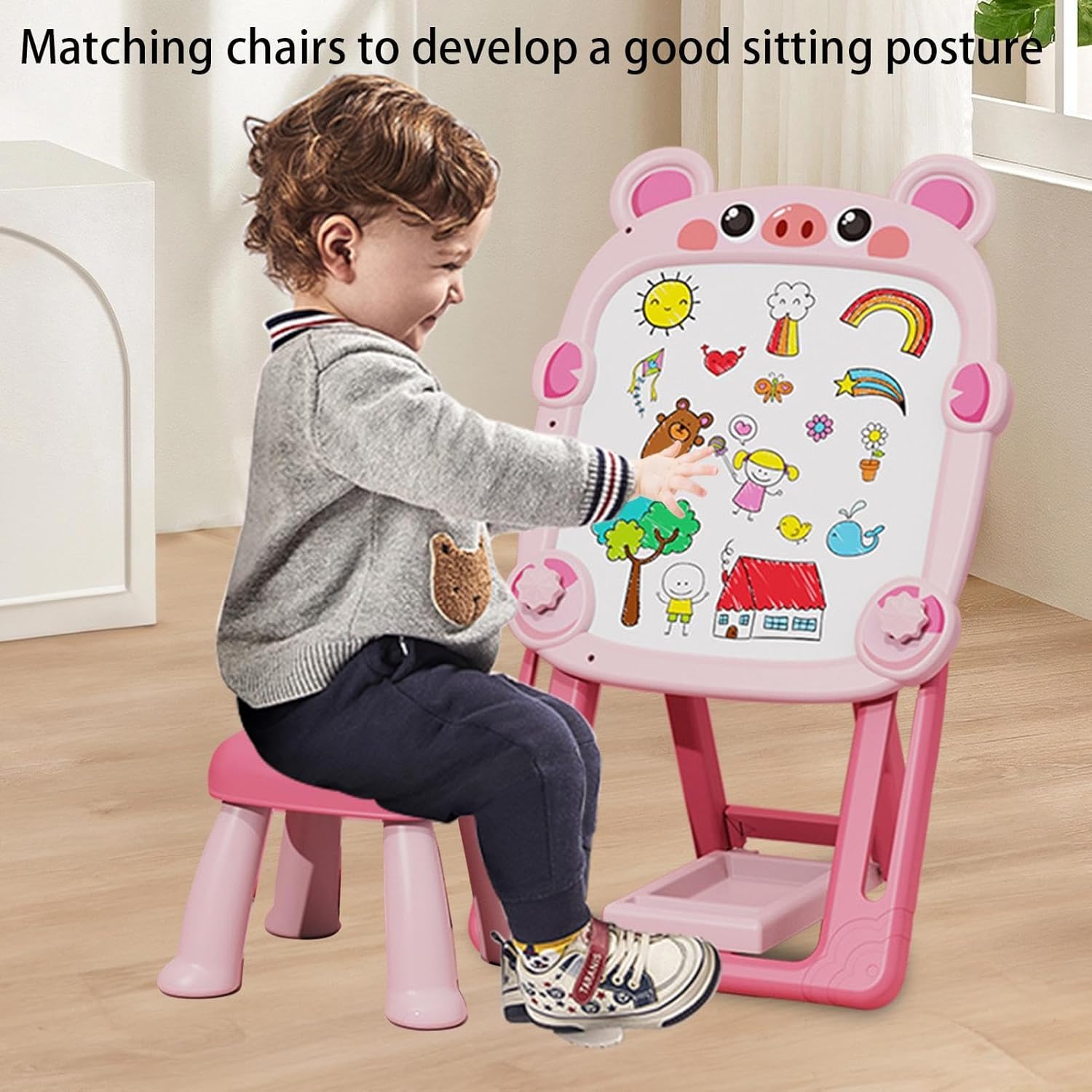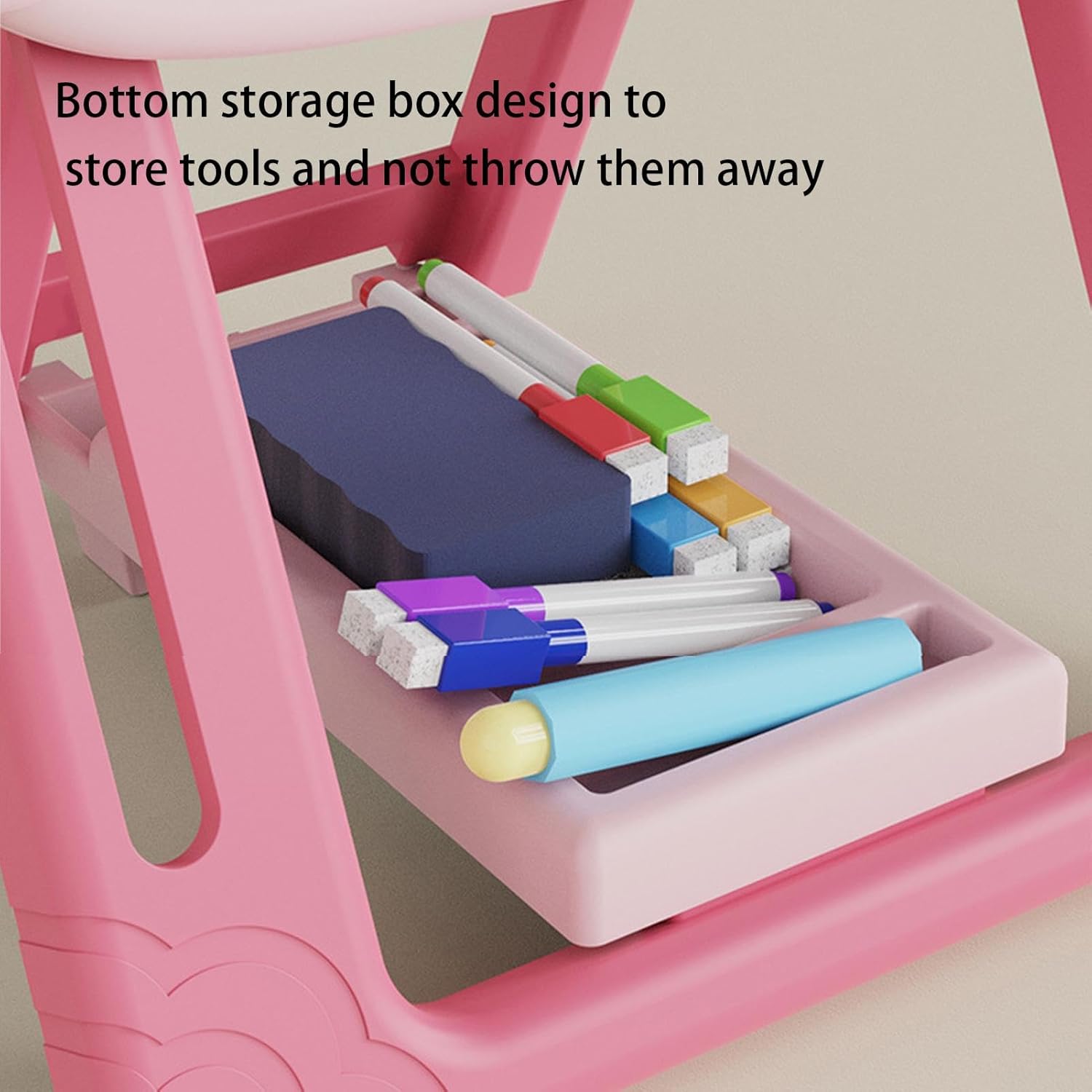 Ispira l'espressione creativa: il nostro tavolo da disegno a doppia faccia fornisce una lavagna nera su un lato e una lavagna sull'altro, fornendo una tela per graffiti, scrittura o pittura facili Comodità salvaspazio: con il suo innovativo design pieghevole, questo tavolo da disegno a doppia faccia consente di riporlo facilmente senza occupare spazio prezioso. Perfetto per aree di lavoro più piccole o opzioni di archiviazione limitate Altezza adattiva per la salute: assicurati che tuo figlio mantenga una postura sana con il nostro tavolo da disegno bifacciale regolabile in altezza. Man mano che crescono, la tavola può essere regolata di conseguenza, prevenendo efficacemente la gobba e favorendo il comfort. Accompagnali in ogni fase della verniciatura con questo design ergonomico Vantaggio creativo migliorato: questo tavolo da disegno fronte-retro è dotato di una pratica e comoda poltroncina, dotata di tecnologia antiscivolo per una maggiore sicurezza e progettata con materiali ecologici Aria respiratoria pulita: il nostro tavolo da disegno a doppia faccia con design a gesso senza polvere protegge efficacemente la salute respiratoria dei bambini. Mantieni la tua casa pulita e al sicuro dal tradizionale inquinamento da polvere di gesso mentre ti godi un'esperienza di disegno divertente e interattiva con questo giocattolo da lavagna per uso domestico