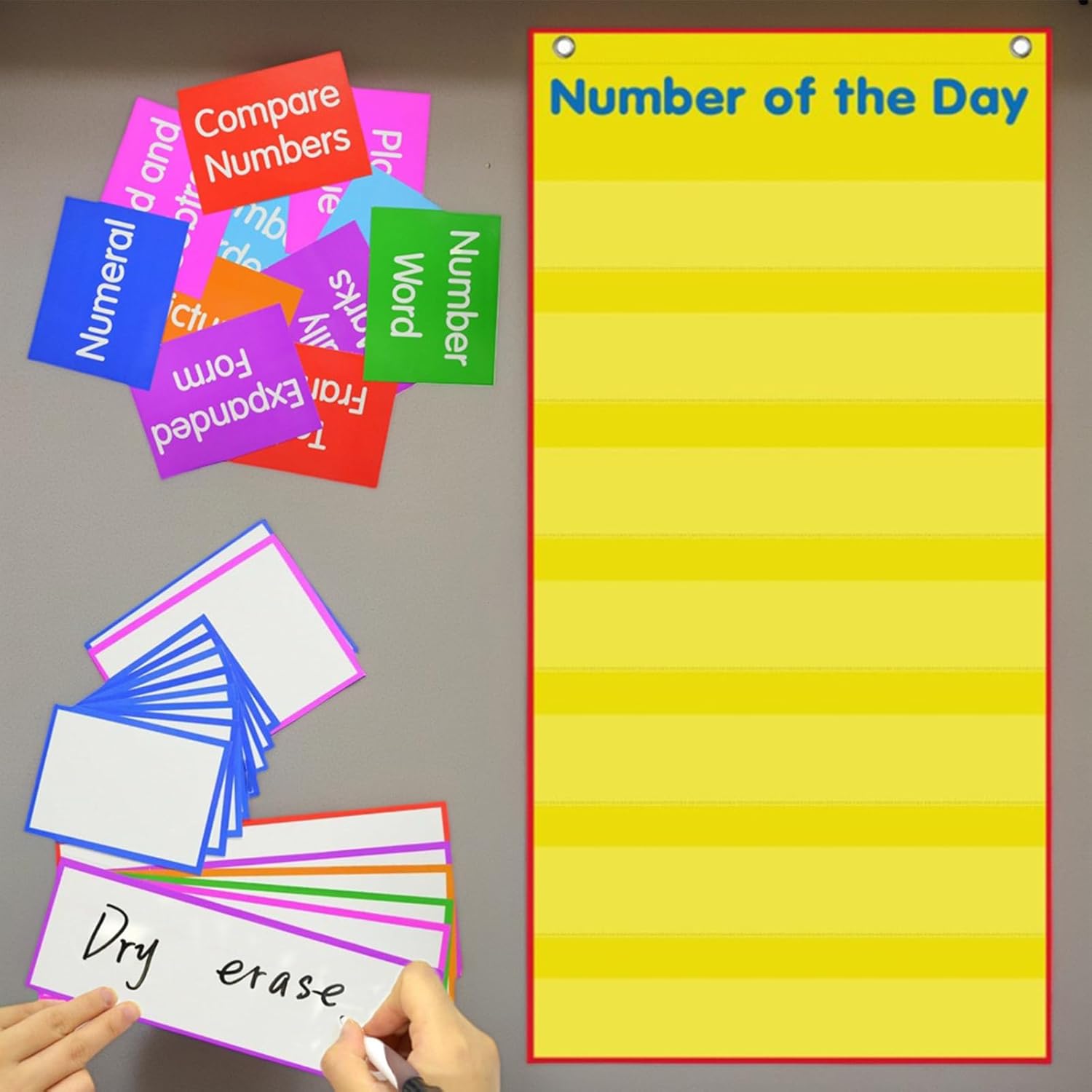 Organizzato e ben visibile: le tasche trasparenti con il concetto di sospensione salvaspazio consentono un'organizzazione efficiente della parete pur mantenendo una visibilità ottimale e accessibilità dei documenti Qualità delicata sulla pelle: con materiali delicati, resistenti agli strappi e all'usura, la borsa da appendere garantisce prestazioni durature in caso di uso frequente in diversi utilizzi, senza compromettere l'aspetto o la praticità Promuovere le competenze chiave: rafforza la memoria visiva e le applicazioni matematiche attraverso numeri e parole in un efficace sistema di apprendimento integrato per il progresso educativo Facile da trasportare: il Pocket Chart flessibile convince grazie alla struttura facilmente pieghevole che consente un facile trasporto e una conservazione salvaspazio. Ideale per diverse esigenze di insegnamento o organizzazione Pratica pratica di esercizio efficiente: con superfici riscrivibili per un allenamento ripetitivo, gli elementi cancellabili garantiscono una facile pulizia per un uso educativo duraturo