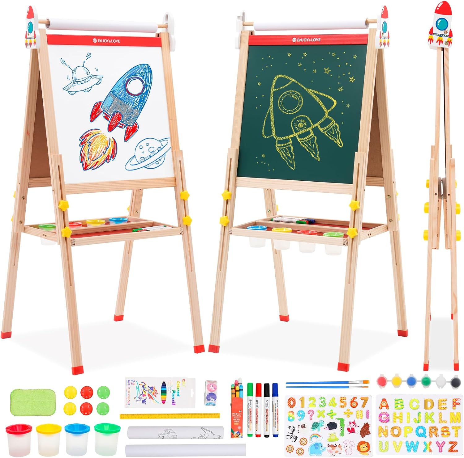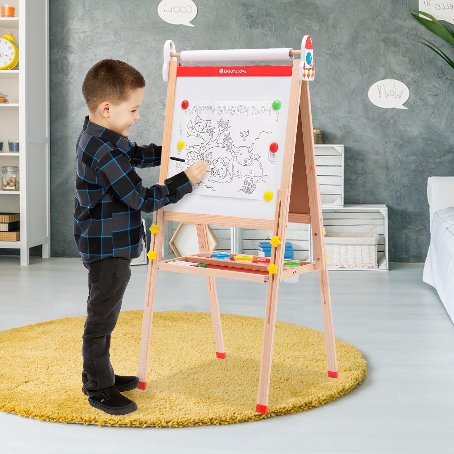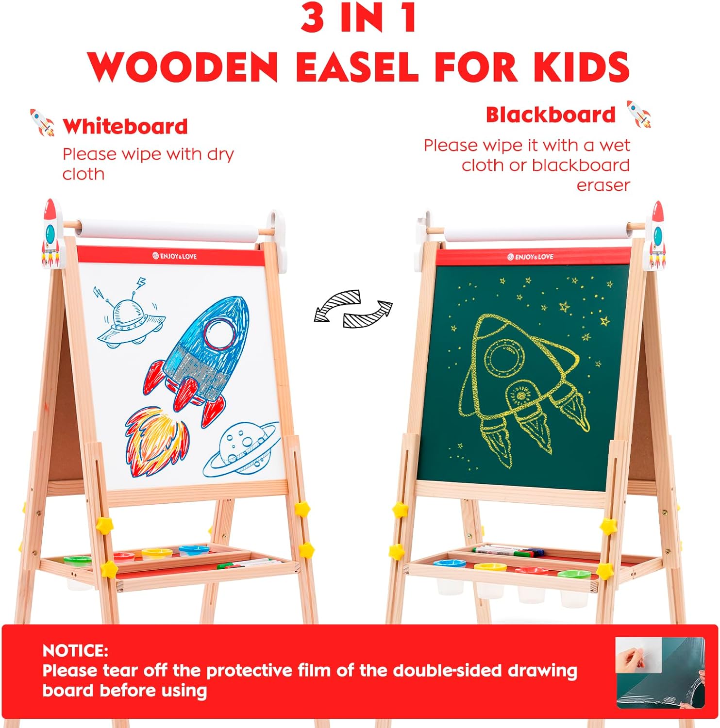 【Cavalletto artistico aggiornato】 Rispetto ai cavalletti artistici tradizionali, il nostro cavalletto artistico in legno per bambini è dotato di un vassoio pieghevole per riporlo comodamente. Il nostro tavolo da disegno può portare il divertimento di dipingere a tre o quattro piccoli pittori contemporaneamente, poiché contiene sia carta in rotolo normale che carta in rotolo per graffiti colorabile, così ogni piccolo pittore può provare la gioia del tavolo da disegno 【Cavalletto per bambini regolabile in altezza】 L'altezza del cavalletto può essere regolata da 102 cm a 131 cm in base all'età dei bambini, rendendolo adatto a bambini di diverse età per dipingere. Il design regolabile in altezza significa che può accompagnare il tuo piccolo artista durante tutta la sua infanzia 【Rendi divertente l'apprendimento】 Questa lavagna per bambini è dotata di ricchi accessori per l'apprendimento. Il tuo bambino si divertirà a praticare lettere, numeri, conteggio e abilità matematiche. Aiutano anche i bambini a sviluppare le loro capacità motorie e le lavagne e le lavagne cancellabili a secco sono ottime per sviluppare le capacità motorie e una corretta presa della matita 【Facile da montare e piegare】 Questo cavalletto per bambini è dotato di un robusto telaio in legno che è facile da montare e si ripiega per riporlo e riporlo salvaspazio. La struttura piramidale e i piedini antiscivolo nella parte inferiore aumentano la stabilità del cavalletto, non solo un buon compagno per i bambini, ma può anche essere utilizzato per cartelli nuziali, presentazioni e poster di presentazione 【Materiale in legno sicuro e di alta qualità】 Il nostro cavalletto per bambini è realizzato in legno di alta qualità, liscio e privo di sbavature, non devi preoccuparti di ferire le mani di tuo figlio, sicuro e durevole. Tutti i cavalletti e gli accessori per bambini sono testati e certificati, quindi puoi acquistarli in tutta sicurezza 【Regalo per ragazzi e ragazze】 Non solo offre ore di intrattenimento creativo, ma stimola anche l'immaginazione e la creatività, rendendolo il regalo per ragazzi e ragazze a Natale, Festa dei bambini e compleanni. Non perdere questa grande opportunità per coltivare i talenti artistici di tuo figlio