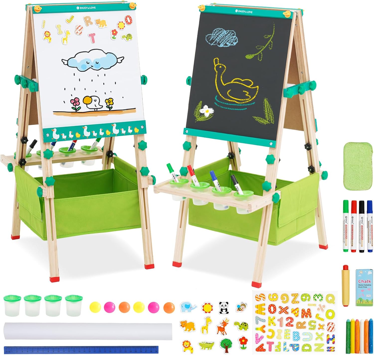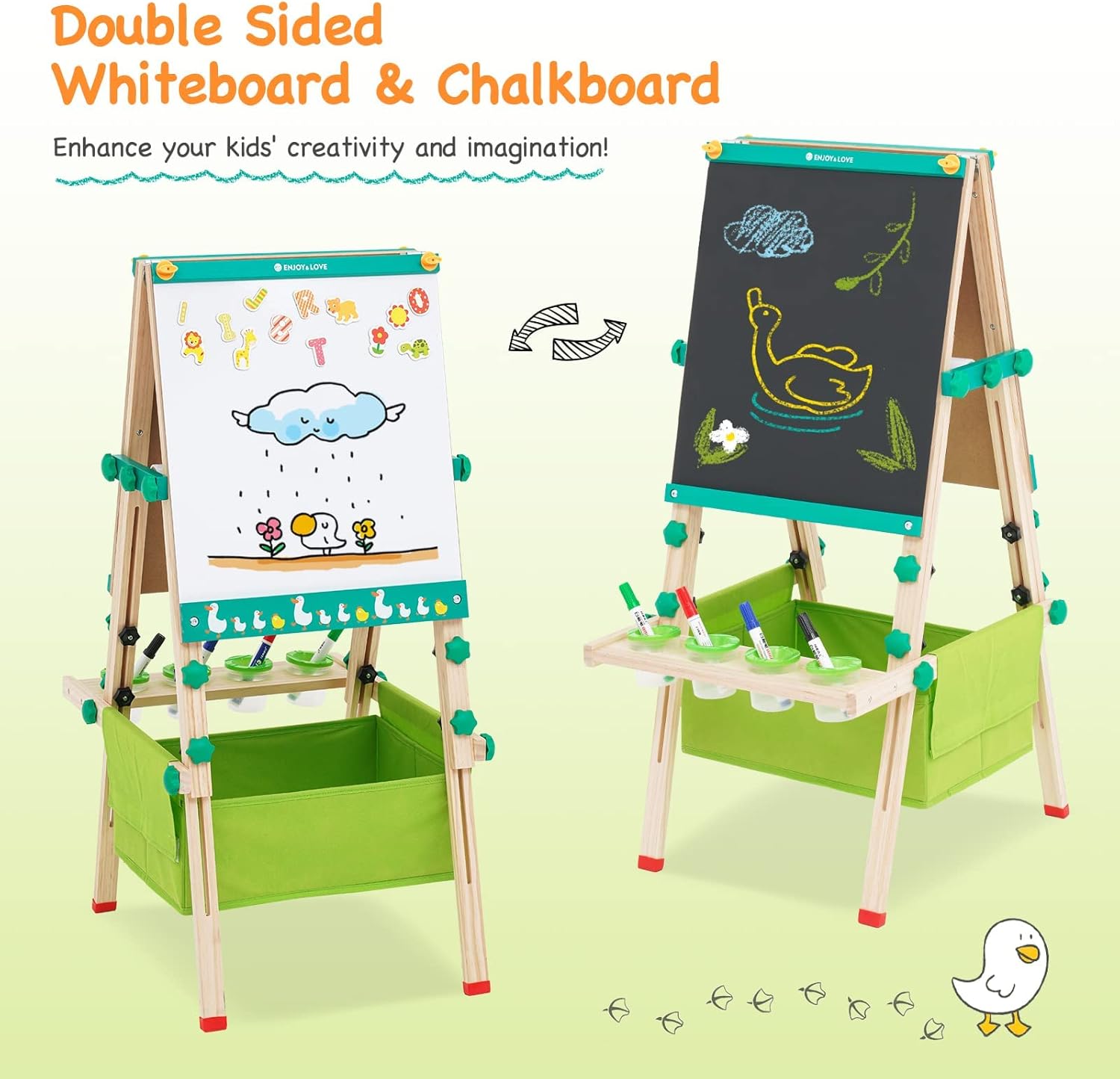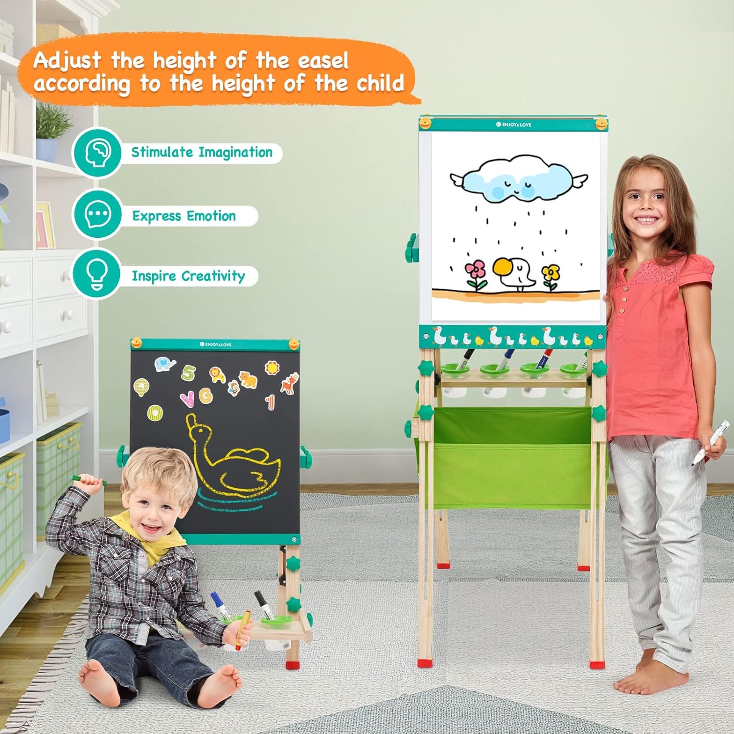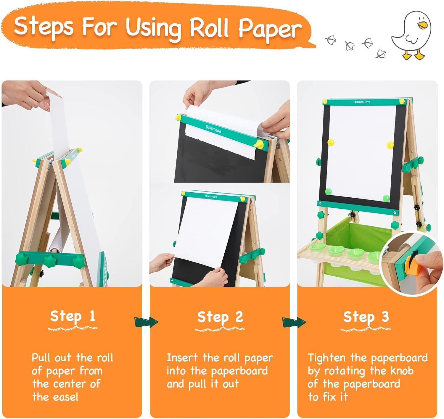 【LAVAGNE A DOPPIA FACCIA】Questo popolare cavalletto artistico multifunzionale a doppia faccia per bambini stimola l'immaginazione e la creatività e aiuta anche i bambini a esprimere idee attraverso la pittura, gli schizzi, gli scarabocchi, ecc.; la carta da disegno integrata (195 pollici) è più favorevole per risparmiare carta ed evitare di sprecare troppa carta quando i bambini disegnano 【FACILE DA ASSEMBLARE】Dotato di un robusto telaio in legno, questo cavalletto è facile da montare, si piega per riporlo ed è regolabile in altezza. Nella confezione del prodotto sono presenti le istruzioni. È possibile installare seguendo le istruzioni o fare riferimento al video di installazione e montaggio sul sito web 【ALTEZZA REGOLABILE】Man mano che l'altezza del bambino cambia, il cavalletto può essere regolato a diverse altezze. L'intervallo di altezza regolabile del cavalletto è 74-124 cm 【ACCESSORI RICCHI】 il tavolo da disegno è composto da accessori di lusso, carta da 195 pollici, 1 grande scatola portaoggetti, 4 bicchieri portaoggetti, 1 set di set di lettere colorate e set di matematica, 6 fibbie, 6 adesivi per cartoni animati, 4 pennarelli, gomme e così via 【MATERIALE SICURO PER I BAMBINI 】Questo cavalletto da arte per bambini è realizzato in legno di alta qualità, con una superficie liscia e senza sbavature, che è naturale ed ecologico. Viene fornito con copripiedi antiscivolo stabili e sicuri per il tuo bambino 【Promemoria caldo】 strappare la pellicola protettiva prima dell'uso