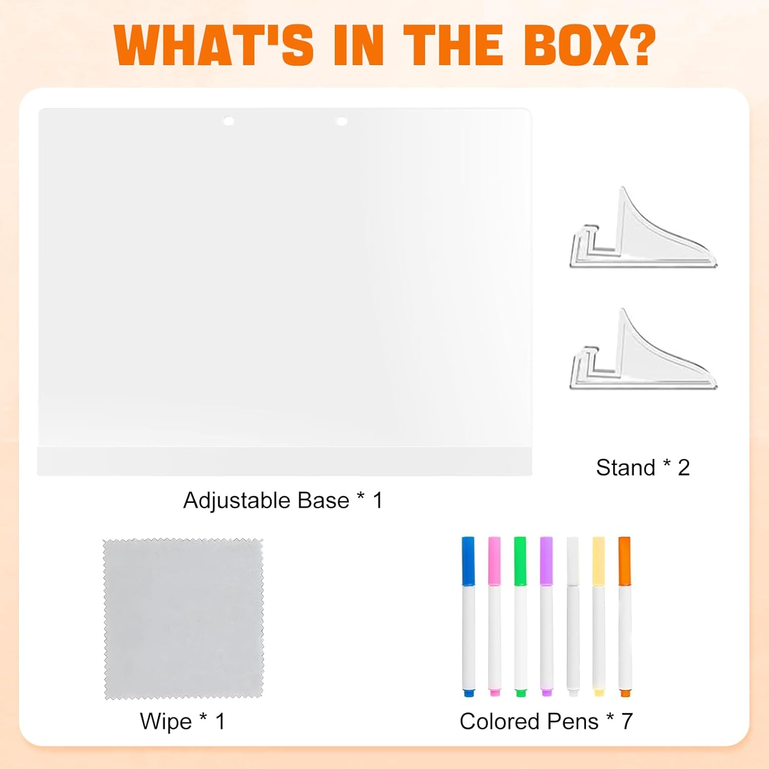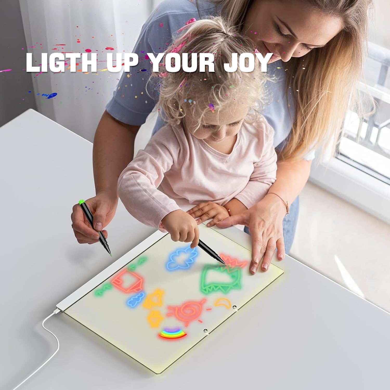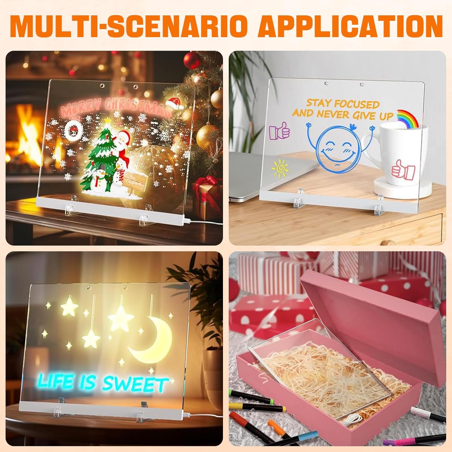【Lavagnetta LED Multifunzionale per Tutte le Età】 La lavagnetta LED è perfetta per stimolare la creatività di bambini e adulti. Ideale per disegnare, scrivere messaggi e prendere appunti, offrendo un'alternativa pratica ed eco-friendly ai dispositivi elettronici. Perfetta per bambini come lavagna da disegno LED o come lavagna per attività didattiche. 【Organizzazione Quotidiana e Pianificazione】 Gestisci le tue attività quotidiane con la lavagnetta LED colorata. Perfetta per scrivere liste di cose da fare, appunti e idee, aiuta a migliorare la produttività e la gestione del tempo. Un ottimo strumento per studenti, professionisti e famiglie. 【Effetti Luminosi Accattivanti】 Le scritte e i disegni sulla lavagna LED brillano con colori vivaci, creando effetti visivi unici e attraenti. Un'ottima scelta per evidenziare messaggi importanti o per intrattenere i bambini con effetti luminosi magici. 【Facile da Usare e da Pulire】 La lavagnetta LED è semplice da pulire: basta rimuovere la pellicola protettiva, scrivere con i pennarelli colorati inclusi e pulire con un panno o carta. Il supporto regolabile garantisce una posizione stabile per l'uso da parte dei bambini. 【Regalo Perfetto per Ogni Occasione】 Con il suo design moderno e funzionalità pratica, la lavagnetta LED è un regalo ideale per bambini, adolescenti e adulti. Perfetta per compleanni, Natale, feste di primavera o la festa dei bambini. Ottima come decorazione per uffici, camere dei bambini o reception di hotel.