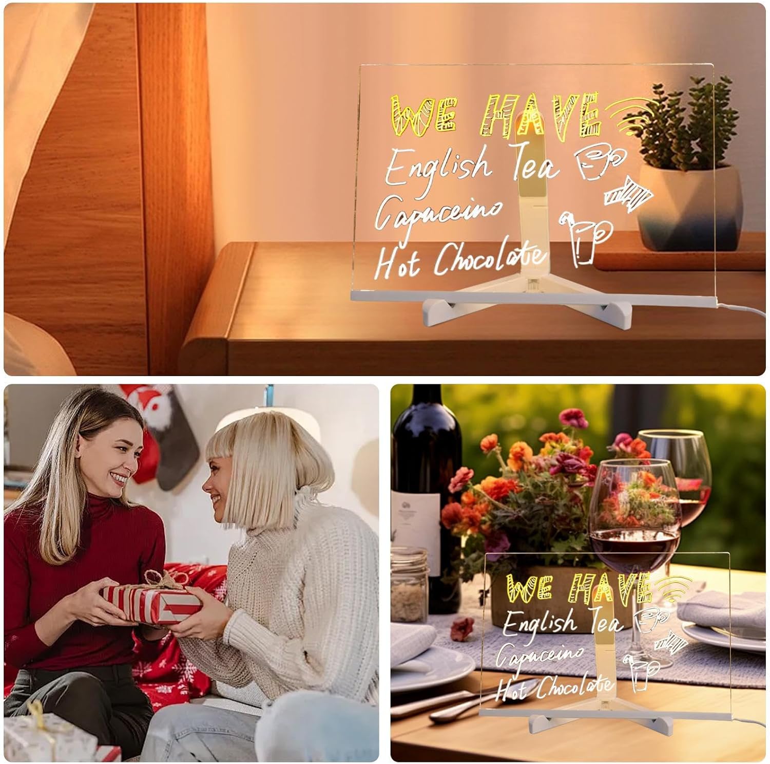 Bacheca a LED: uno strumento di scrittura versatile con una funzione di blocco note luminoso, perfetto per suscitare l'interesse dei bambini mentre esplorano scrittura, disegno e condivisione di messaggi in modo creativo Aiuto all'apprendimento coinvolgente: progettata per ispirare la creatività, questa lavagna supporta l'arte con evidenziatori, favorisce la concentrazione e fa appello a tutte le età attraverso un design affascinante e portatile, perfetto per attività di apprendimento Multiuso: ideale per ambienti commerciali, questo calendario a LED funge anche da elemento decorativo, funziona perfettamente come planner e strumento per appunti per una migliore efficienza dello spazio Lavagna riutilizzabile: realizzata per durare a lungo, questa bacheca a LED ha un design riutilizzabile che richiede poca manutenzione e facile da pulire strofinando con un panno, rendendola ideale per l'uso quotidiano coerente Idea regalo: un regalo divertente e pratico, perfetto per le occasioni festive, adatto per vacanze e compleanni, e ottimo per Natale, migliora le celebrazioni con opzioni regalo premurose