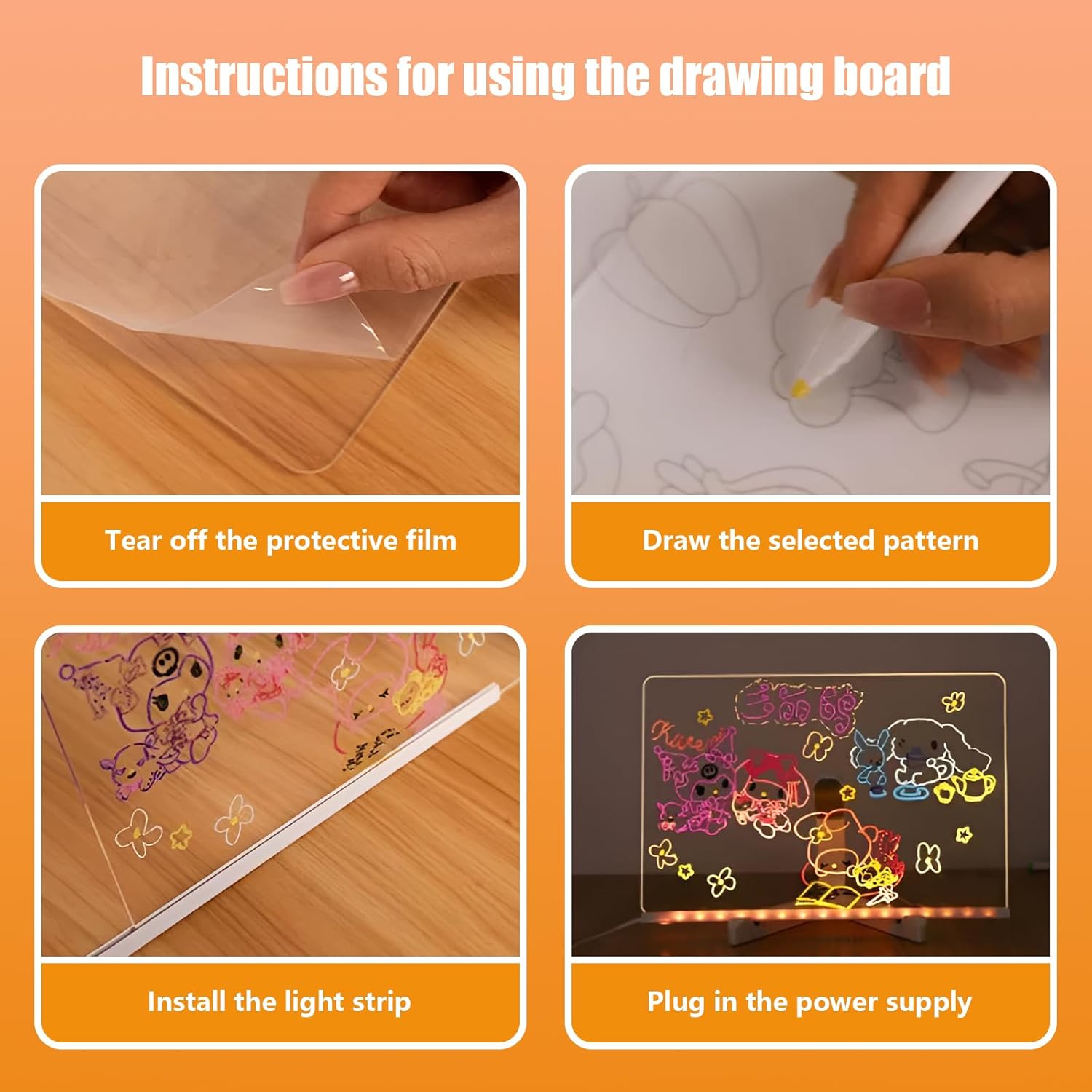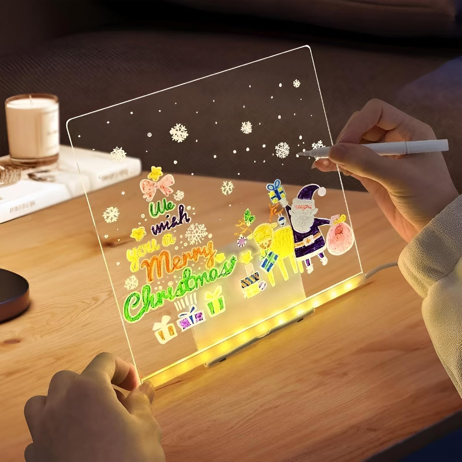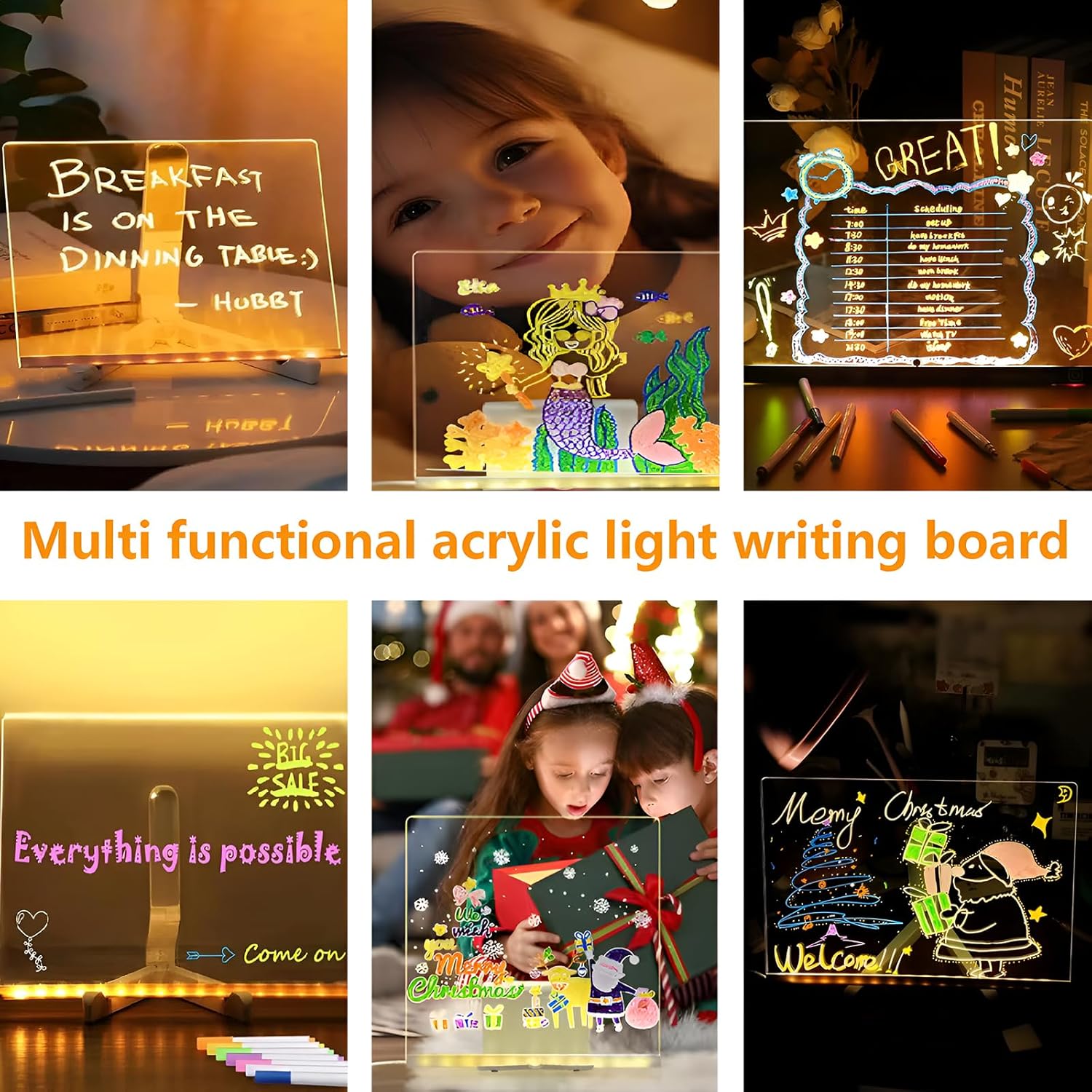 Materiale: Lavagnetta cancellabile bambini realizzato con piastre acriliche trasparenti di alta qualità, è resistente, estinto e non lascia facilmente macchie e ammaccature. Contenuto di imballaggio: l'imballaggio contiene penne cancellabili a 12 colori, 2 salviette, staffa regolabile X1, taglia 30x20cm, con spina USB a strisce di luce, adatto per pittura e graffiti. Staffa regolabile: Lavagnetta cancellabile fornito con un treppiede regolabile e può essere posizionato all'angolo giusto. Regalo fai -da -te: Porta USB, facile da usare. Le luci a LED che emettono la luce morbida rendono il dipinto più attivo e forniscono un effetto visivo unico per l'espressione creativa. Utili Multipli: lavagna luminosa per disegnare essere in camera da letto, soggiorno, bagno, bar, negozio, festa o altro tavolo da pranzo e sono ideali per la casa o l'ufficio. Puoi anche lasciare messaggi per famiglia, colleghi o amici.