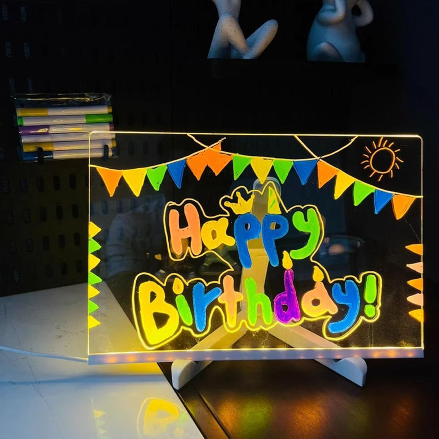Realizzato in acrilico leggero con illuminazione a LED ad alta efficienza energetica e bordi arrotondati, questo tavolo da disegno in acrilico a LED funge da tavoletta da disegno e memopad, funziona con vari pennarelli cancellabili garantendo e portabilità per gli utenti La struttura in acrilico resistente agli urti e i LED forniscono una luce calda a lungo e delicata sugli occhi che la rende pratica bacheca dal tradizionale blocco di carta per un ambiente di apprendimento dinamico e familiare Adatto per bambini dai 3 anni in su, i genitori cercano uno strumento di apprendimento interattivo e gli educatori che necessitano di forniture in classe coinvolgenti per stimolare l'immaginazione nelle lezioni d'arte o nei progetti di gruppo Illumina la creatività del tuo bambino con questa lavagna luminosa a LED, presenta superfici acriliche trasparenti che si illuminano per disegnare e scrivere chiaramente in condizioni di scarsa illuminazione, ideale per migliorare le abilità artistiche durante le attività familiari o in classe Usalo per scarabocchiare prima di andare a dormire, intrattenimento di viaggio, compiti scolastici, bacheca cancellabile per la casa o spazi commerciali come ufficio, caffè, panetteria, ristorante e boutique