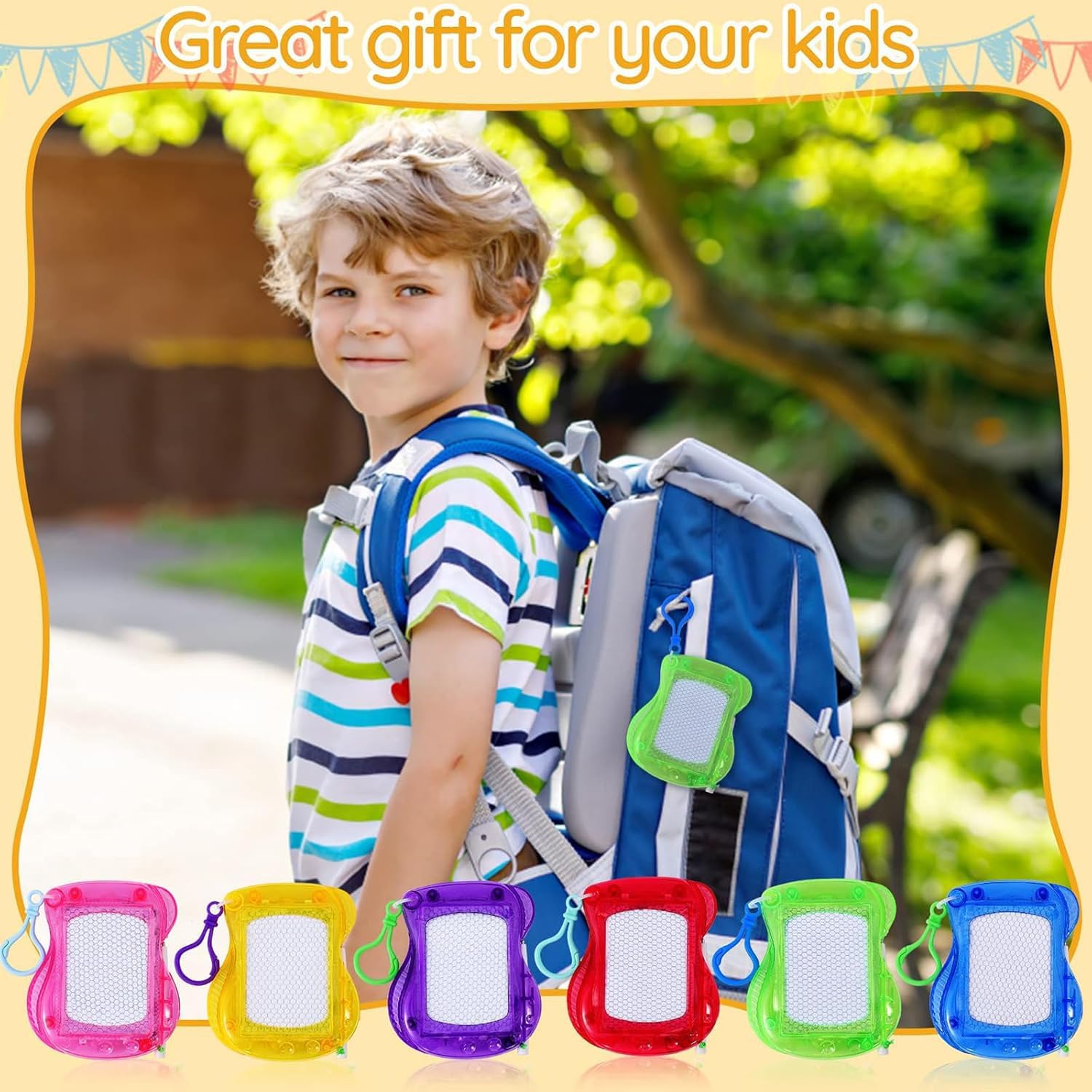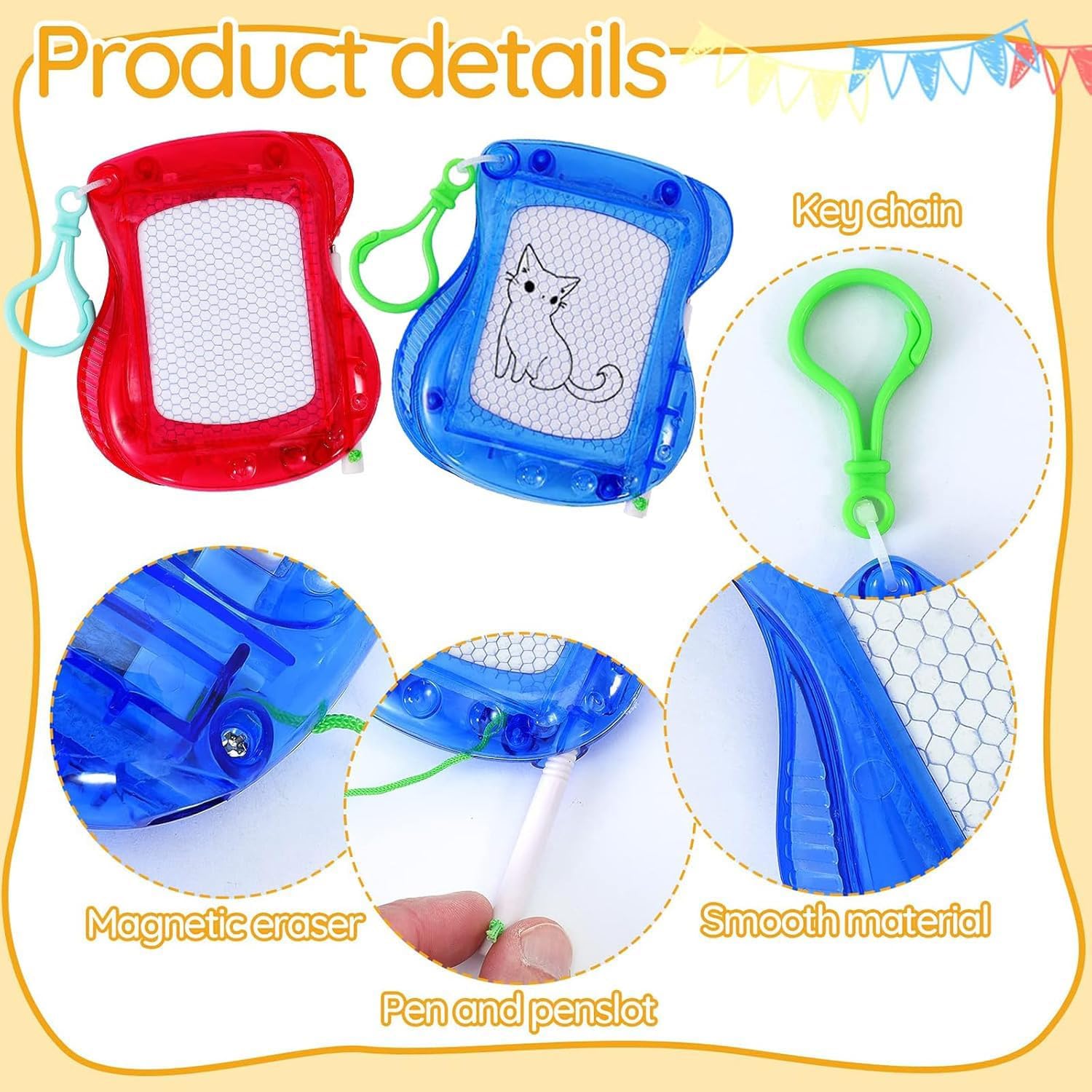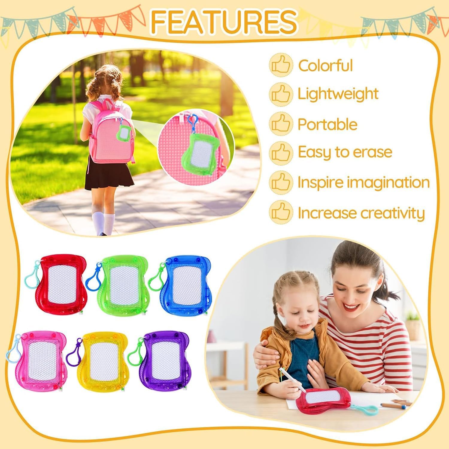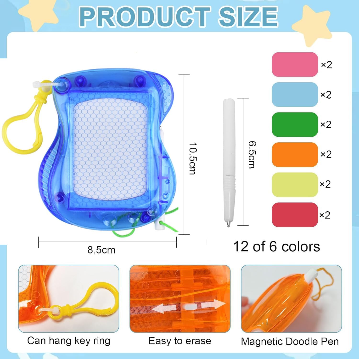 Sicuro e Durevole: I nostri prodotti sono realizzati in materiali plastici, con colori vivaci e bordi arrotondati, che sono sicuri per i bambini. Perfetto come un piccolo regalo, festa di compleanno o come una sorpresa per natale Giocattoli Educativi: Promuovere l'immaginazione dei bambini, l'attenzione e la comprensione visiva. I bambini possono disegnare a piacimento, senza sprecare carta o fare confusione, e migliorare il pensiero creativo dei bambini Formato Portatile: Ogni scheda magica per bambini misura 10 cm x 8,5 cm ed è confezionata separatamente. E ' leggero e facile da trasportare, e può essere bloccato su uno zaino come un portachiavi, adatto per le famiglie o quando si viaggia Più Colori: 12 mini piastre magnetiche, 6 diversi colori-viola, blu, verde, rosa, rosso e giallo. 2 pannelli per colore, in modo da avere abbastanza scelte per realizzare le vostre idee creative Regalo Perfetto: La nostra lavagna magica magnetica è un regalo ideale per compagni di classe, feste di compleanno, natale e babbo natale. Non solo offrono divertimento, ma stimolano anche l'immaginazione dei bambini