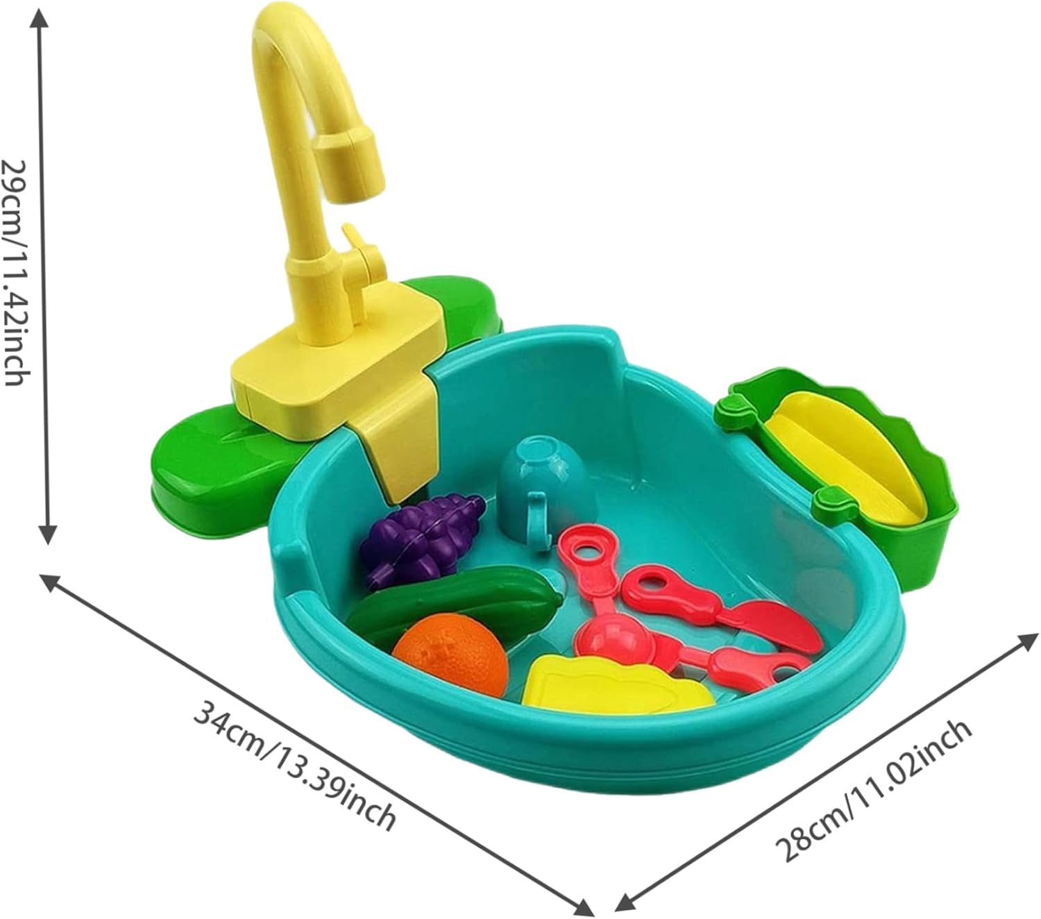 Acqua corrente: il design del rubinetto richiede 2 batterie AA (non incluse)..Versa un po' d'acqua nel lavello da gioco, apri l'interruttore del rubinetto e l'acqua circolerà. Ampia gamma di usi: il lavandino da gioco è adatto a molti tipi di gioco, come il gioco di finzione, mentre può anche essere utilizzato come giocattolo didattico per consentire ai tuoi bambini di apprendere i lavori domestici. Dimensioni adeguate: la dimensione del lavandino da gioco è di circa 29x34x28 cm/11,42x13,39x11,02 pollici, il che rende facile far giocare i bambini mentre il lavandino da gioco è molto facile da installare e pulire, il che è facile da usare. Atossico e inodore: il lavandino da gioco per bambini è realizzato in materiale plastico ecologico, rendendo il prodotto atossico e inodore, leggero e robusto, può essere utilizzato in combinazione con i giocattoli per rendere più divertente il processo di lavaggio delle verdure. Ideale per i bambini: il lavandino da gioco è un'ottima scelta per i tuoi bambini per Natale, compleanno, ecc., che può portarli felicità e consentire loro di divertirsi con genitori o amici durante le vacanze.