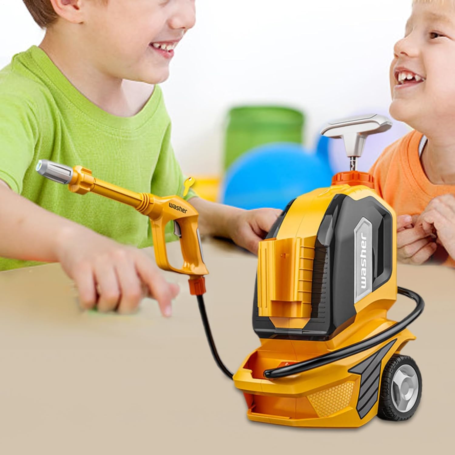 di gioco pieno di divertimento: il giocattolo per autolavaggio per bambini offre ore di divertimento grazie al controllo manuale della pressione 'acqua e due modalità di spruzzatura, capacità di nebulizzazione e volume d'acqua elevato per un'emozionante esperienza di autolavaggio che i bambini adoreranno Più divertimento per i bambini: l'adatto giocattolo per autolavaggio per bambini vanta un enorme serbatoio 'acqua da 1700 cc e richiede un riempimento meno frequente, consentendo la spruzzatura continua per ore Facilità di movimento: con un vano portaoggetti e ruote facili da spostare, questa idropulitrice per bambini offre un'esperienza semplice, consentendo ai bambini di spostare e tirare facilmente questa lavatrice giocattolo per il massimo divertimento, ovunque vadano Materiale affidabile: realizzato in materiale ABS affidabile, l'idropulitrice Kids ssCar Toy vanta una robusta idropulitrice che fornisce prestazioni affidabili e di lunga durata per ore di gioco intenso Migliora il gioco creativo: stimola l'immaginazione di figlio con questo emozionante giocattolo interattivo per autolavaggio per bambini, adatto per alimentare la sua creatività durante il gioco. Condividi il divertimento con amici e familiari durante la Giornata dei bambini, i compleanni o le celebrazioni annuali