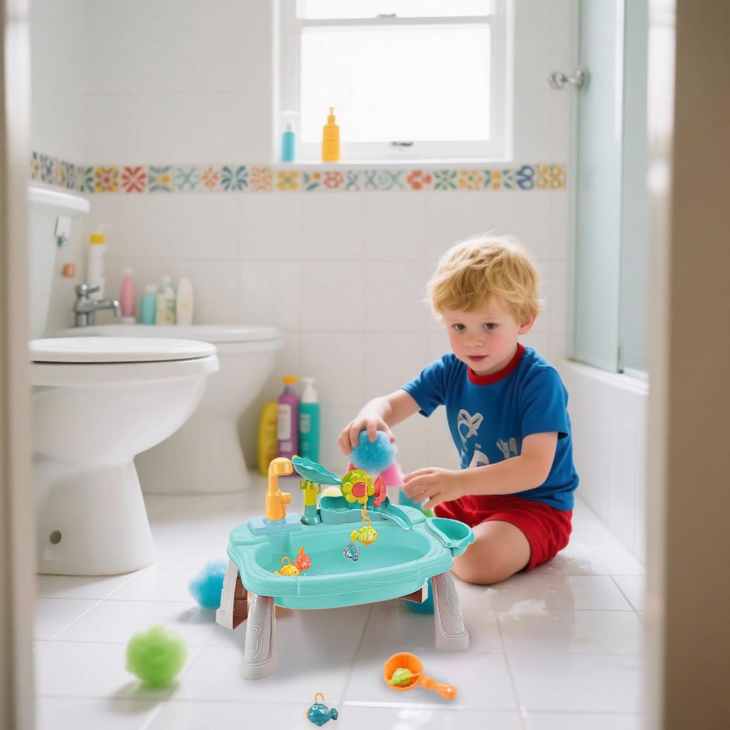 Protezione per bambini: giocattolo con bordi arrotondati, protezione anti-perdite e parti elettriche sigillate per prevenire incidenti durante il gioco creativo con l'acqua, consentendo ai bambini di divertirsi in totale sicurezza. Funzioni integrate:La struttura componibile con feedback tattile potenzia la cognizione spaziale, l'allenamento della coordinazione occhio-mano e il ragionamento logico in un design multiuso per apprendimento pratico. Strumento Gioco Simbolico Creativo: Per simulare il vero processo di lavaggio piatti, questo lavello giocattolo include un dispositivo elettrico integrato e un design dettagliato della scena, consentendo ai bambini di migliorare le capacità manuali mentre esplorano scenari creativi che rendono il gioco di finzione sia divertente che arricchente. Apprendimento Giocoso: Dispositivo idrico esplorativo abilita role-play con lavaggio verdure, giochetto di e ruota floreale per esperienze interattive che sviluppano capacità cognitive Regolazione Intuitiva: Modifica semplicemente il flusso idrico con rubinetto regolabile, attivando ricircolo continuo e ruota ad acqua integrata per esperienze interattive e adattabili