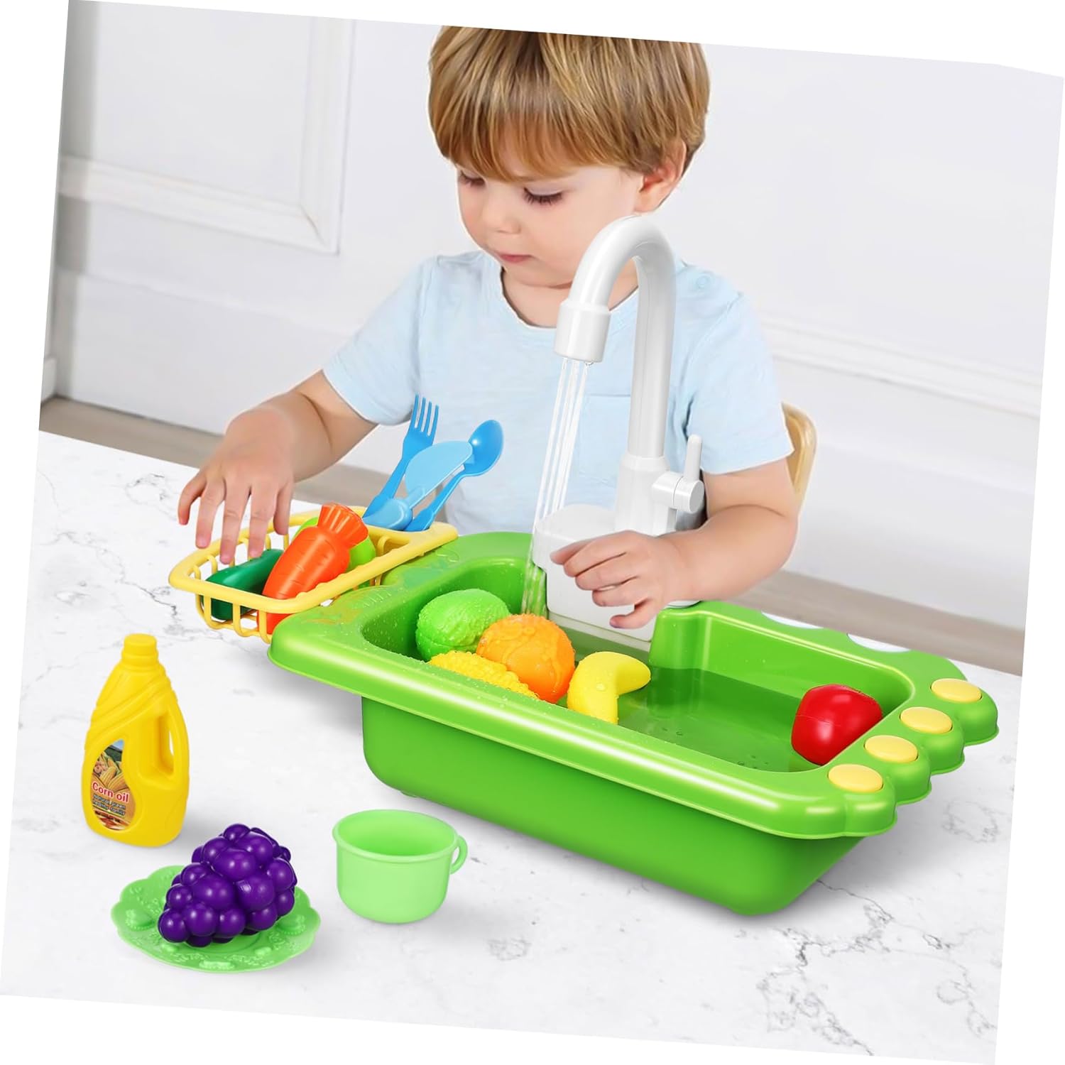 Facile da usare: questo lavello per bambini è semplice e facile da usare, consente di imparare a lavare i piatti e sviluppare abilità pratiche, lavello per bambini, lavello da gioco per bambini con acqua corrente Sicuro da usare: questo lavello da gioco con acqua corrente è progettato pensando ai bambini, con bordi arrotondati e superficie liscia, cucina per giochi di ruolo per bambini, lavello con acqua corrente Cosa divertente: questo lavello per bambini con acqua non è solo un aiuto per l'apprendimento, ma anche un divertimento per farti divertire per ore Questo lavello da gioco è realizzato con materiali durevoli in modo che possa resistere all'usura dell'uso regolare e durare a lungo. Giocattolo lavello con acqua corrente, lavello con acqua corrente per compatto e portatile: questo lavello è piccolo e portatile, facile da riporre e adatto all'uso in qualsiasi casa. È adatto come lavandino da gioco per bambini o come lavandino funzionante per bambini