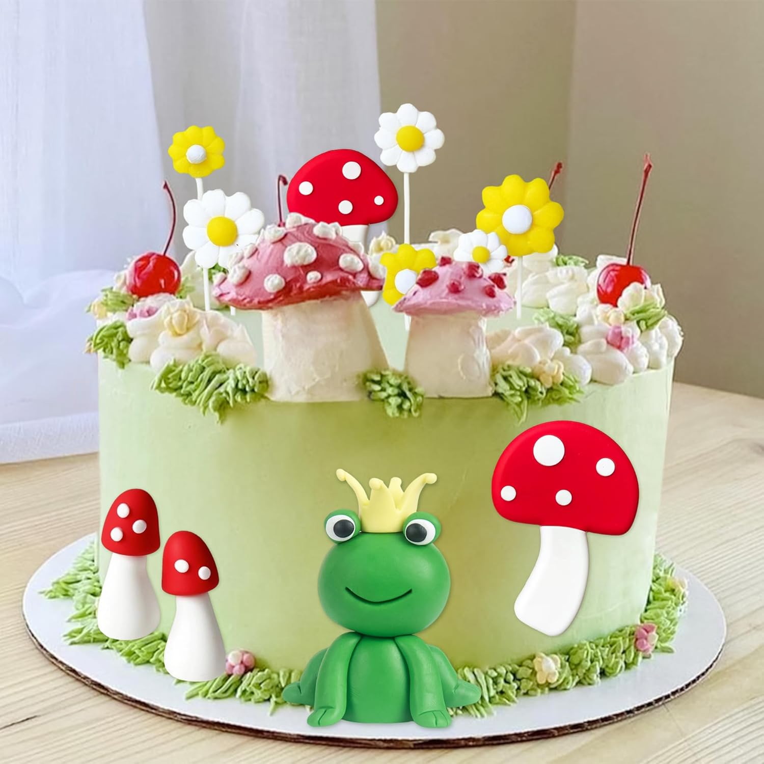 I prodotti includono: 6 topper per torta con funghi, 6 topper per torta con margherite, 1 topper per torta con rana. Il ricco topper per torta con rana soddisferà le tue esigenze e sarà una bellissima decorazione per la tua torta. Il cake topper Frog Princess è progettato in tema giardino con colori vivaci e unici, che renderanno la tua torta ancora più bella. La decorazione della torta con le rane aggiungerà fascino alla tua festa La decorazione della torta con le margherite non può essere utilizzata solo per decorare le tue torte e creare un'atmosfera calda e allegra, ma può anche essere utilizzata per decorare gelati, biscotti, muffin, salumi, formaggi o dessert che ti piacciono Le decorazioni per feste in giardino sono adatte per decorare torte per feste di compleanno, baby shower, feste estive, feste in giardino e molte altre occasioni, porteranno divertimento alla tua festa Se hai domande sul prodotto, per favore fammi sapere, ti auguro una buona giornata