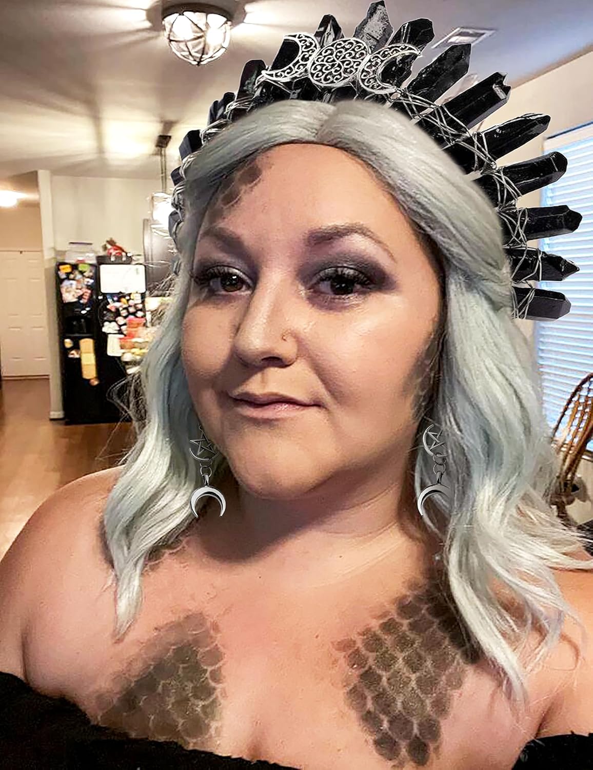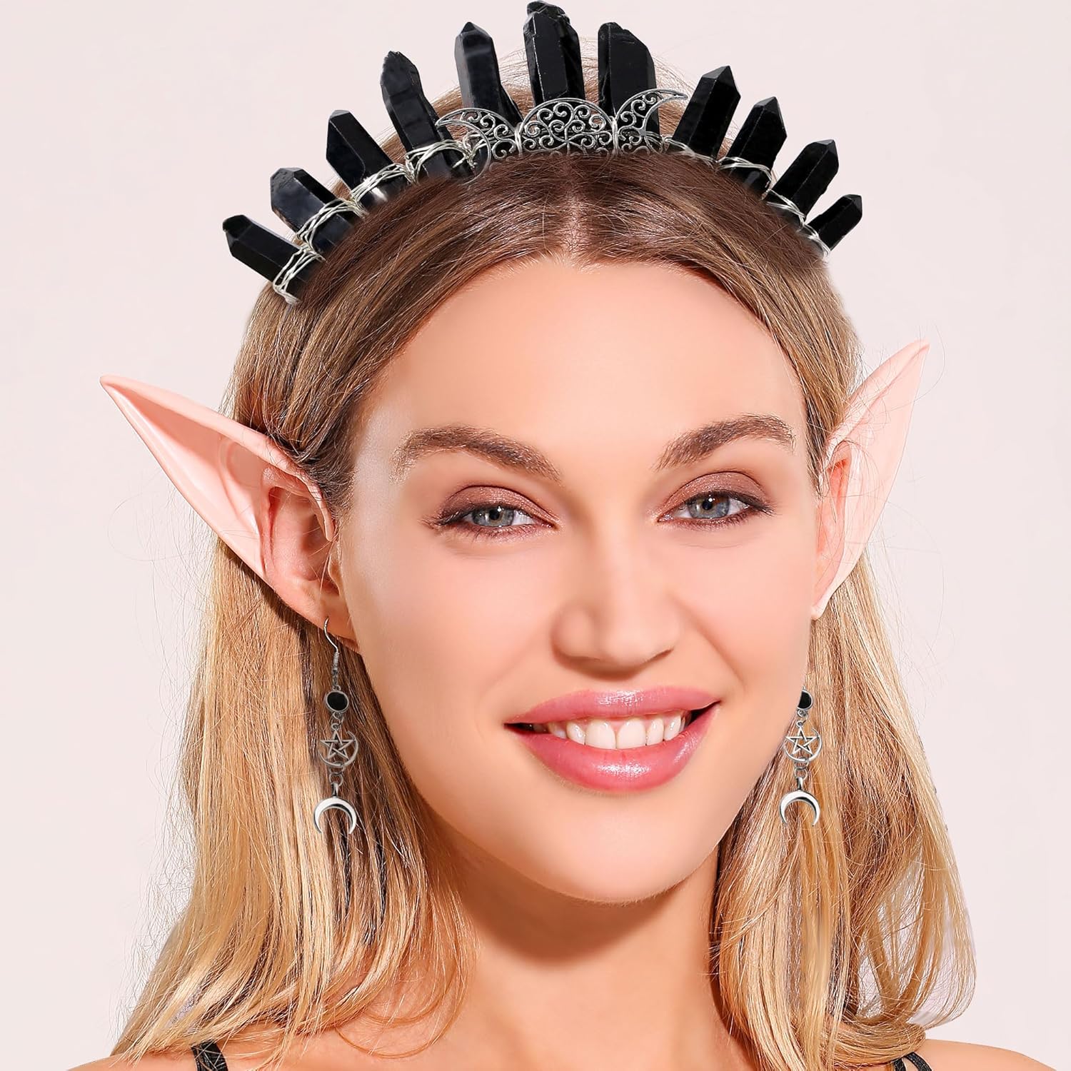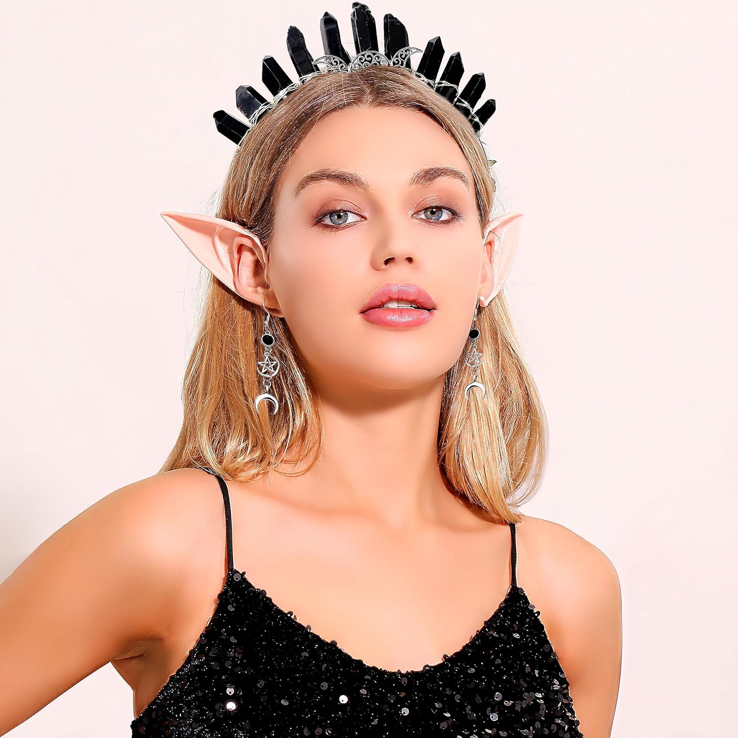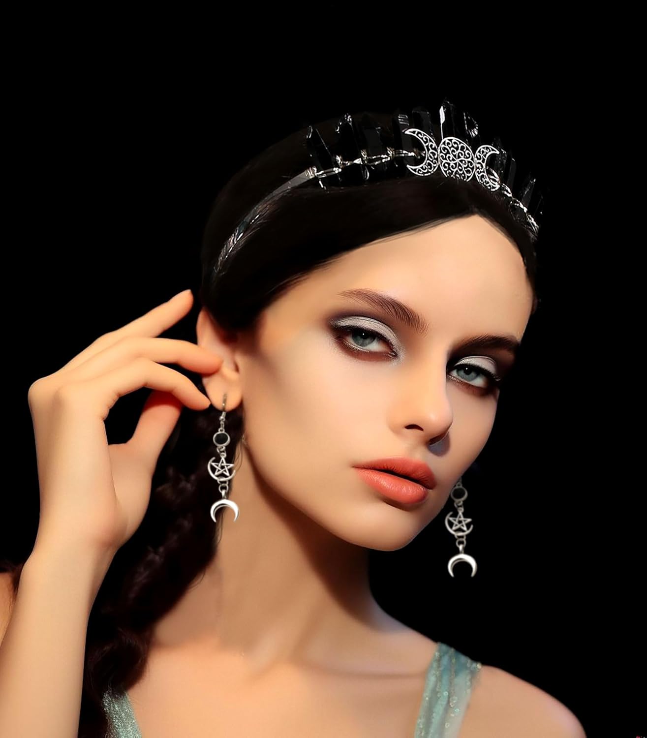 Lavare solo a mano, si otterrà: 1 x luna nera Corona Headband, 2 x orecchini luna. Per adulti. Questo copricapo aureolato da dea è per chi sta affrontando un nuovo capitolo della propria vita, che sia un cambiamento di carriera o un nuovo percorso. Chiunque indossi questa corona riceverà la protezione necessaria per affrontare questa fantastica transizione. Costume per Halloween, Natale, Cosplay, Carnevale, Festa di compleanno, Masquerade, Party, Club o altri festival. Se avete qualche problema, per favore fatemi sapere