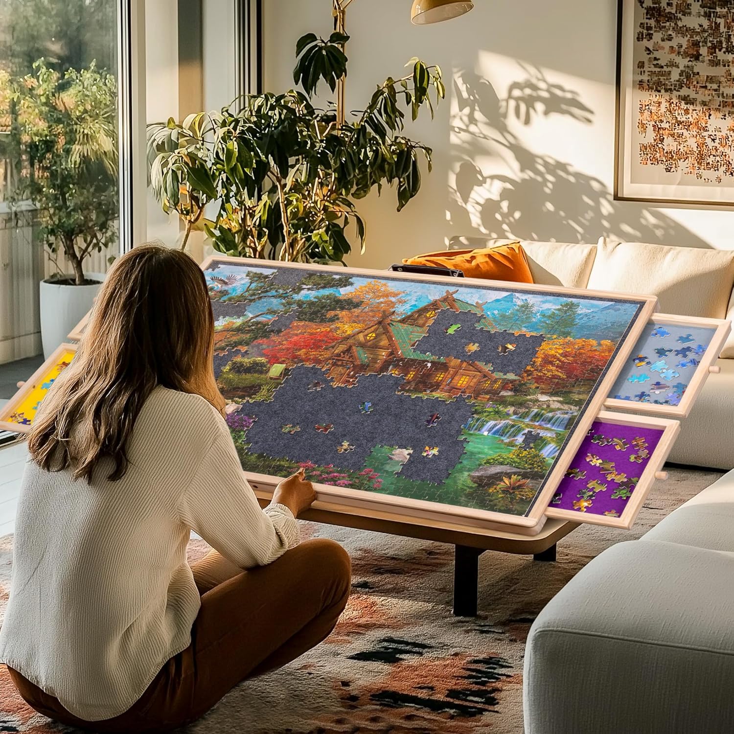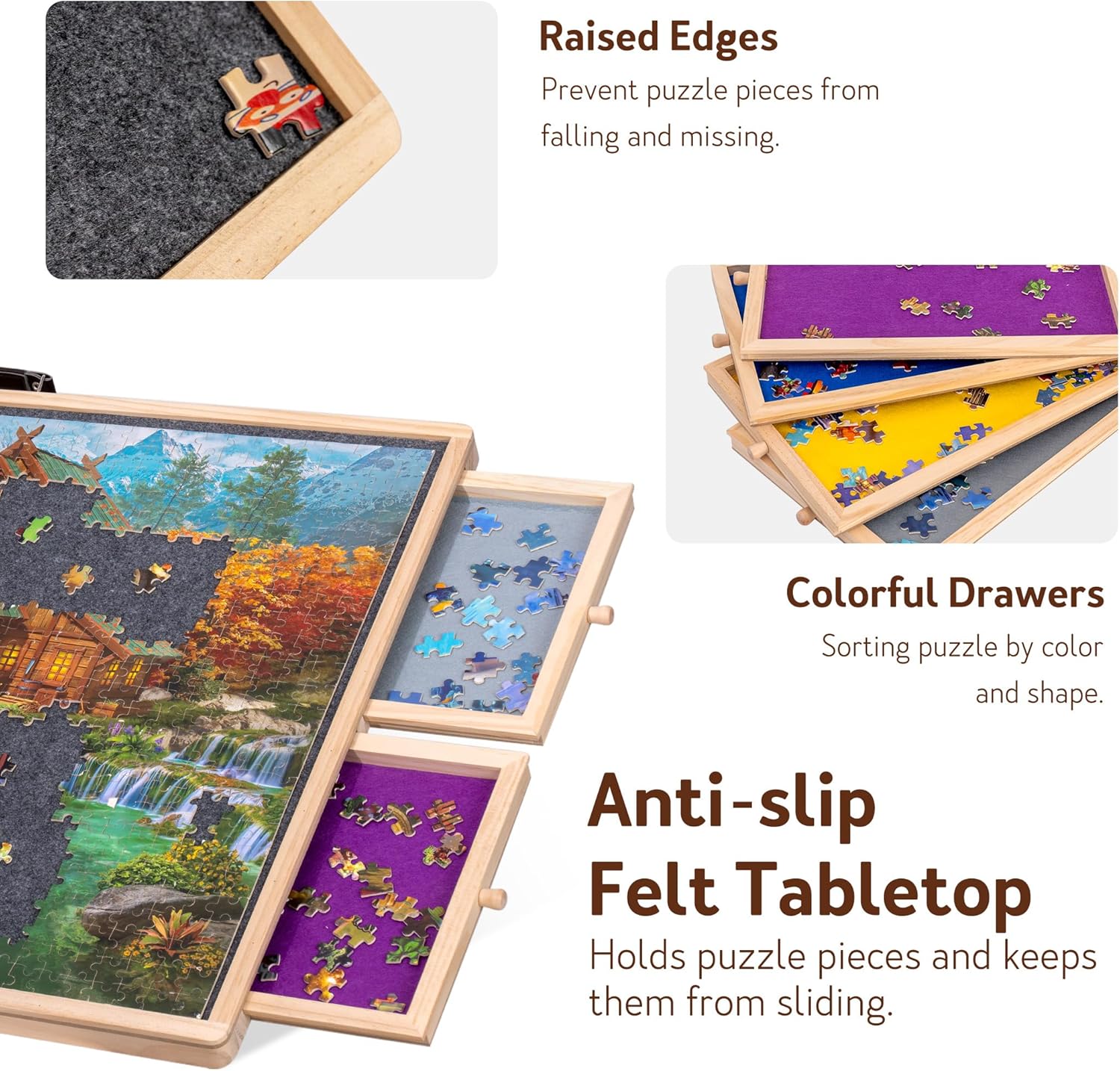 Tavola puzzle regolabile Lavievert può essere utilizzata sia su una superficie piatta o impostata su un angolo di inclinazione (0° ~ 25°) per aiutare a stabilizzare la stabilità nel collo o nella pressione accumulata sul retro, permettendoti di goderti il divertimento dei puzzle. Il supporto di supporto è fissato con cuscinetti antiscivolo per evitare graffi sul tavolo. 4 ruote universali: progettate con 4 ruote universali integrate per movimenti fluidi e facile accesso ai pezzi puzzle sulle superfici piatte. When you want to take a break, just slide the puzzle table under the divano or bed for easy preservation of your unfinished game. Translucent Sheet Protector – Enclosed with a translucent sheet protector with which you can guard your unfinished game against moisture or naughty pets. Angoli rialzati anche stop puzzle da scivolamenti e mancanze. Quindi progettato con un manico in PU per un facile trasporto. 4 disegni colorati – 4 filamenti integrati sono foderati con tessuto in feltro colorato per garantire una maggiore efficienza di gioco rendendo facile da ordinare pezzi di puzzle inutilizzati per colore o forma. I forti magneti sono employed to ensure strong closure, garantendo un facile trasporto. Dotato di 4 pomelli in legno massiccio e 4 manici con cordino per opzioni di utilizzo alternative. 1, 000 pezzi puzzle Board – Il tavolo è coperto con tessuto in feltro grigio argento per score una facile distinzione dei pezzi di puzzle in diversi colori su di esso e per garantire una sufficiente attrito per evitare che i pezzi del puzzle scivolino fuori. Con una dimensione di 31 × 21,3 in (79 × 54 cm), il nostro prodotto si adatta a più di 1, 000 giochi di puzzle jigsaw puzzle, la dimensione del design principale che incontra la maggior parte delle vostre esigenze.