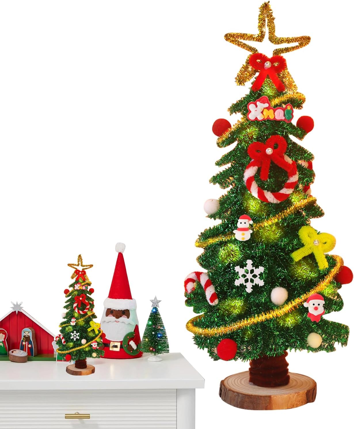 Costruzione Robusta Decorazioni: Queste decorazioni natalizie sono costruite con materiali resistenti, inclusa una fondazione in legno robusta, offrendo prestazioni affidabili e usabilità prolungata durante le stagioni festive ripetute. La loro costruzione garantisce che possano essere utilizzate anno dopo anno senza di usura, preservando la bellezza e l'integrità per display natalizi sempre perfetti e pronti per l'uso annuale senza preoccupazioni. Sviluppo di Abilità Creative: Questi lavoretti natalizi forniscono opportunità per l'espressione artistica e affinano le abilità motorie fini, permettendo ai bambini di divertirsi con compiti creativi pratici utilizzando scovolini. In contesti festivi, queste attività suscitano gioia e innovazione, incoraggiando la sperimentazione e la manualità in modo giocoso ed educativo. Regalo Ideale: Christmas Craft incoraggia i bambini a esplorare la loro creatività realizzando decorazioni a tema natalizio, offrendo ore di divertimento mentre coltivano un apprezzamento per l'artistico fatto a mano, aggiungendo charme alle celebrazioni familiari questo Natale. L'attività pratica promuove lo sviluppo della fantasia e della manualità, rendendo ogni decorazione un elemento unico per abbellire la casa e vivere appieno la magia delle feste. Creatore di Atmosfera : I kit di artigianato natalizio presentano un design da centrotavola illuminato che crea un'atmosfera natalizia calda e accogliente, ideale per display festivi in ambienti domestici e camere da letto. Esaltano il fascino delle decorazioni illuminate a stringa durante la stagione delle feste, contribuendo a un'ambiente rilassante e festoso che invita alla celebrazione e al relax, con una luce soffusa che aggiunge carattere agli spazi quotidiani. Usi Polivalenti e Pratici: Questi lavoretti natalizi servono come un coinvolgente progetto di lavoretti per la classe scolastica e una soluzione di divertimento di gruppo per feste natalizie, consentendo alle famiglie di godere del genitore-figlio durante le riunioni mentre esplorano applicazioni versatili non decorative come giochi di ruolo o giochi interattivi, promuovendo esperienze divertenti e educative che si adattano a diverse occasioni e necessità quotidiane.