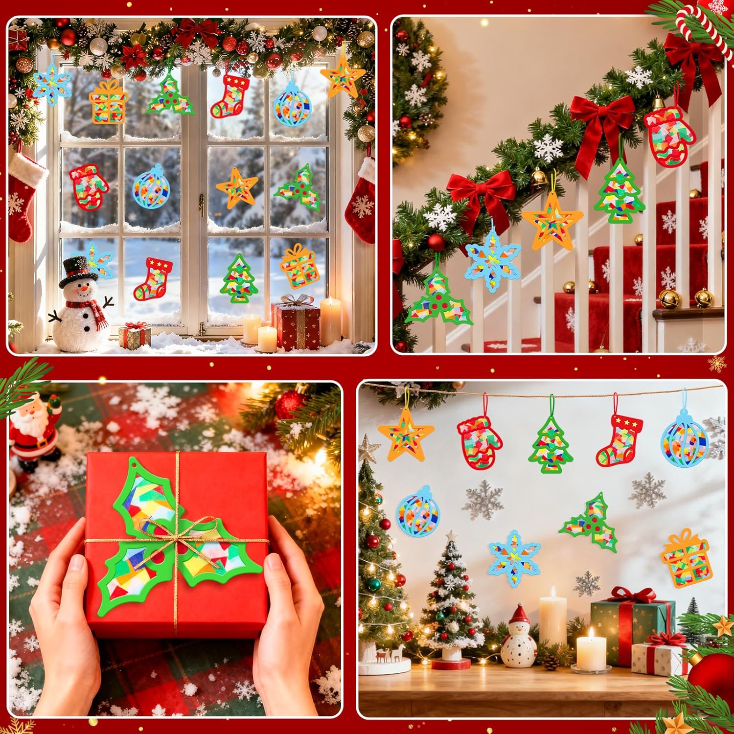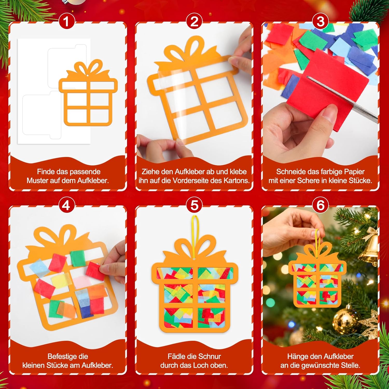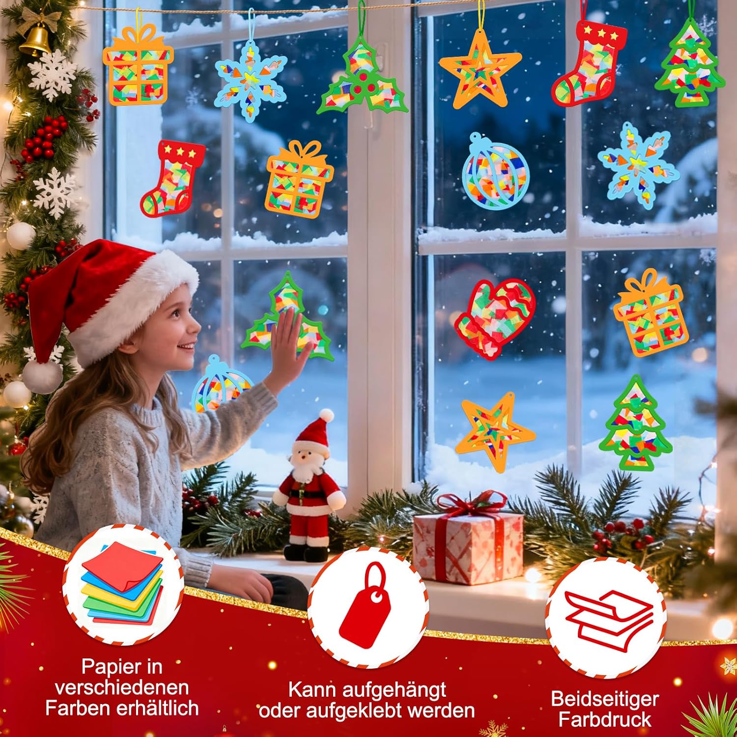 【Lavoretti creativi per bambini natale】Questo set decorazioni natalizie bambini include 24 adesivi colorati, 12 adesivi trasferibili bianchi, 7 diversi colori di carta colorata, 24 fili sospesi e 1 spago lungo. Offriamo una varietà di motivi natalizi adatti alle tue esigenze, permettendoti di goderti ore di divertimento creativo natalizio con la famiglia e gli amici! 【Facile da usare】Il nostro lavoretti di natale per bambini è realizzato con materiali di alta qualità e sicuri per i bambini. Questo decorazioni natalizie per bambini è facile da usare e non richiede materiali aggiuntivi. Puoi facilmente combinare colori e forme per creare. È molto adatto per il gioco dei bambini o da usare come decorazione murale. 【Giocattoli educativi】lavoretti natale kit fai da te bambini permette ai bambini di liberare la loro creatività e immaginazione, migliorando le loro capacità creative.migliora anche il riconoscimento dei colori e migliora la loro concentrazione, memoria e pazienza. 【Decorazione natalizia perfetta】Questo colorato kit lavoretti natale è molto adatto per decorazioni natalizie interne ed esterne.kit palline di natale fai da te contiene elementi natalizi classici come palline di Natale, alberi di Natale, calze di Natale, ecc. Appenderli alle finestre e lasciare entrare la luce del sole può creare un'esperienza visiva mozzafiato.lavoretti natale può anche essere appeso a ghirlande di alberi di Natale e altre decorazioni. 【Usi multipli】Questo decorazioni natale è adatto ai bambini dai 3 anni in su per giocare e creare. Questo kit natale è perfetto per attività artigianali scolastiche, feste di Natale, regali di Natale, lavoretti invernali, decorazioni natalizie per finestre, bomboniere e altro ancora. Aggiungerà una calda atmosfera natalizia alla tua casa!