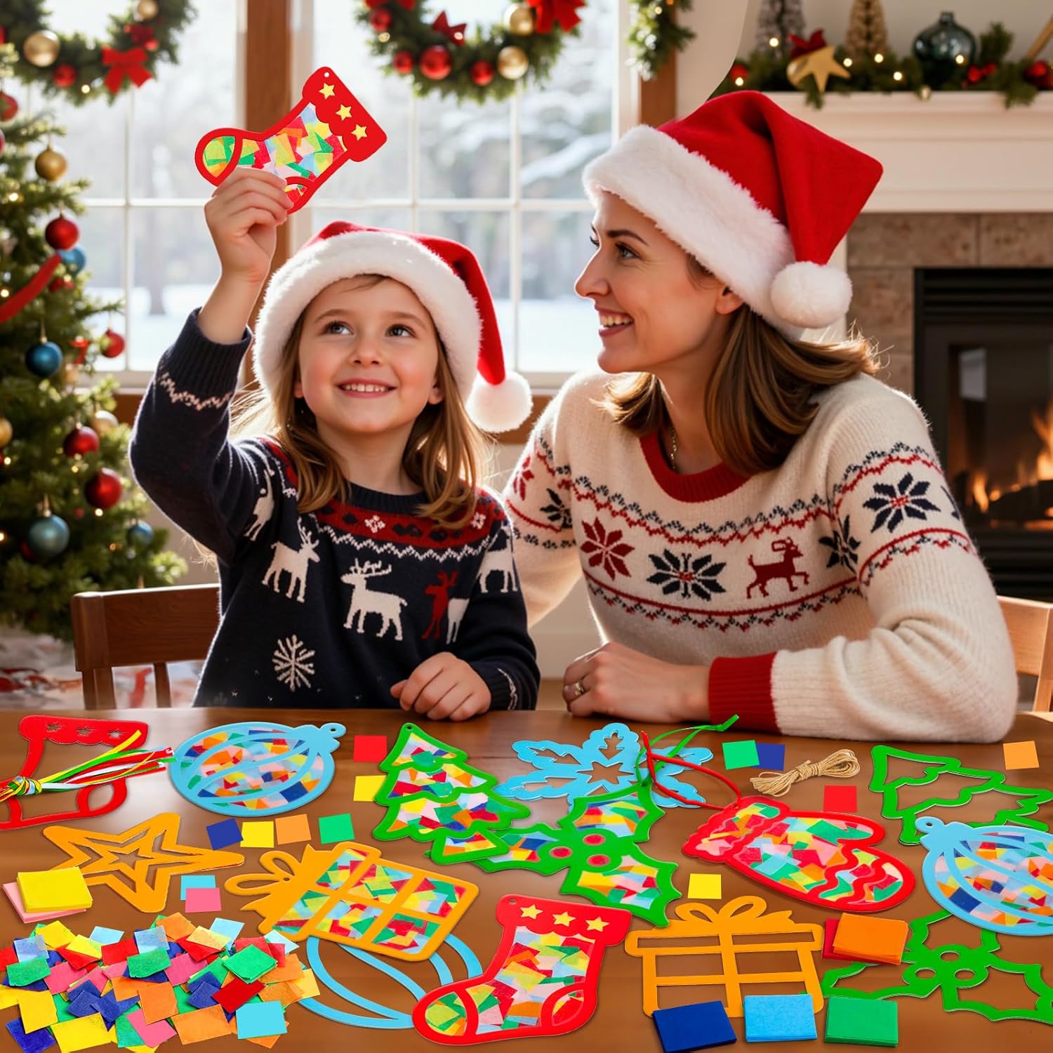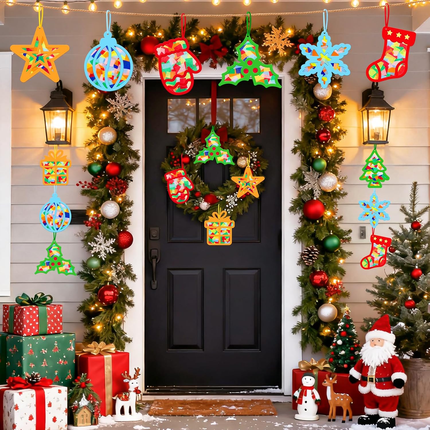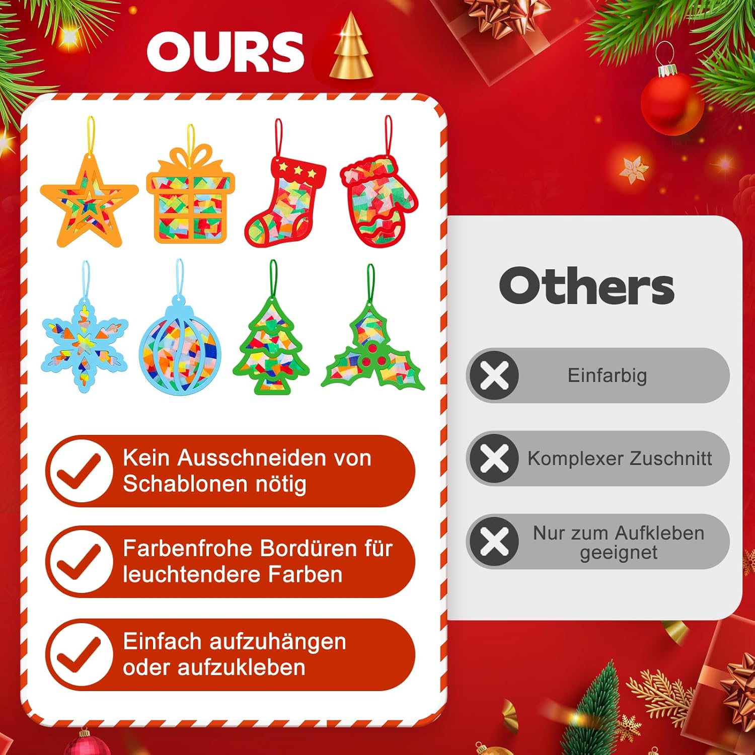 【Lavoretti creativi per bambini natale】Questo set decorazioni natalizie bambini include 24 adesivi colorati, 12 adesivi trasferibili bianchi, 7 diversi colori di carta colorata, 24 fili sospesi e 1 spago lungo. Offriamo una varietà di motivi natalizi adatti alle tue esigenze, permettendoti di goderti ore di divertimento creativo natalizio con la famiglia e gli amici! 【Facile da usare】Il nostro lavoretti di natale per bambini è realizzato con materiali di alta qualità e sicuri per i bambini. Questo decorazioni natalizie per bambini è facile da usare e non richiede materiali aggiuntivi. Puoi facilmente combinare colori e forme per creare. È molto adatto per il gioco dei bambini o da usare come decorazione murale. 【Giocattoli educativi】lavoretti natale kit fai da te bambini permette ai bambini di liberare la loro creatività e immaginazione, migliorando le loro capacità creative.migliora anche il riconoscimento dei colori e migliora la loro concentrazione, memoria e pazienza. 【Decorazione natalizia perfetta】Questo colorato kit lavoretti natale è molto adatto per decorazioni natalizie interne ed esterne.kit palline di natale fai da te contiene elementi natalizi classici come palline di Natale, alberi di Natale, calze di Natale, ecc. Appenderli alle finestre e lasciare entrare la luce del sole può creare un'esperienza visiva mozzafiato.lavoretti natale può anche essere appeso a ghirlande di alberi di Natale e altre decorazioni. 【Usi multipli】Questo decorazioni natale è adatto ai bambini dai 3 anni in su per giocare e creare. Questo kit natale è perfetto per attività artigianali scolastiche, feste di Natale, regali di Natale, lavoretti invernali, decorazioni natalizie per finestre, bomboniere e altro ancora. Aggiungerà una calda atmosfera natalizia alla tua casa!