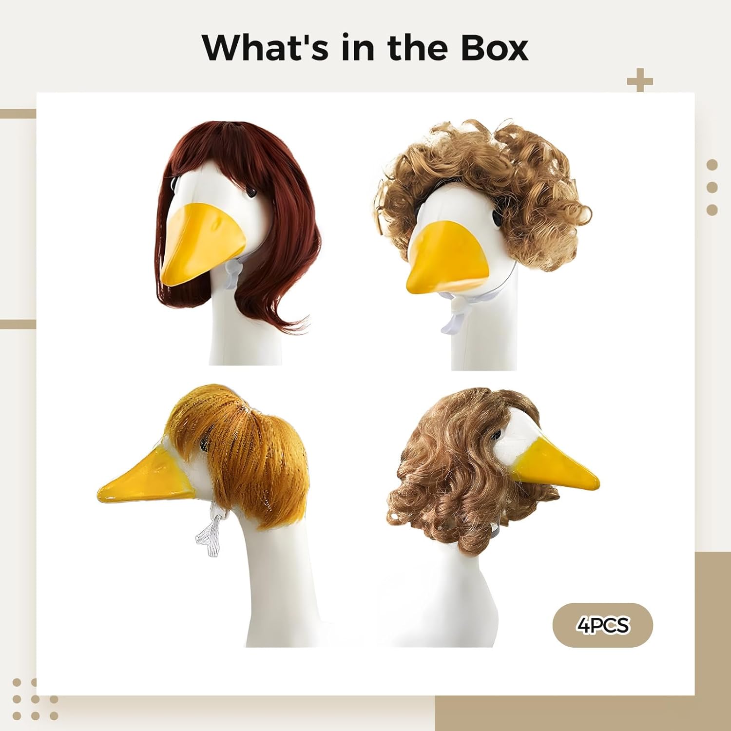 Accattivante: quattro parrucche luminose in rosso, oro, nero e marrone miglioreranno l'arredamento del portico; conferisce all'oca decorativa la sua personalità, ravvivando l'area esterna Variazione di stili: queste parrucche consentono alle decorazioni d'oca di essere personalizzate con varie lunghezze; aggiungendo un tocco speciale alle impostazioni delle vacanze da Halloween a Natale Spirito festivo: le parrucche d'oca del portico sono ideali per vestire figure esterne per Halloween, Pasqua o Natale; cambia il design per adattarsi a temi diversi Resistente alle intemperie: queste parrucche si adattano a diverse dimensioni di figura d'oca grazie alla loro cinghia regolabile unica; fissarle con lenire per una vestibilità aderente che non si stacca in qualsiasi condizione atmosferica Materiale sintetico: realizzate con fibre sintetiche ad alta temperatura; queste parrucche sono forti e resistenti alle intemperie, mantenendo il loro colore vibrante e la loro forma in condizioni di bagnato o asciutto