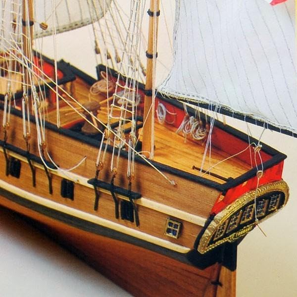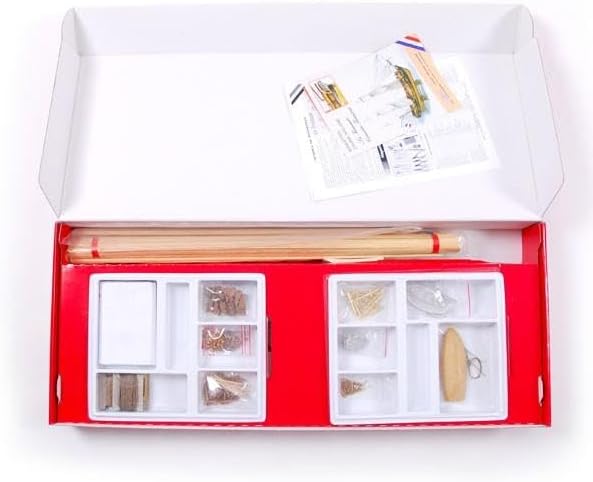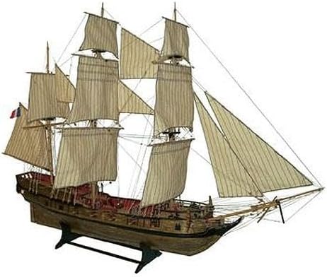 Descrizione del prodotto: modellino di barca da assemblare 1/50esimo linea patrimonio, struttura in legno, taglio al getto d' acqua, attrezzatura di ponte completa, pianta e manuale,