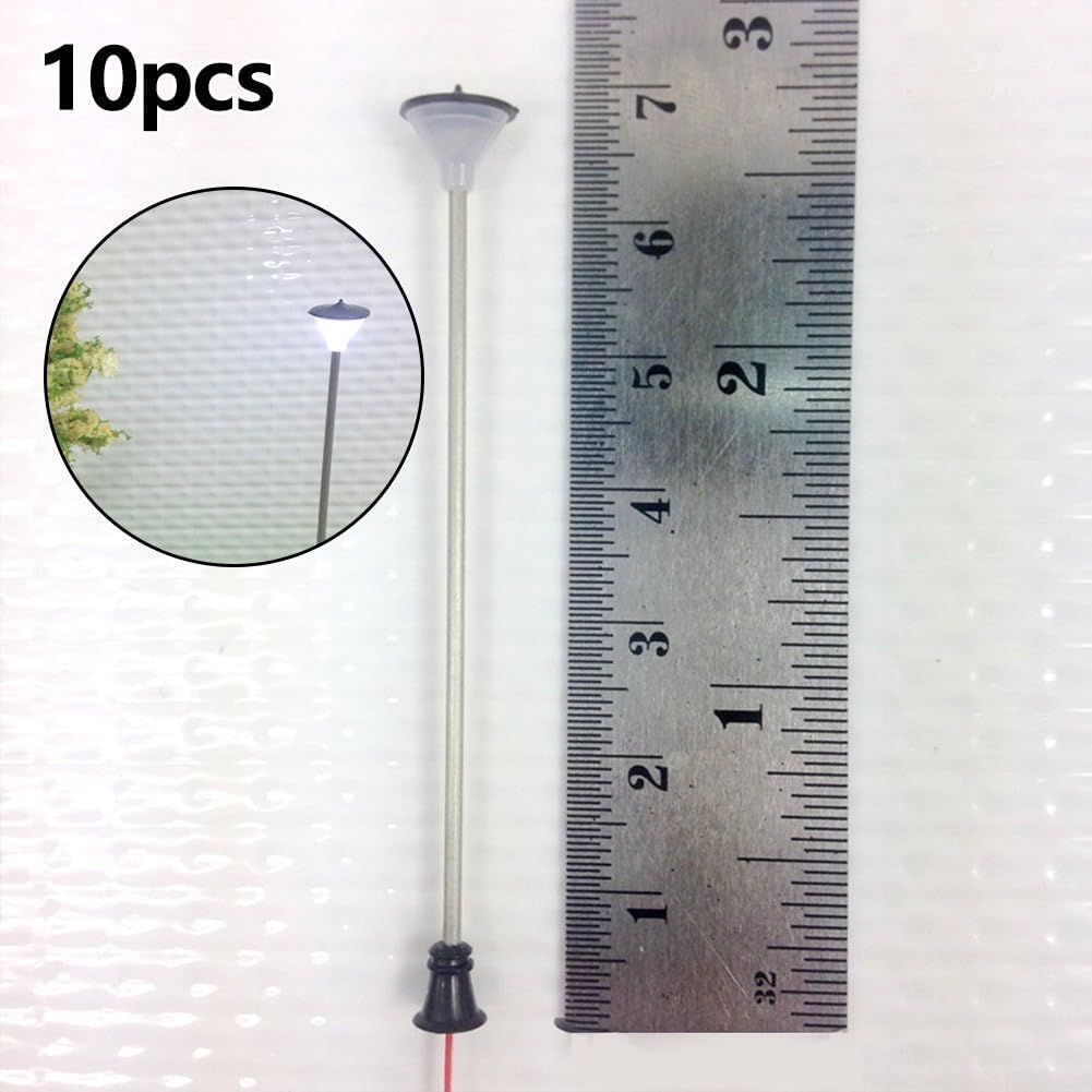 Luce stradale a LED per layout del modello: illumina il tuo modellino ferroviario o giardino con questi lampioni stradali a LED bianchi in scala 1:100. Sono progettati per modelli architettonici di tavoli di sabbia, decorazioni da giardino, paesaggi e altro ancora. Ogni confezione include 10 luci da giardino a testa singola realizzate con materiale ABS. 【 e uso 】 Questi lampioni a LED sono completi di fili e LED, rendendo l'installazione senza problemi. collegarli a una fonte di alimentazione con una tensione di 6V o 3V e possono essere facilmente illuminati. Usi: perfetto per modelli di scena, decorazione di micro-paesaggi di muschio, materiali ecologici fai da te per bottiglie e piccoli ornamenti decorativi. Questi lampioni aggiungono un tocco realistico al layout del tuo modello o migliorano l'atmosfera del tuo giardino. 【 e affidabili】Realizzate con LED di lunga durata, queste luci modello offrono una qualità eccezionale e una fonte di illuminazione stabile. Sono costruiti per resistere all'uso continuo e ad un'illuminazione luminosa e uniforme. Migliora il tuo modello o giardino: con il loro design realistico e le prestazioni affidabili, questi lampioni a LED sono la scelta per gli appassionati di modellismo ferroviario, hobbisti e appassionati di giardinaggio. Migliora istantaneamente l'aspetto visivo del tuo giardino con queste luci a LED.