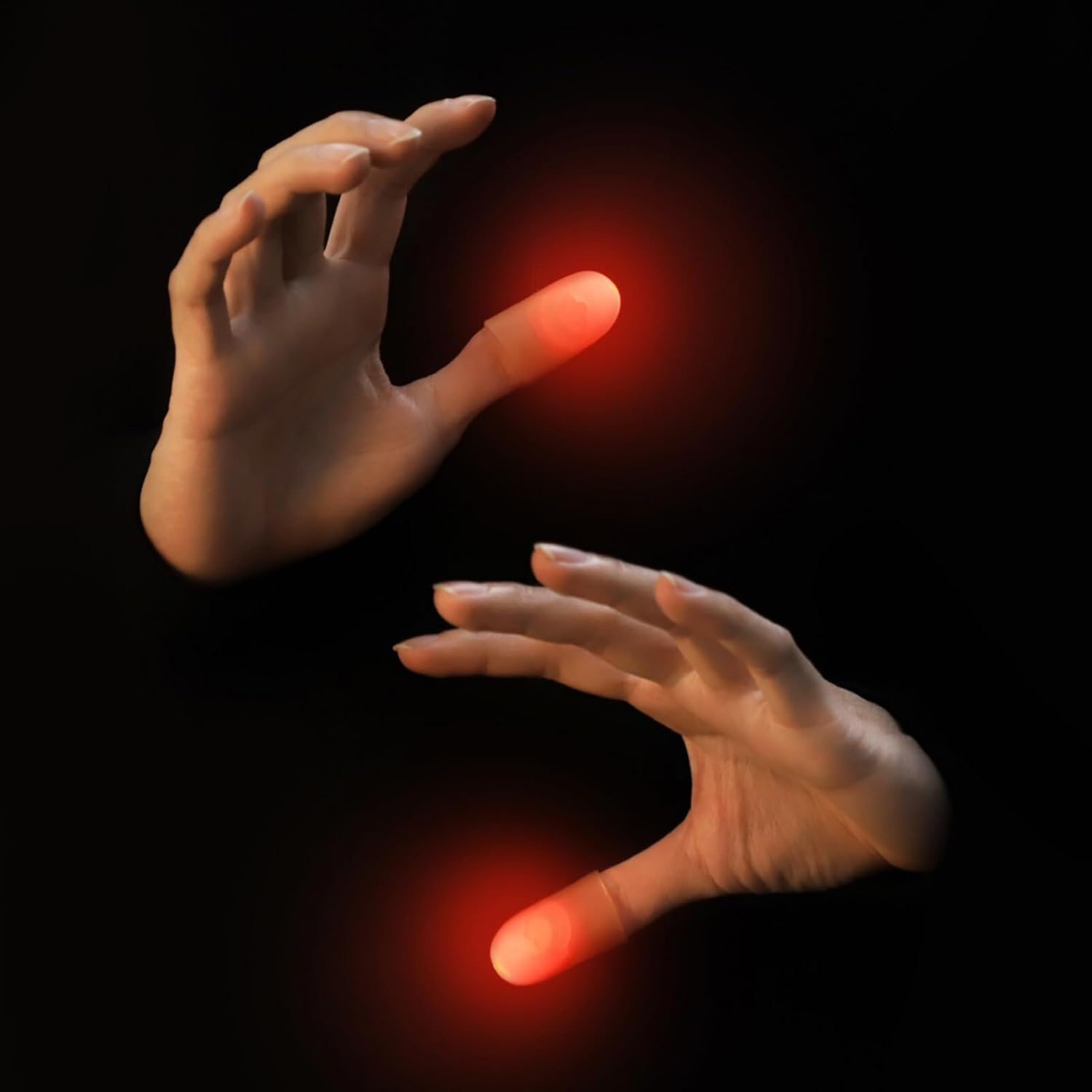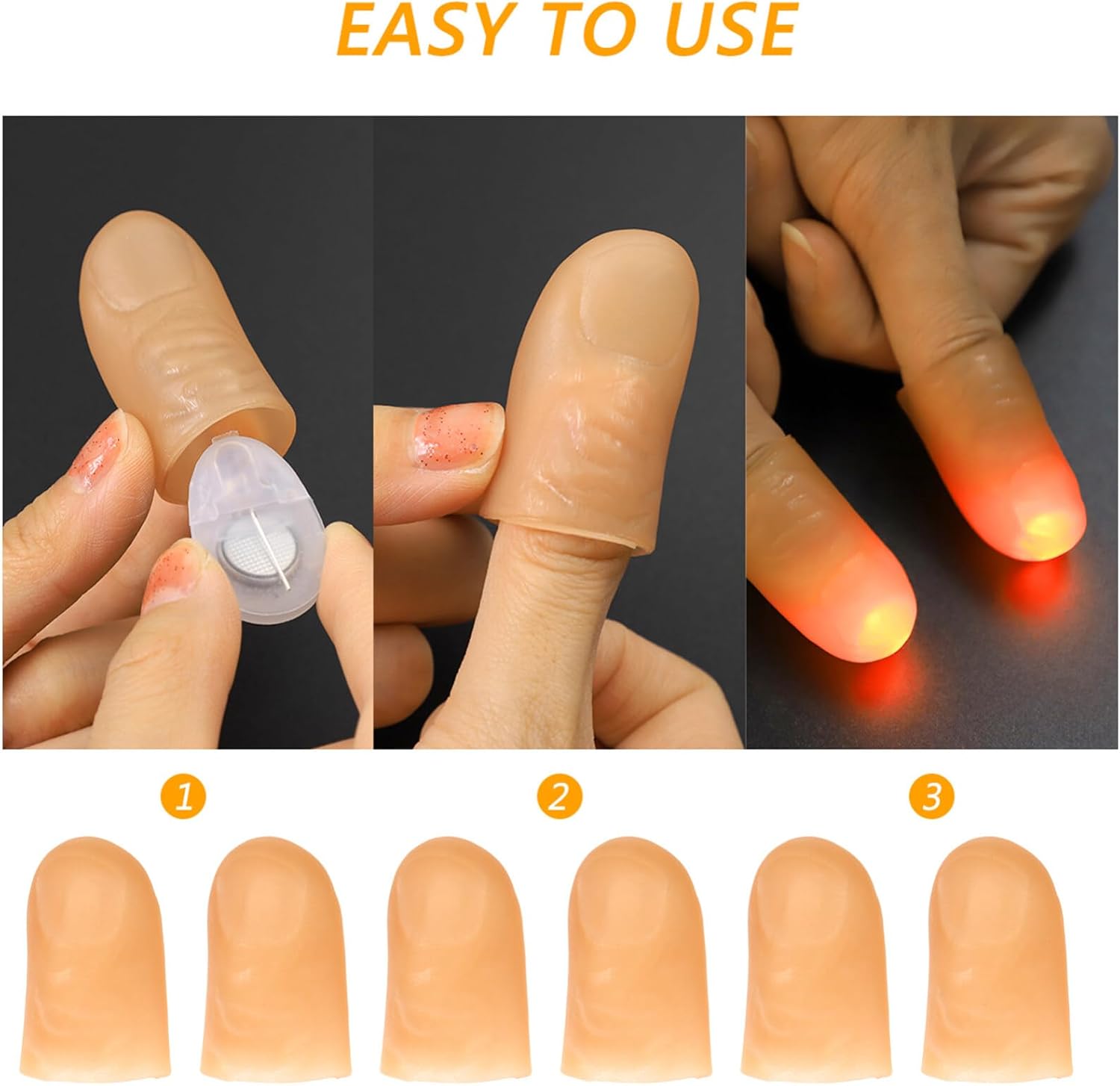 Lampada magica per il pollice: questi pollici magici sono dotati di luci LED luminose in modo che possano illuminarsi per un divertimento ancora maggiore. Avere. Comodo da indossare: le lampade per il pollice sono realizzate in plastica e sono comode da indossare. Lampada automatica per il pollice: la luce può essere accesa automaticamente quando posizionata sulla punta del dito, spenta quando rimossa e accesa segretamente premendo la punta del pollice. Batteria a lunga durata: ogni lampada è dotata di 2 batterie a bottone al litio, che fanno funzionare la lampada più a lungo. Facile da usare: non sono richieste competenze particolari. Indossalo e prova a trovare il ritmo della musica di sottofondo mentre fai uno spettacolo.