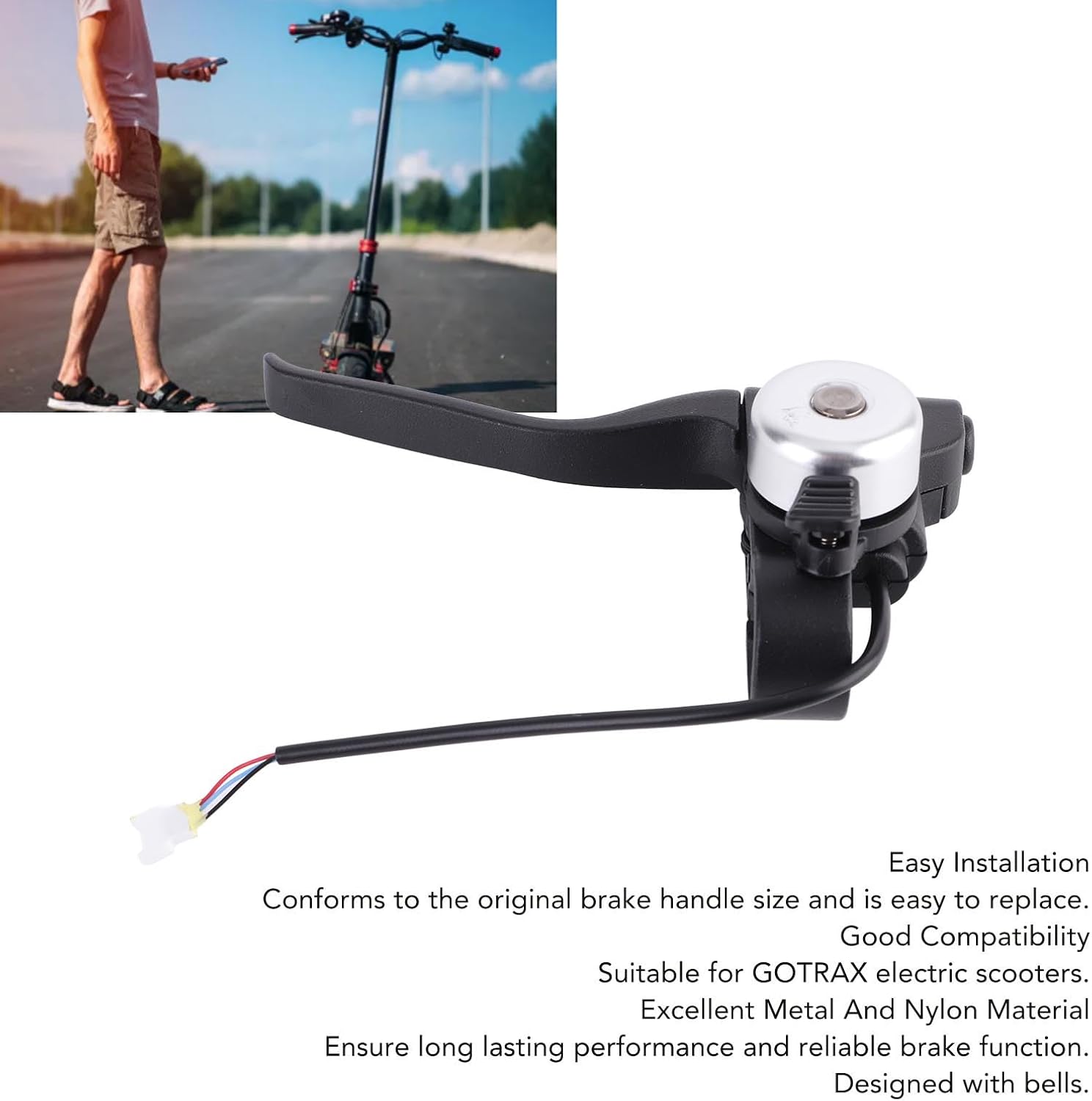 Easy Installation: This left brake lever can quickly replace the left brake handle with bell on your for GOTRAX electric scooter without any hassle. Excellent Metal And Nylon Material: This left brake lever is made of excellent nylon and metal, ensuring long lasting performance and brake function. Convenient Bell: This left brake lever is equipped with a bell for added safety, allowing you to alert pedestrians or other riders while riding. Accurate Control: The left brake handle provides sleek and responsive braking, giving you better control over your scooter. Good Compatibility: This left brake lever is designed specifically for GOTRAX electric scooters, ensuring a fit and seamless integration with your scooter.