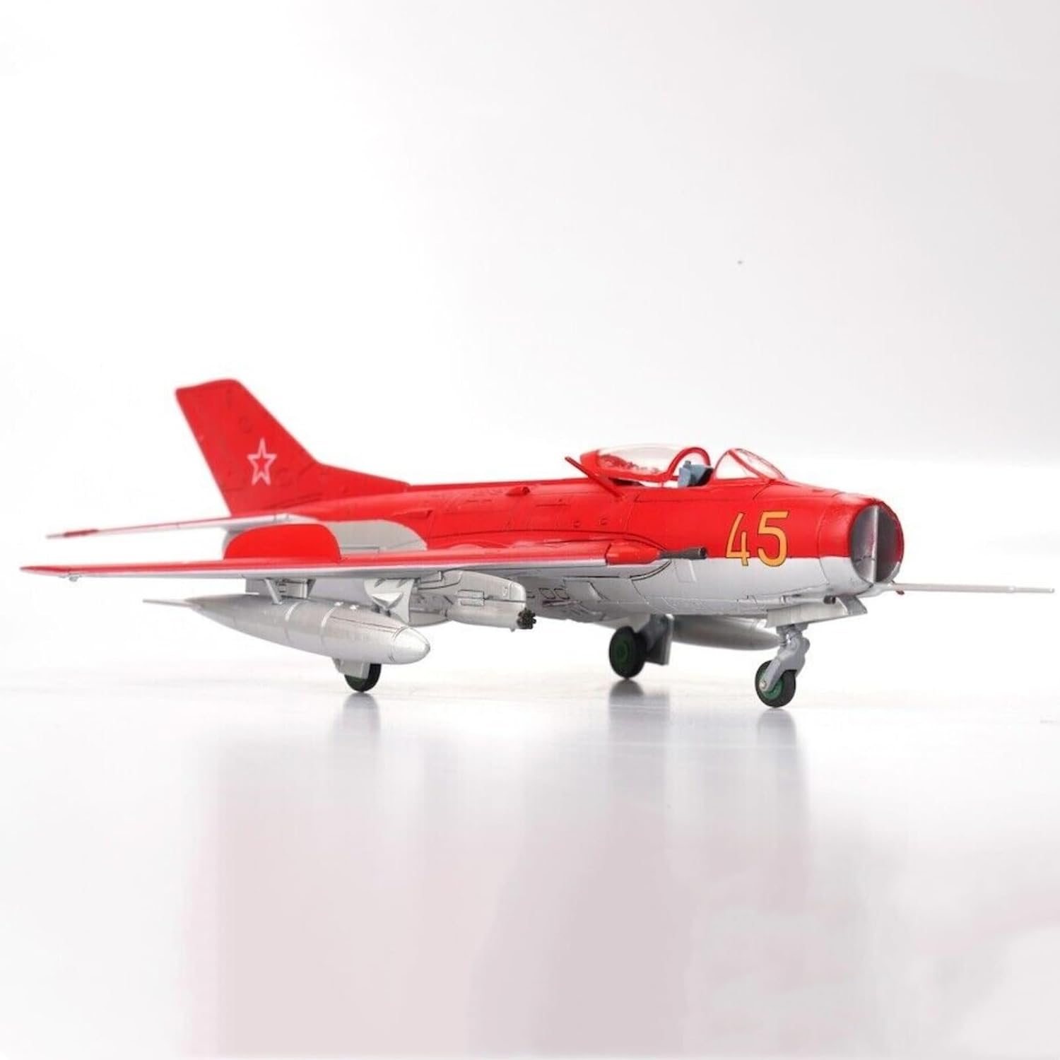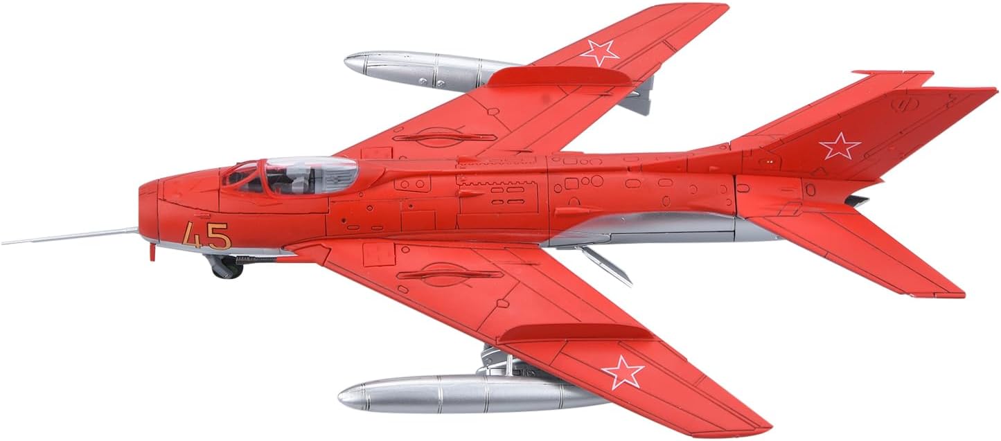 Aereo modello: caccia sovietico MiG-19 Aereo da collezione: aereo da combattimento sovietico MiG-19 modello in scala 1:72 La lunghezza del modello è di 20,3 cm Aerei Diecast: Il Modello Di Aeroplano È Rigorosamente Restaurato Secondo Le Proporzioni E I Dettagli Dell'Aeromobile Originali. Modello in lega pressofusa di alta qualità. Modello decorativo: il modello aereo è molto adatto per decorare la scrivania, la vetrina e la mensola. Regalo perfetto: la grande scelta regalo per compleanno, Natale, festa del papà per il tuo amante, appassionato di aviazione, collezione di aerei.