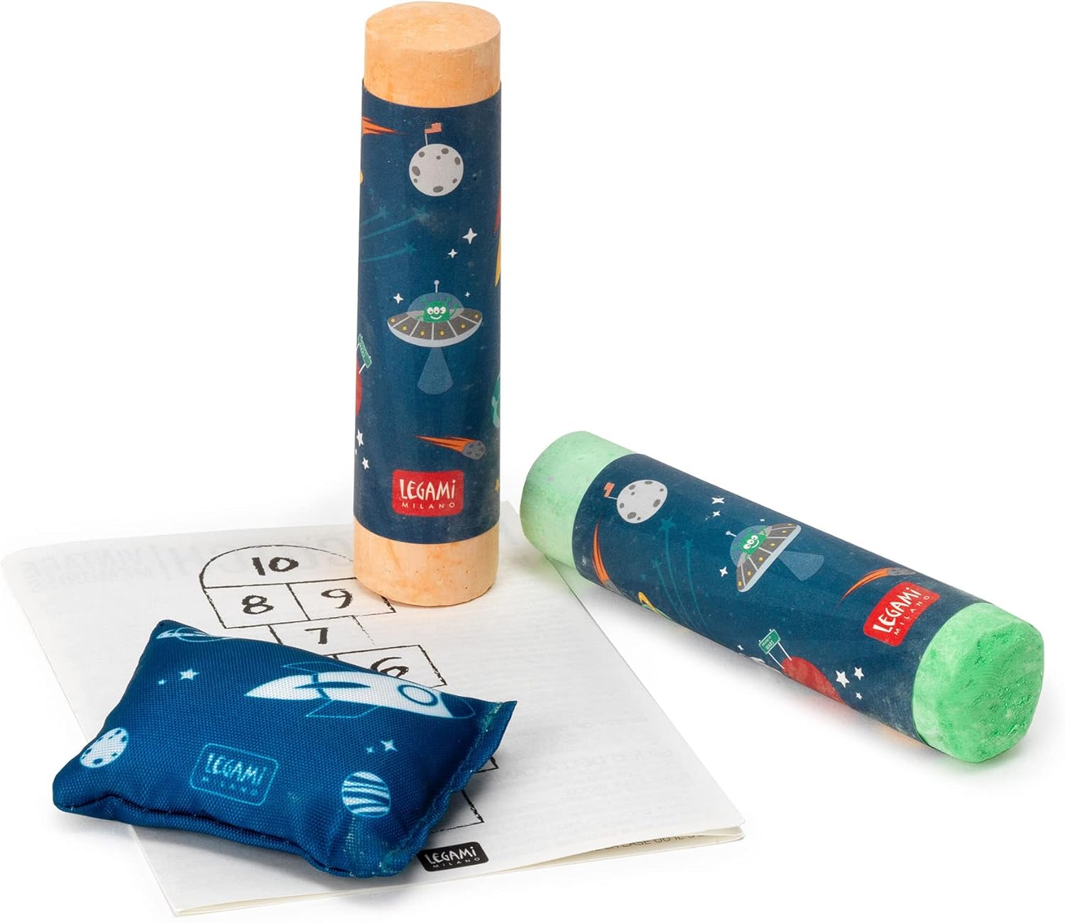 Salta che ti passa! Il Gioco della Campana - Hopscotch ti farà riscoprire un divertimento vintage e senza tempo. Prendi dalla scatola riutilizzabile in metallo il segnalino, i 2 gessi colorati e mi raccomando: che tu sia in casa o all’aperto, segui sempre le regole del gioco! GIOCO DELLA CAMPANA: lancia il segnalino e raggiungi la casella corrispondente! La scatola in metallo riutilizzabile include 1 segnalino e 2 gessi colorati. MATERIALI E DIMENSIONI: in latta, gesso, poliestere, sabbia e carta. Dimensioni: lunghezza 13 cm, altezza 10 cm, larghezza 4 cm. Abbiamo un universo di mondi a tua disposizione! Creiamo oggetti di qualità sempre diversi, colorati, positivi e divertenti, perfetti per ognuno e per ogni stato d’animo. In Legami puoi sempre trovare il tuo mondo ideale, da scoprire ed esplorare giorno per giorno: un mondo di felicità per quando sei un po’ giù, un mondo di sorprese per quando ti annoi, un mondo di ispirazioni per quando sei a corto di idee, un mondo di emozioni diverse in continua evoluzione.