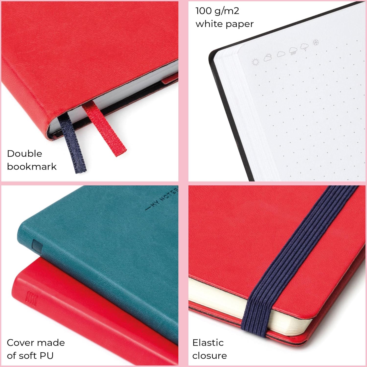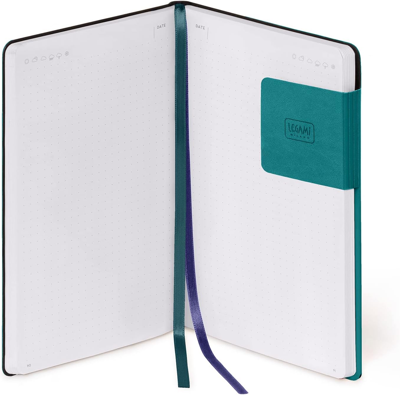 Se ogni giorno è ancora una pagina da scrivere, è ora di iniziare! My Notebook Medium Dotted Malachite Green è il quaderno di Legami con pagine puntinate pronto ad accogliere tutti i tuoi pensieri e appunti. Che sia l'esame di matematica, la riunione di lavoro, l'uscita di una nuova serie o l'appuntamento con quella persona cattiva e irresistibile. Scegli il tuo colore. Avrai sempre tempo per renderlo unico con penne colorate, nastro adesivo, spille e adesivi Caratteristiche: 192 pagine numerate. Chiusura elastica. Doppio segnalibro. Patta segnalibro/portapenne Tasca all'estremità. Materiali: carta certificata proveniente da foreste ben gestite, foreste certificate FSC e altre fonti controllate. Carta bianca da 100 g/m², resistente alla trasparenza. Morbida copertura in PU. Dimensioni: medie. Lunghezza 13 cm, altezza 21 cm. Abbiamo un universo di mondi a tua disposizione! Creiamo oggetti di qualità, sempre diversi, colorati, positivi e divertenti, perfetti per tutti e per ogni stato d'animo. Da Legami puoi sempre trovare il tuo mondo ideale, da scoprire ed esplorare giorno dopo giorno: un mondo di felicità per quando sei un po' sopraffatto, un mondo di sorprese quando sei annoiato, un mondo di ispirazione quando sei a corto di idee, un mondo di emozioni diverse in continua evoluzione.
