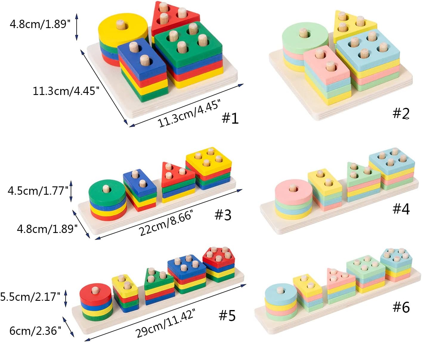 Giocattolo di ordinamento e impilamento in legno, giocattolo di corrispondenza della forma, puzzle di forme, giocattolo educativo in legno, blocchi di pilastri, giocattolo educativo precoce, giocattolo educativo, giocattolo per bambini, puzzle di forme, giocattolo di coordinazione occhio-mano. Allenamento cognitivo in spazi grandi e piccoli, per allenare le abilità manuali dei bambini. Lo sviluppo mentale infantile - può aiutare a sviluppare il riconoscimento della forma e del colore e logico -. Aiuta i bambini dai 12 mesi ai 3 anni a riconoscere la forma e la forma, sviluppare una buona capacità di apprendimento delle abilità motorie. Giochi di attività motoria - esercizio della coordinazione occhio-mano del bambino, esercizio muscolare della mano e coordinazione degli arti e flessibilità. Giocattolo genitore-figlio: il genitore può accompagnare i propri figli a giocare insieme per sentire il calore della famiglia