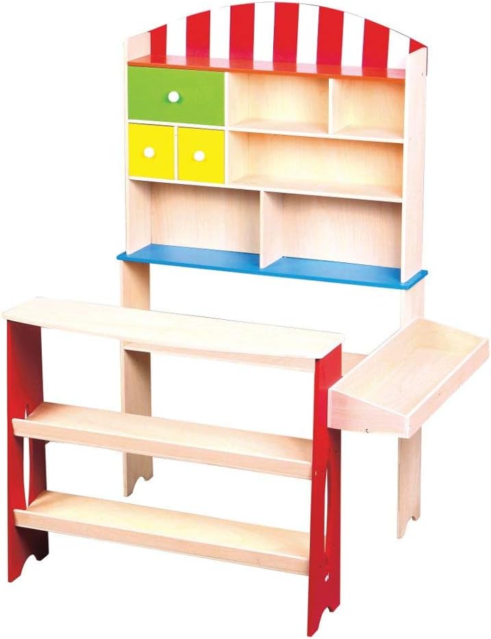 Un commerciante tradizionale con scaffali di stoccaggio. I bambini giocheranno al mercante per ore e ore. Dimensioni: 62 x 62 x 110 cm Incoraggia la creatività e la coordinazione occhio-mano dei bambini. Progettato per bambini dai 3 anni in su. New Classic Toys è sinonimo di giocattoli educativi di qualità. Tutti i prodotti soddisfano i più severi requisiti di sicurezza secondo la norma EN-71.