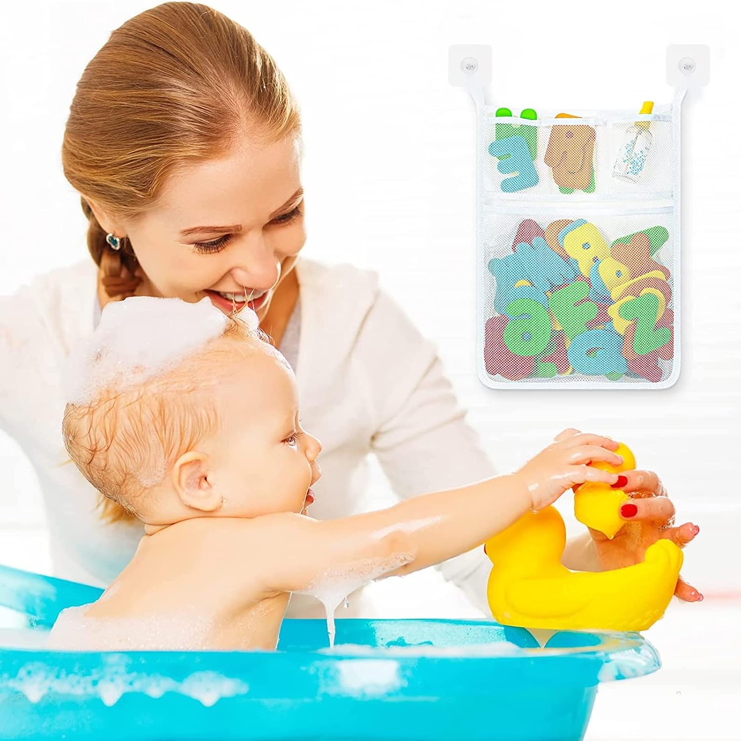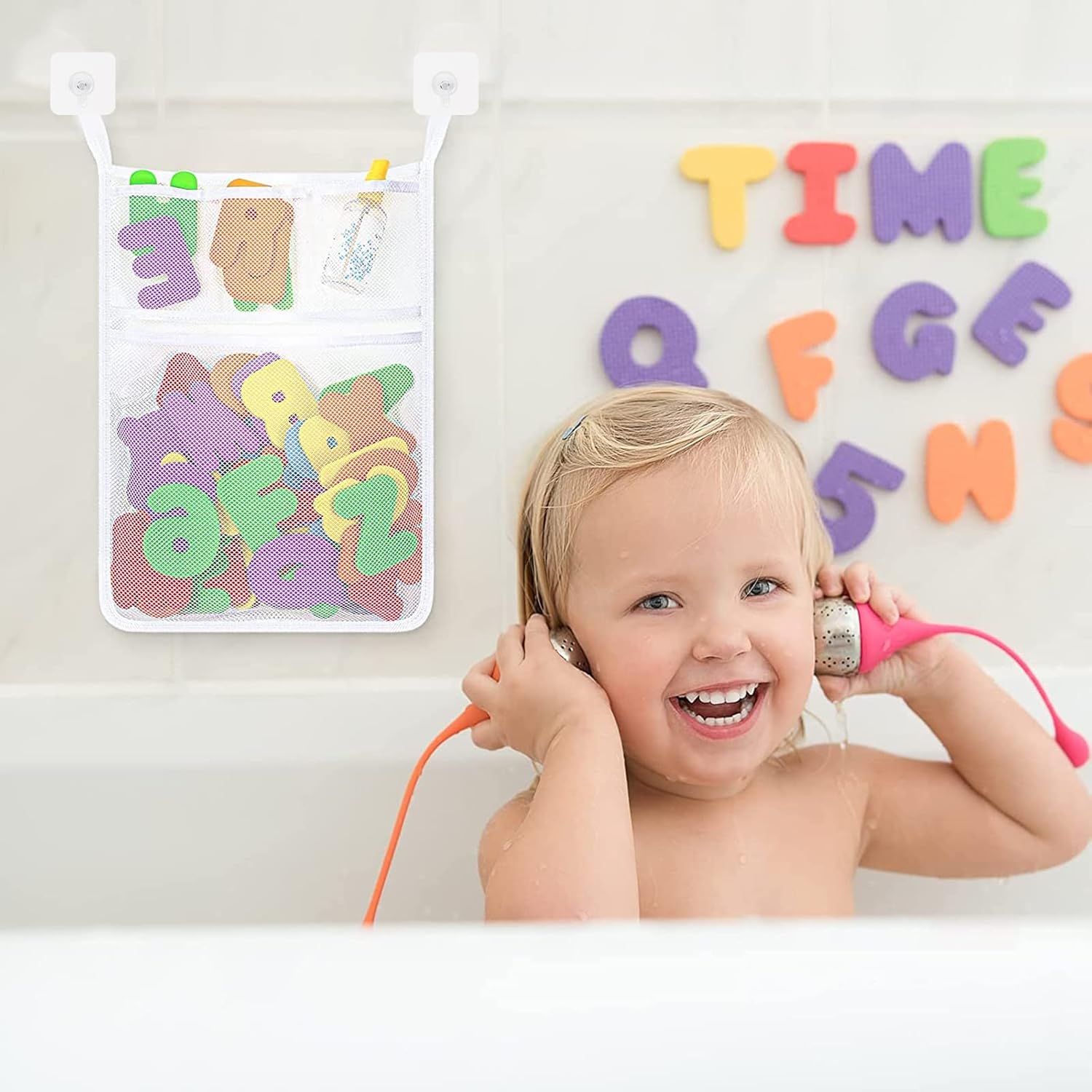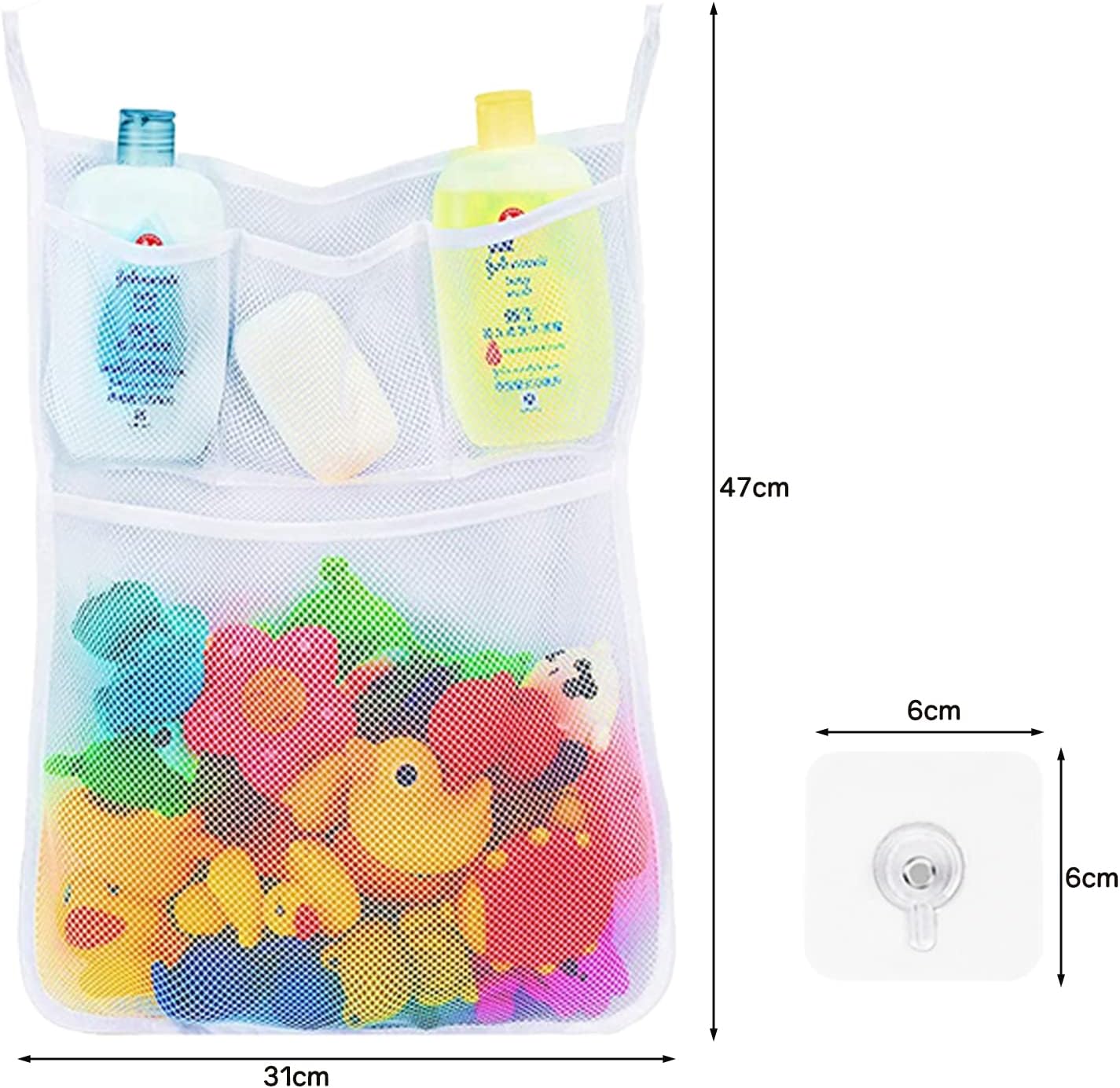 La confezione include: contenitore per giocattoli da bagno da 1 pezzo, ganci da 2 pezzi, per soddisfare le tue esigenze, puoi usarli per riporre i giocattoli dei bambini e mantenere il tuo bagno pulito e ordinato. Dimensioni del prodotto: il contenitore per i giocattoli da bagno dei nostri bambini misura ca. 47 x 31 cm, ogni contenitore per giocattoli da bagno ha 3 piccole tasche a rete e una tasca grande, una grande capacità può aiutarti a contenere più oggetti contemporaneamente, quattro borse di dimensioni diverse offrono spazio sufficiente per ordinare e soddisfare le diverse esigenze di archiviazione. Materiale di alta qualità: il nostro contenitore per giocattoli da bagno realizzato in rete di poliestere di alta qualità con lavorazione a doppia cucitura, resistente all'usura e allo strappo, non facile da rompere, può servirti a lungo, puoi usarli per riporli con sicurezza. Ampiamente usato: il contenitore per giocattoli da vasca non può essere utilizzato solo per contenere giocattoli, sapone, shampoo nel tuo bagno, ma è anche adatto per appendere questo contenitore per giocattoli da vasca nel tuo guardaroba per riporre calzini, biancheria intima o altri oggetti che desideri raccogliere insieme per rendere la stanza più organizzata. Asciugatura rapida e lavabile: grazie al design a rete, questi contenitori per giocattoli da vasca possono drenare bene e ottenere quanta più acqua possibile dai giocattoli da bagno, puoi lavarli e asciugarli con sicurezza quando si sporcano, il raccoglitore di giocattoli da vasca è anche lavabile in lavatrice, puoi semplicemente gettarli in lavatrice per risparmiare tempo ed energia.