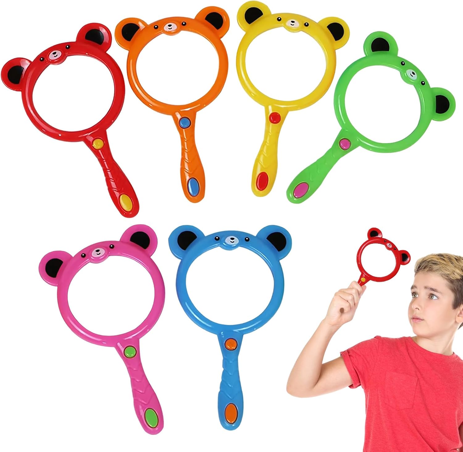 Design ottimizzato per la sicurezza: la lente di ingrandimento ergonomica combina una maneggevolezza adatta ai bambini con una struttura robusta. I bordi lisci e lucidati evitano punti di pressione, perfettamente abbinati alle mani dei bambini per ore di divertimento. Strumento di apprendimento giocoso: combina l'intrattenimento con utili utili per osservare la natura e aiuto alla lettura. Rafforza le capacità di osservazione logica e promuove atteggiamenti interrogativi nell'apprendimento giocoso Funzionamento pratico: proporzioni ben studiate per le mani dei bambini dai 5 anni in su, lente d'ingrandimento intuitiva per stimolare le capacità motorie e la scoperta autonoma di strutture fogliari o minerali Design stimolante per l'avventura: il simpatico orsetto aumenta la motivazione per l'esplorazione ambientale. Lente in plastica extra spessa (ingrandimento 3x) che consente una chiara visione di capannoni di pigne, farfalle e altri fenomeni naturali. Varietà di colori: varianti di colore inaspettate in tonalità intense rendono il disimballaggio un'esperienza e trasformano semplici esplorazioni in emozionanti avventure